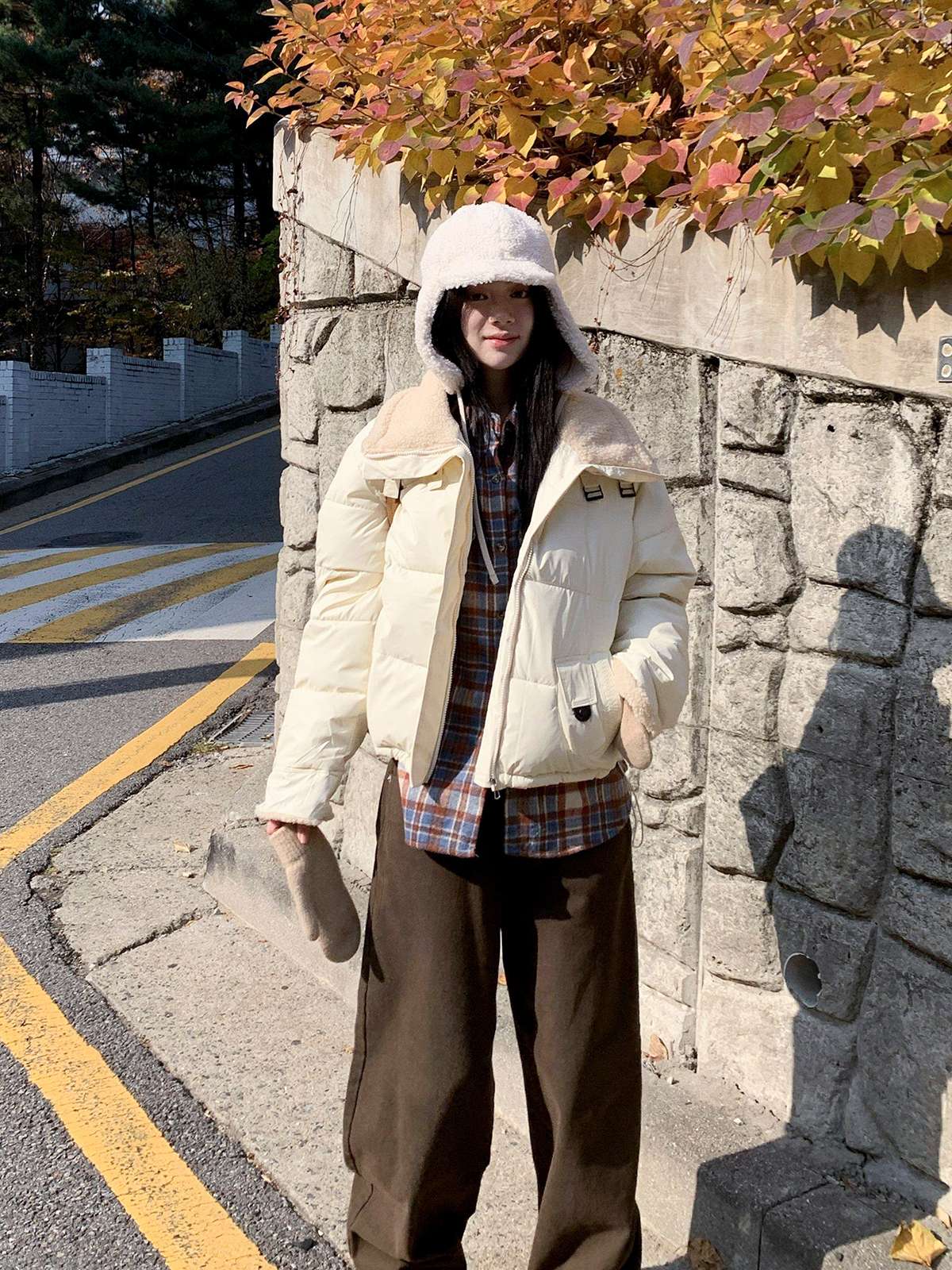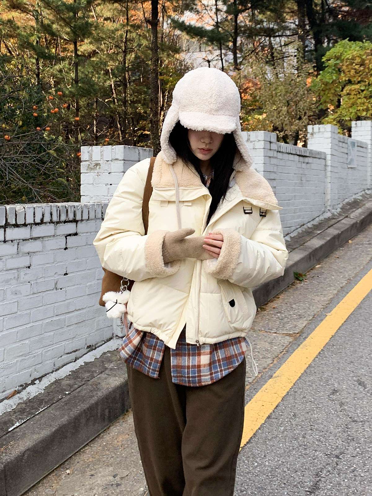 도톰한 양털 카라가 돋보이는 따뜻한 숏 패딩
