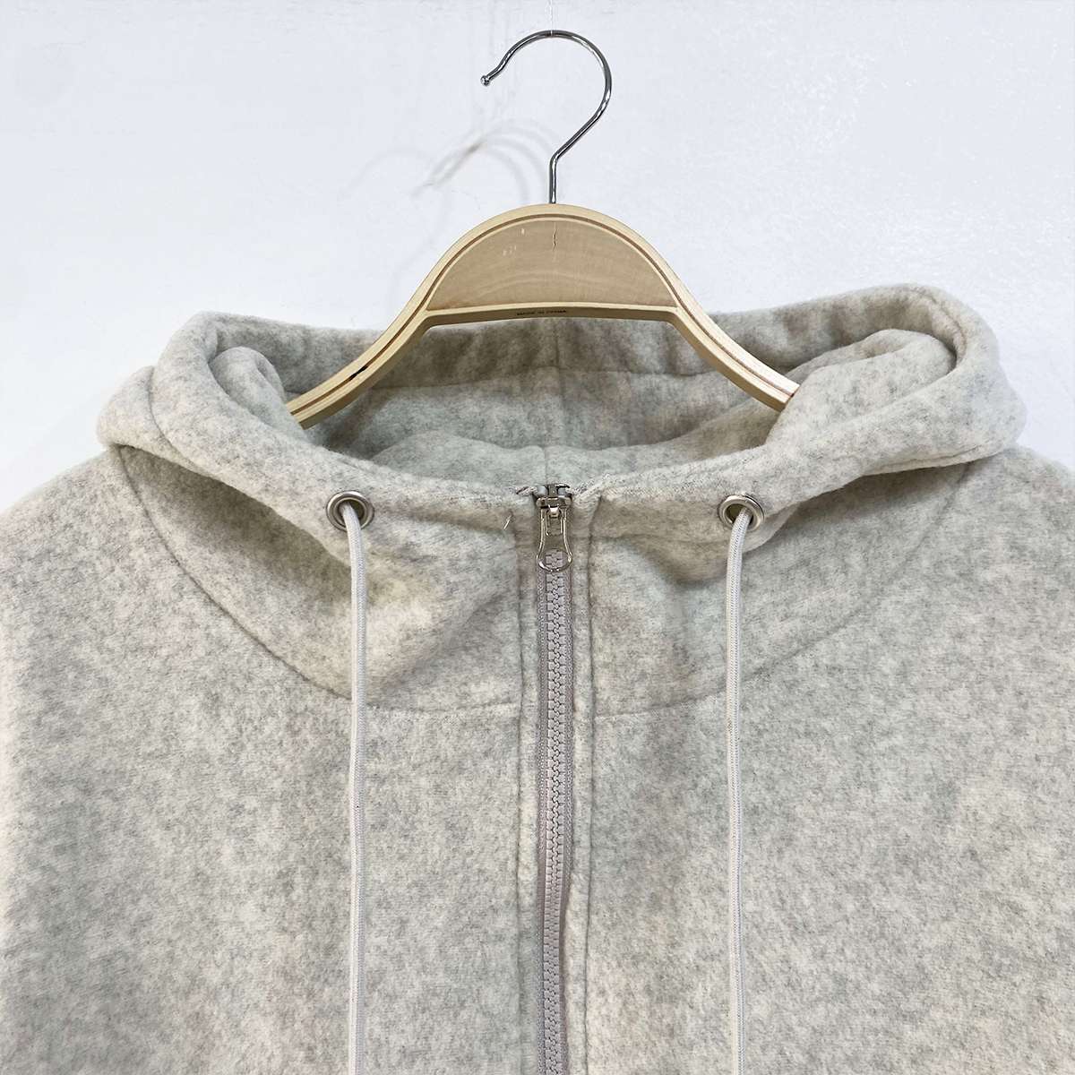 상의는 넉넉한 루즈핏 후드 집업 형태로,