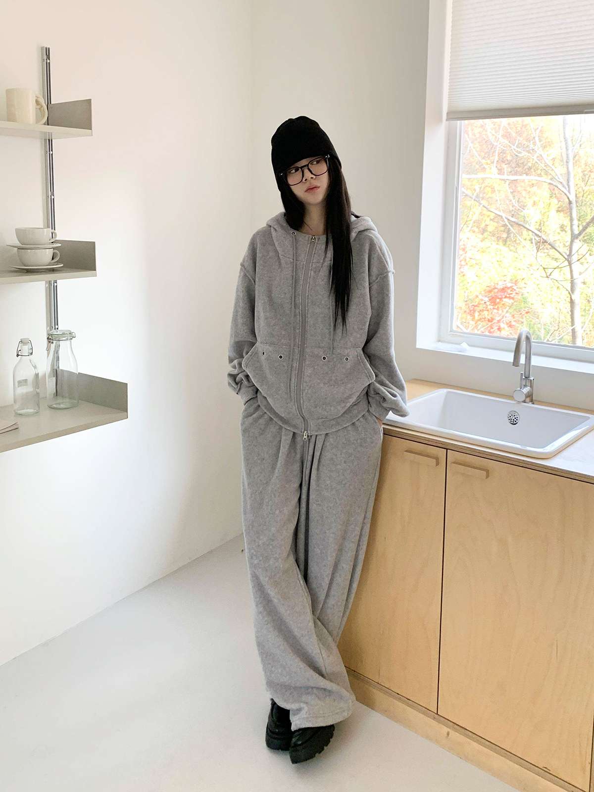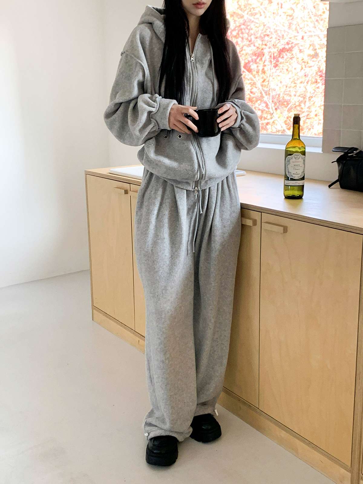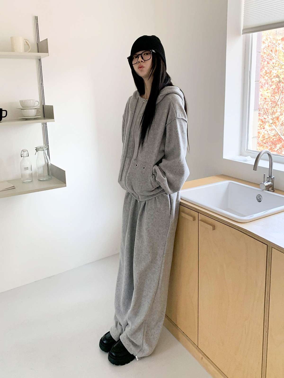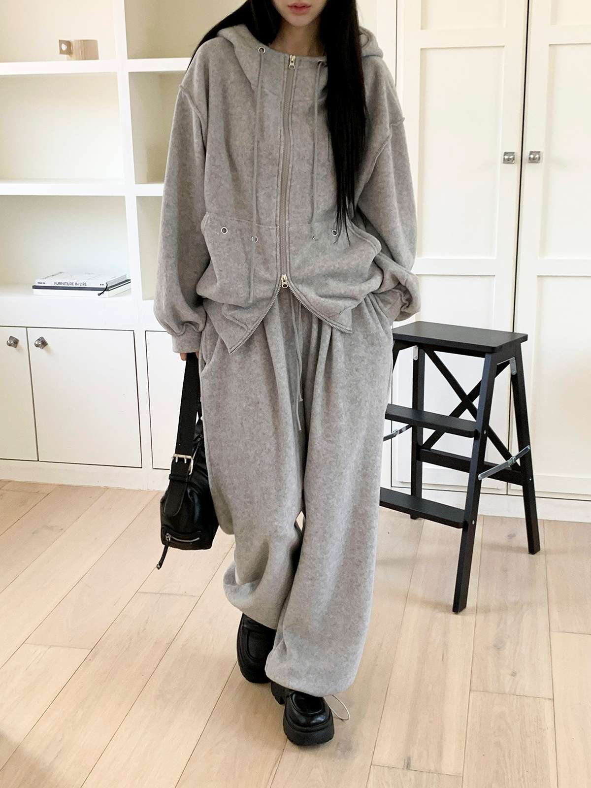 [ SET3886K5B-츠레힛 기모 후리스 후드집업 트레이닝 밴딩 팬츠 SET ]