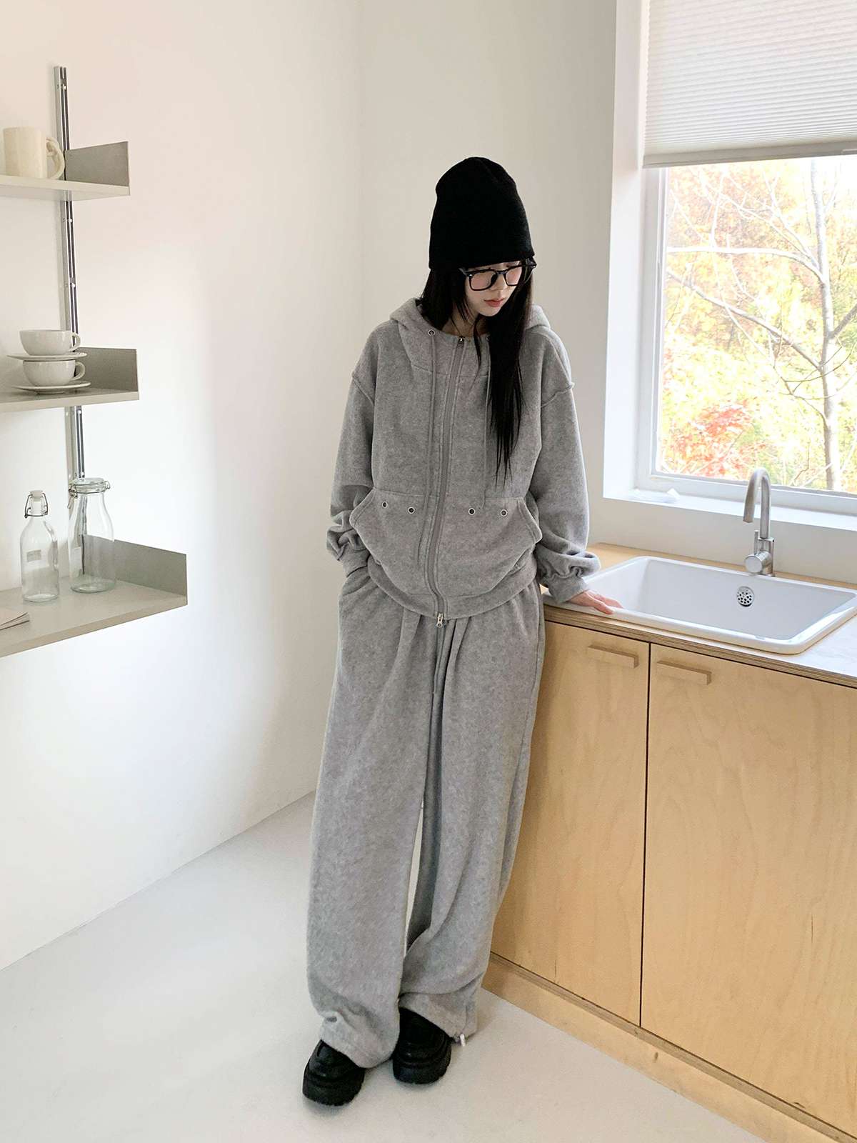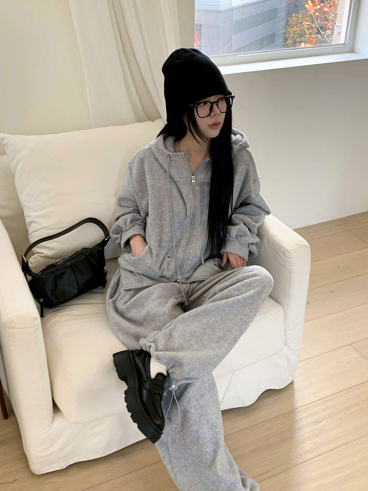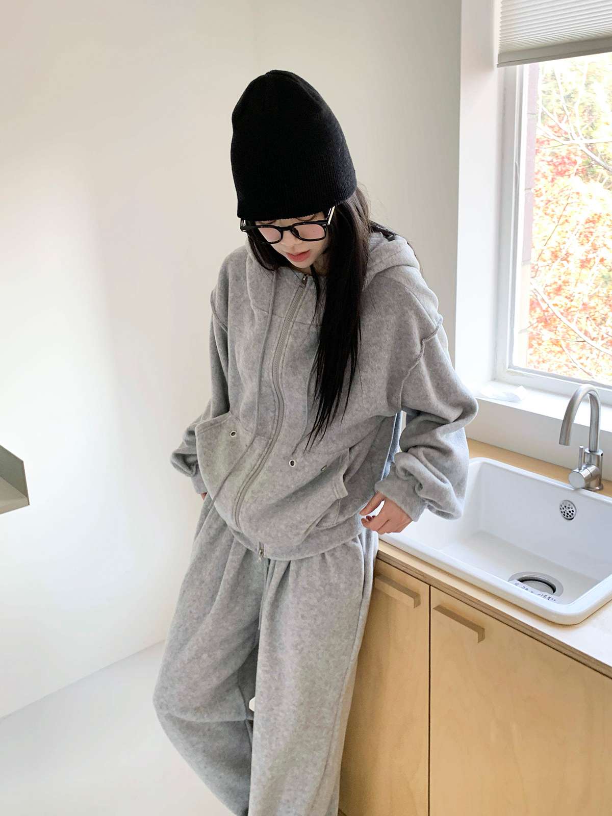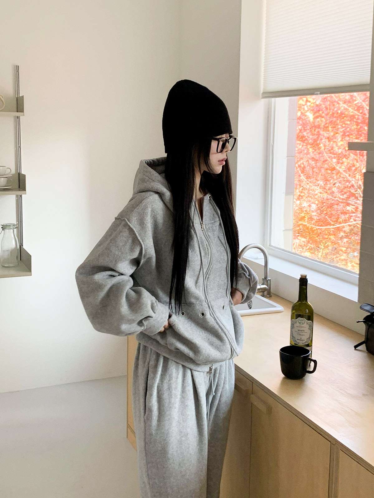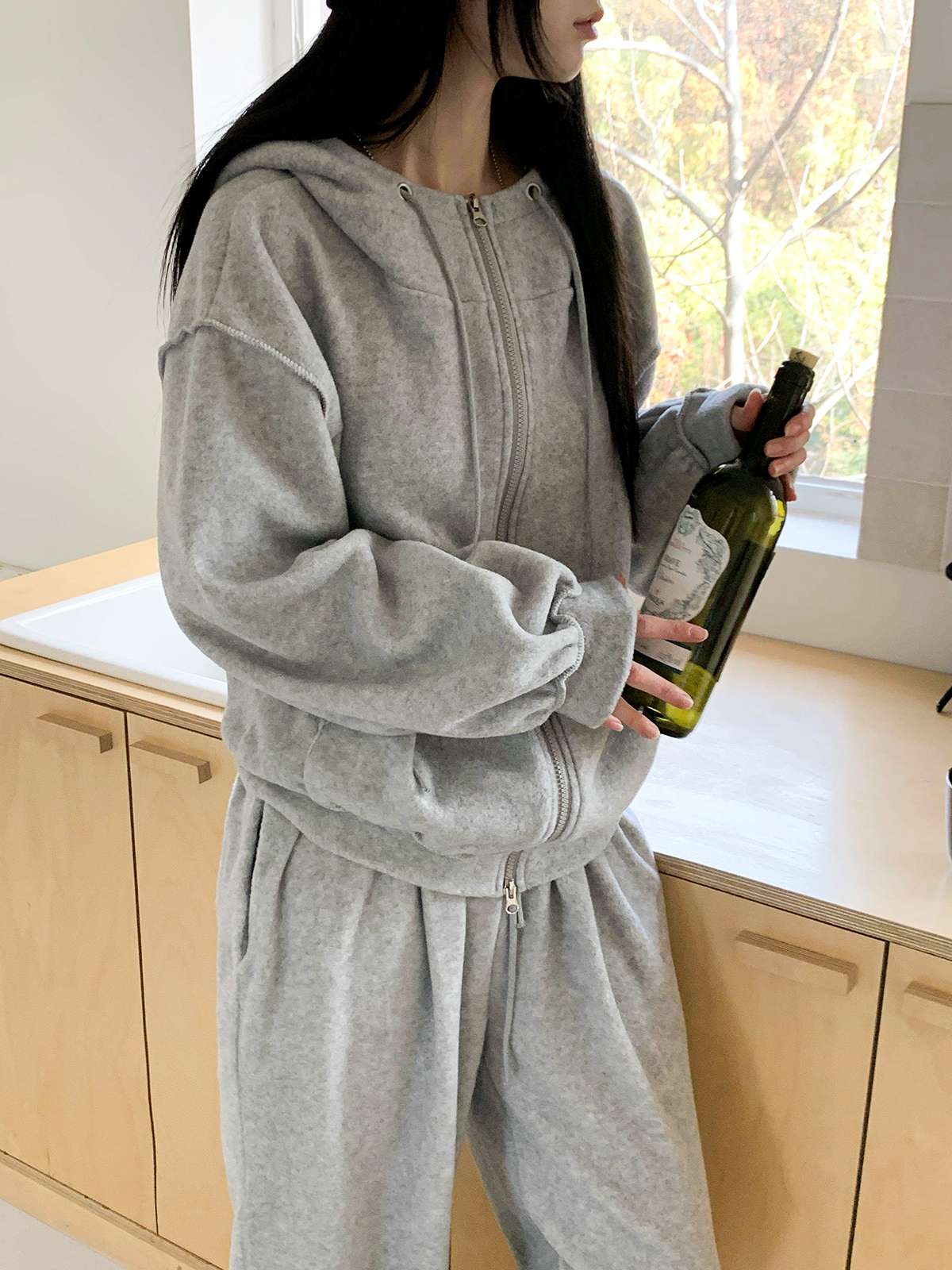 [ SET3886K5B-츠레힛 기모 후리스 후드집업 트레이닝 밴딩 팬츠 SET ]
