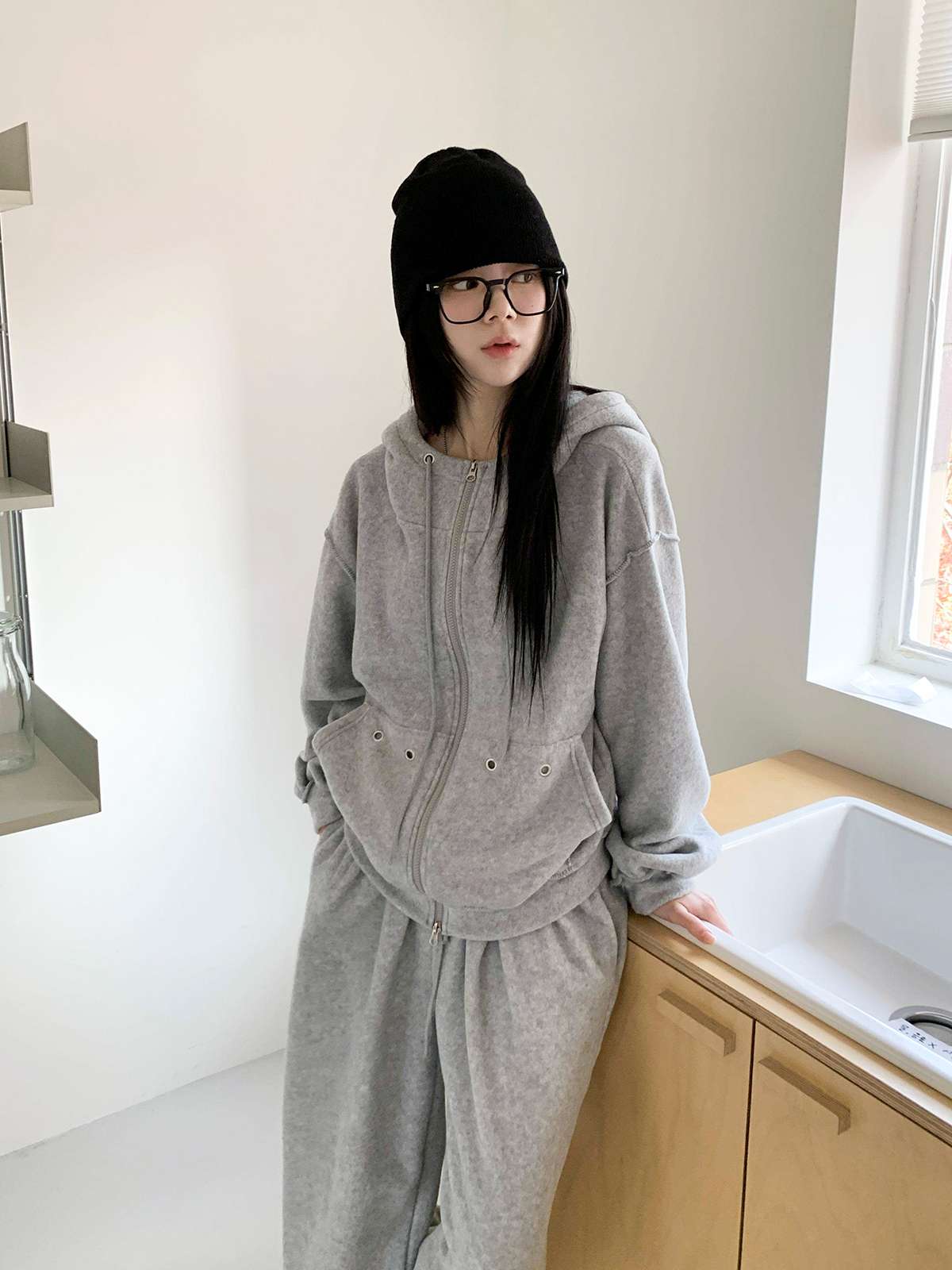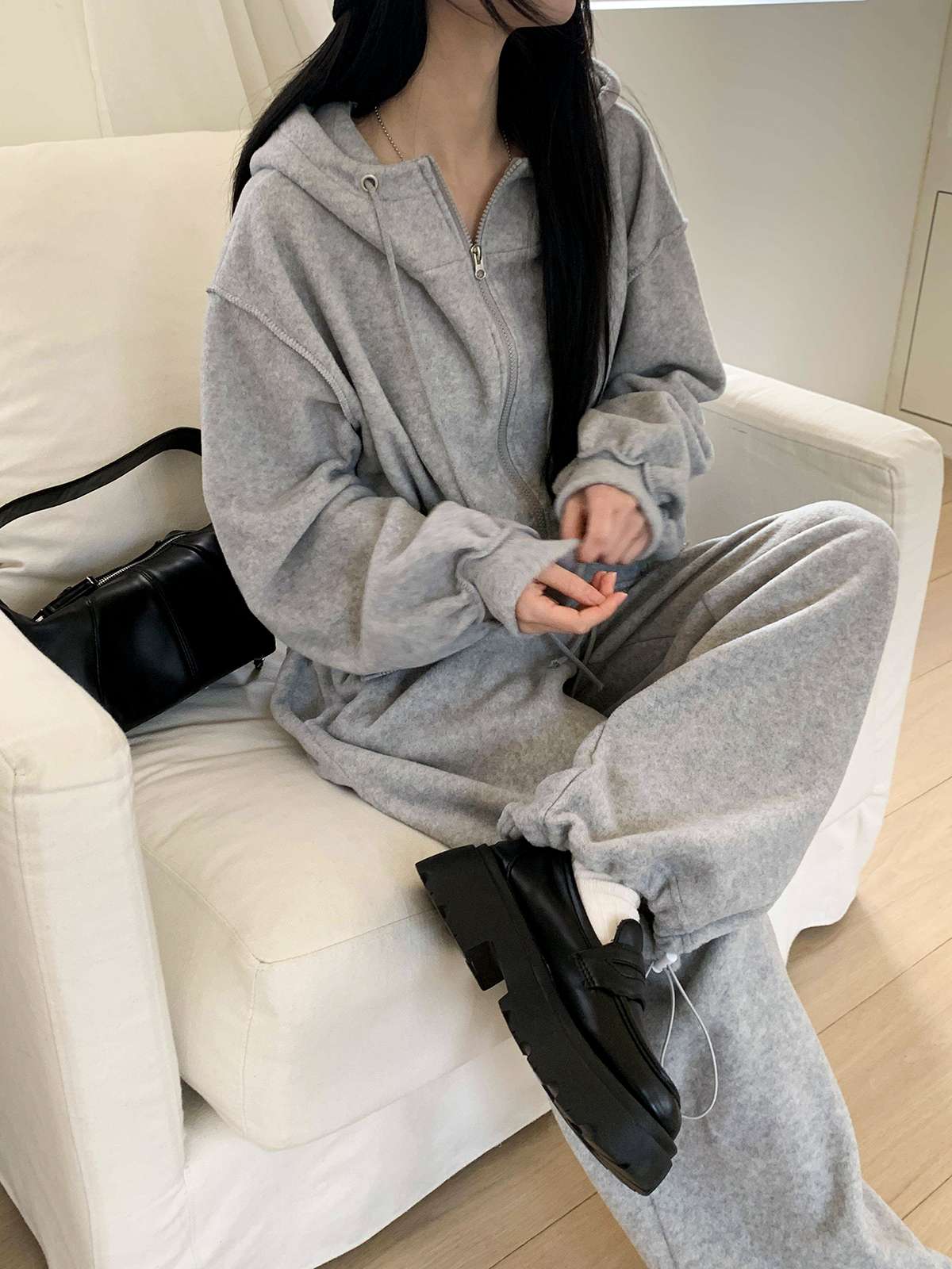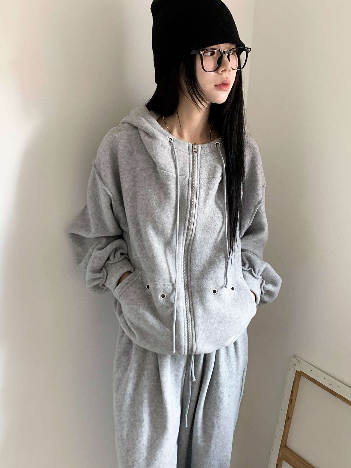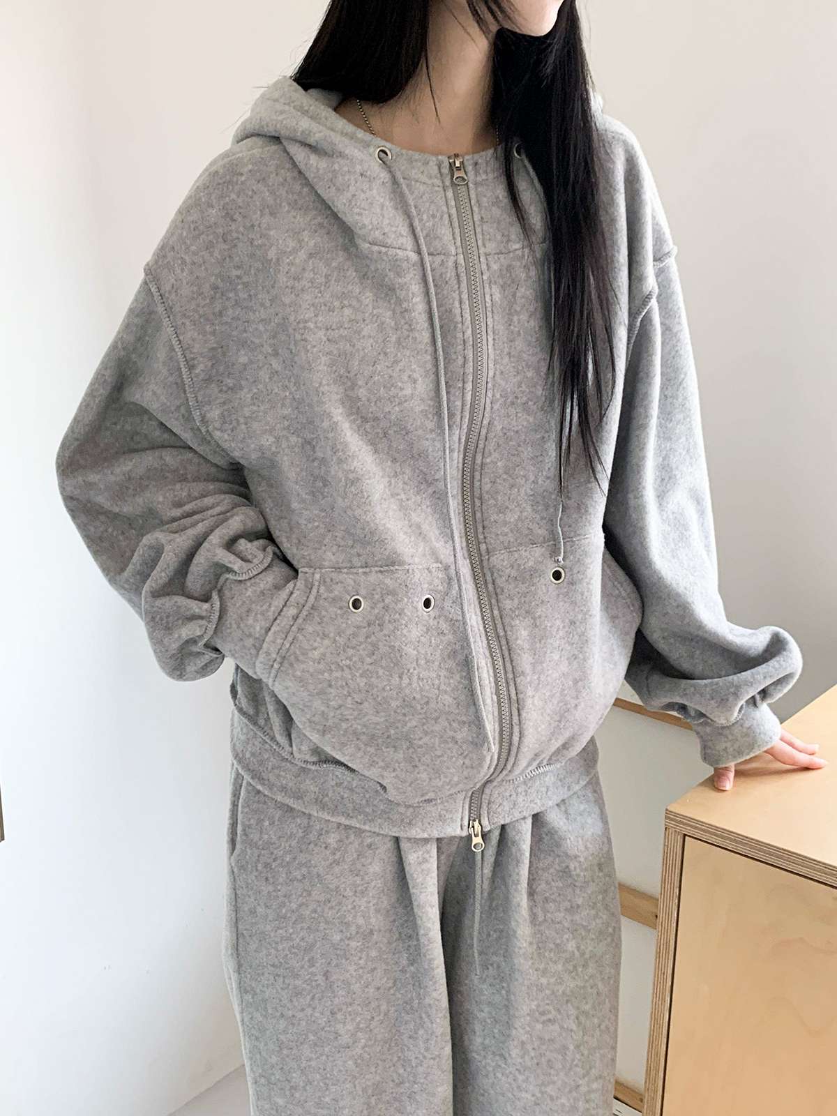 [ SET3886K5B-츠레힛 기모 후리스 후드집업 트레이닝 밴딩 팬츠 SET ]