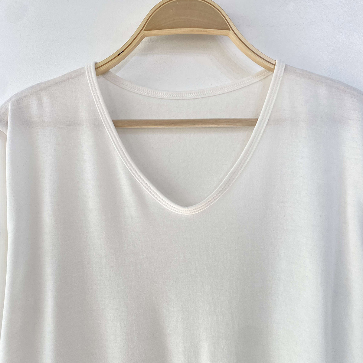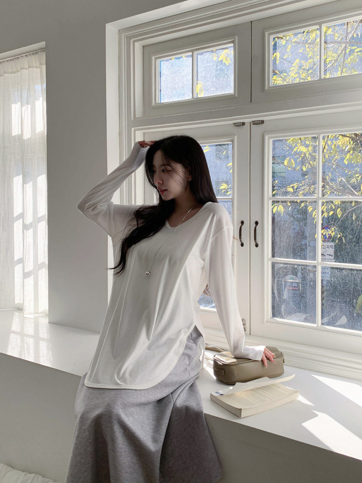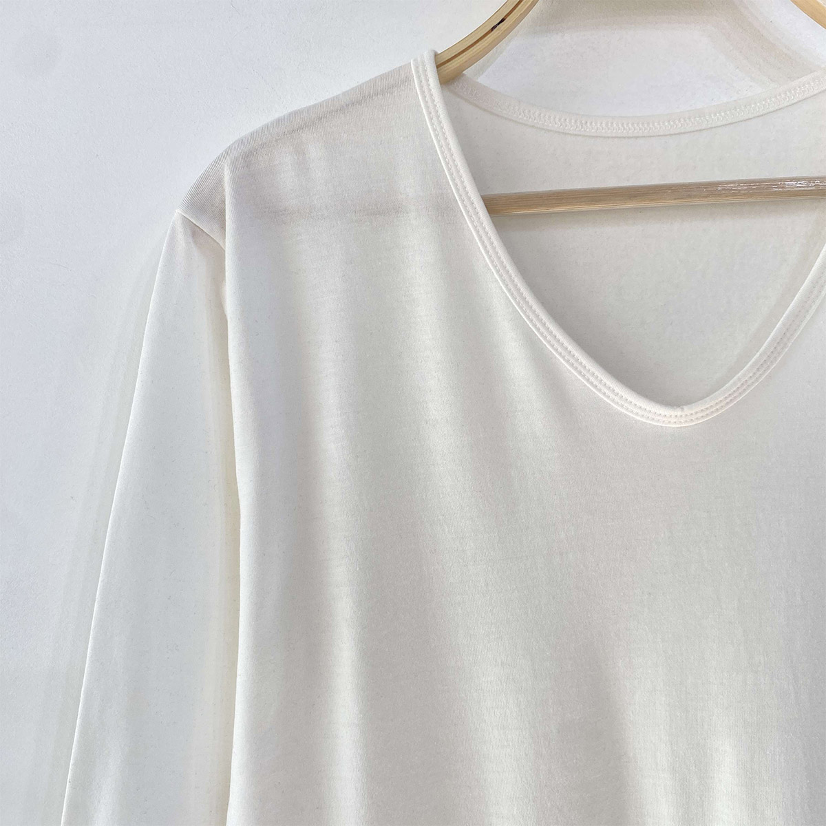 넉넉한 사이즈 핏의 브이넥 라인이 깔끔한 긴팔 티셔츠