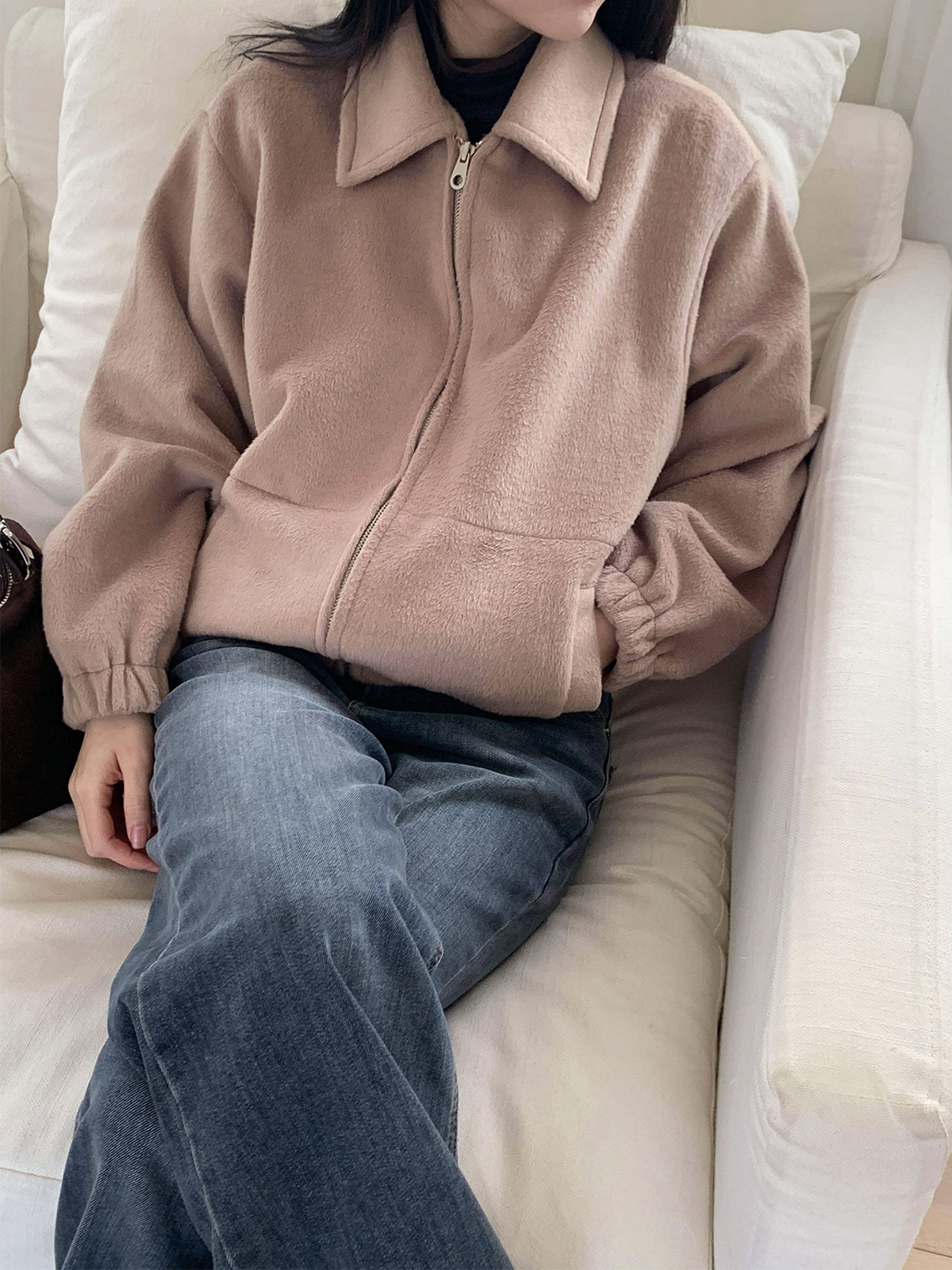 복실복실한 퍼 소재로 카라 집업 자켓