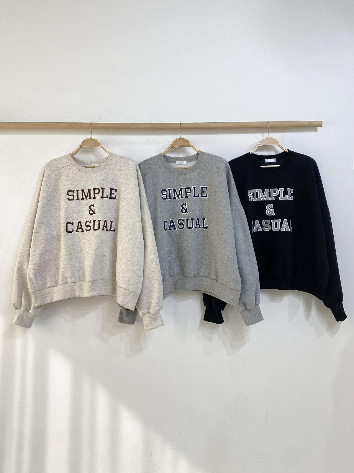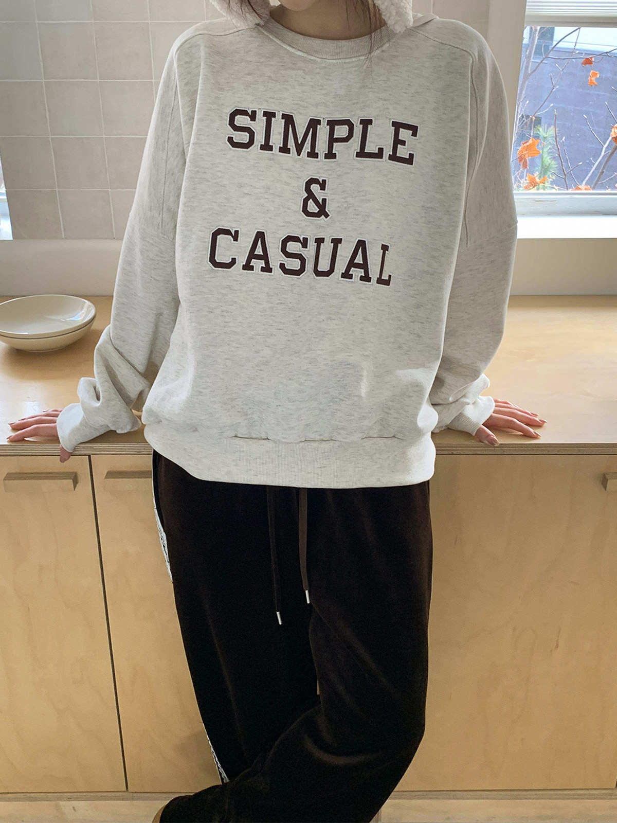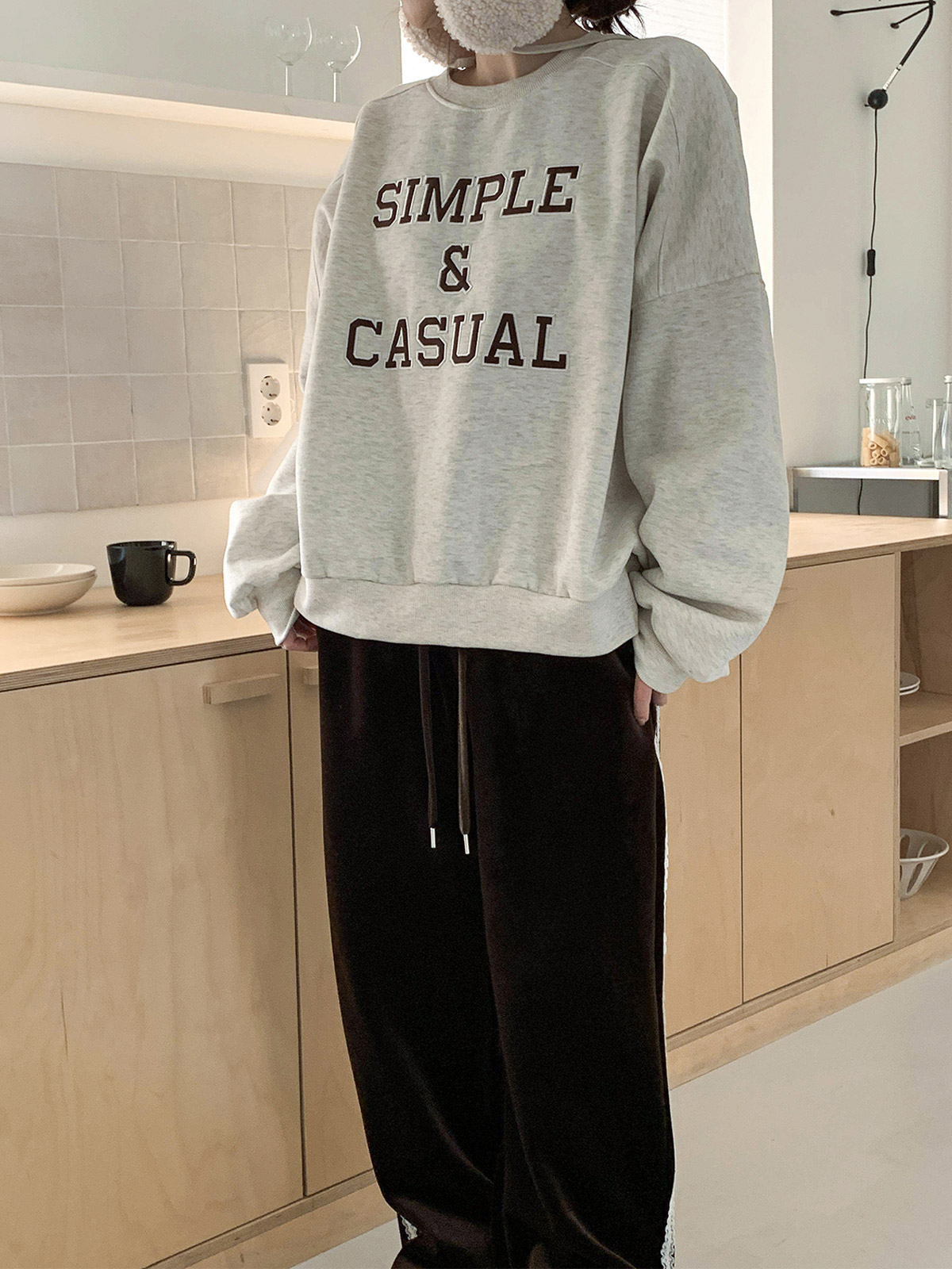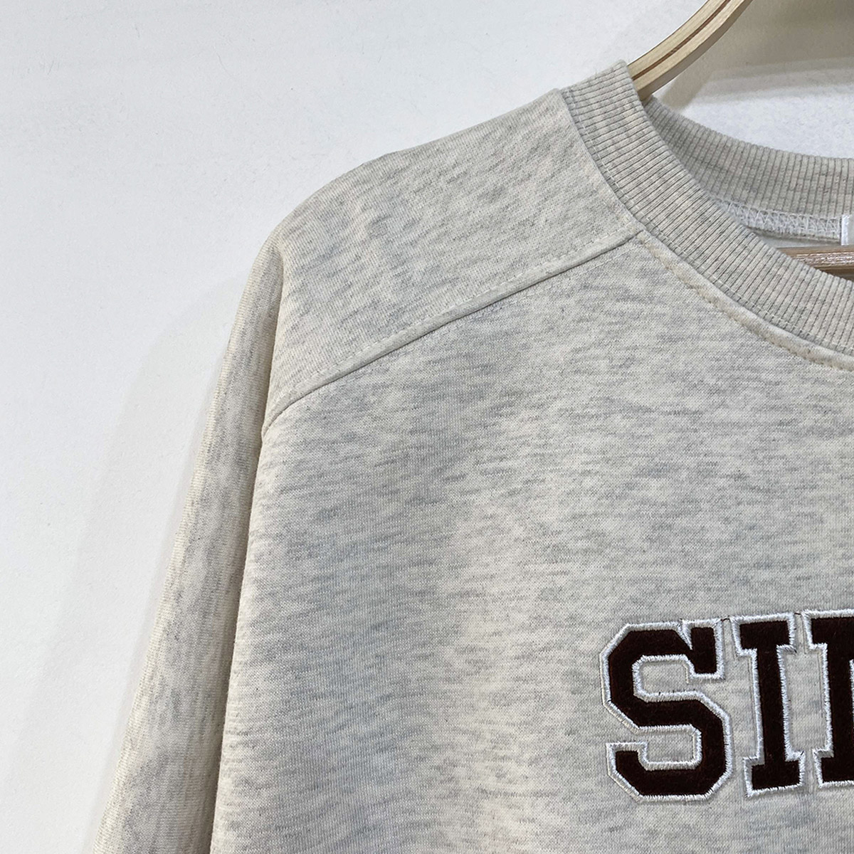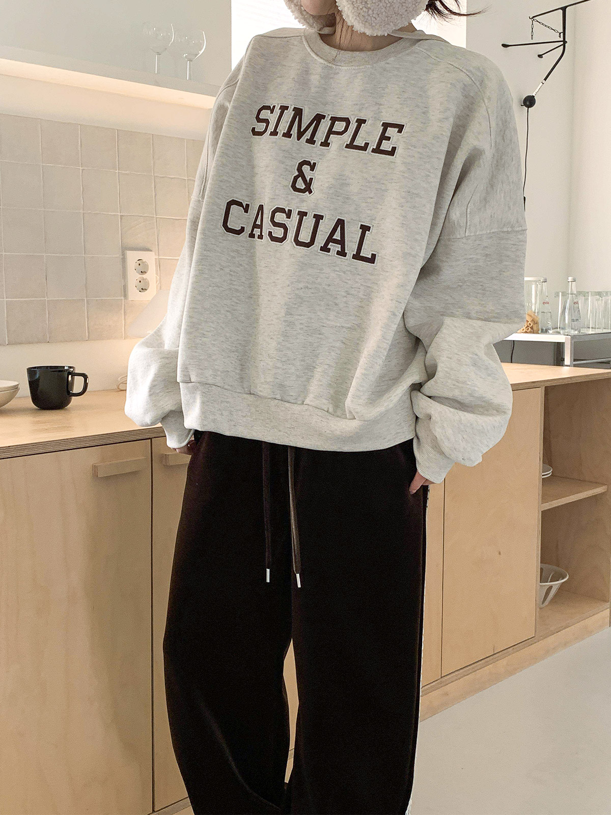 자수 레터링이 돋보이는 기모 맨투맨