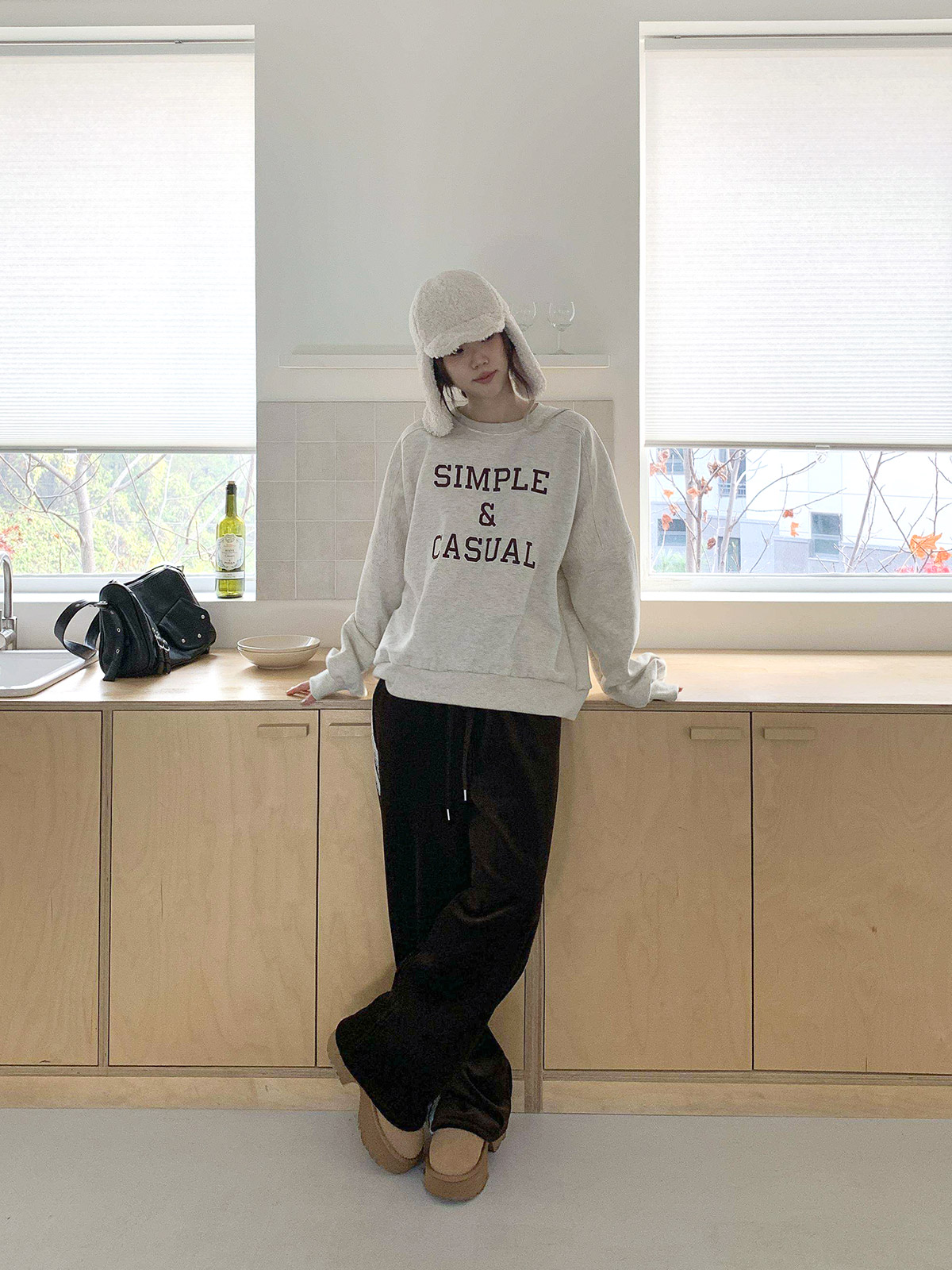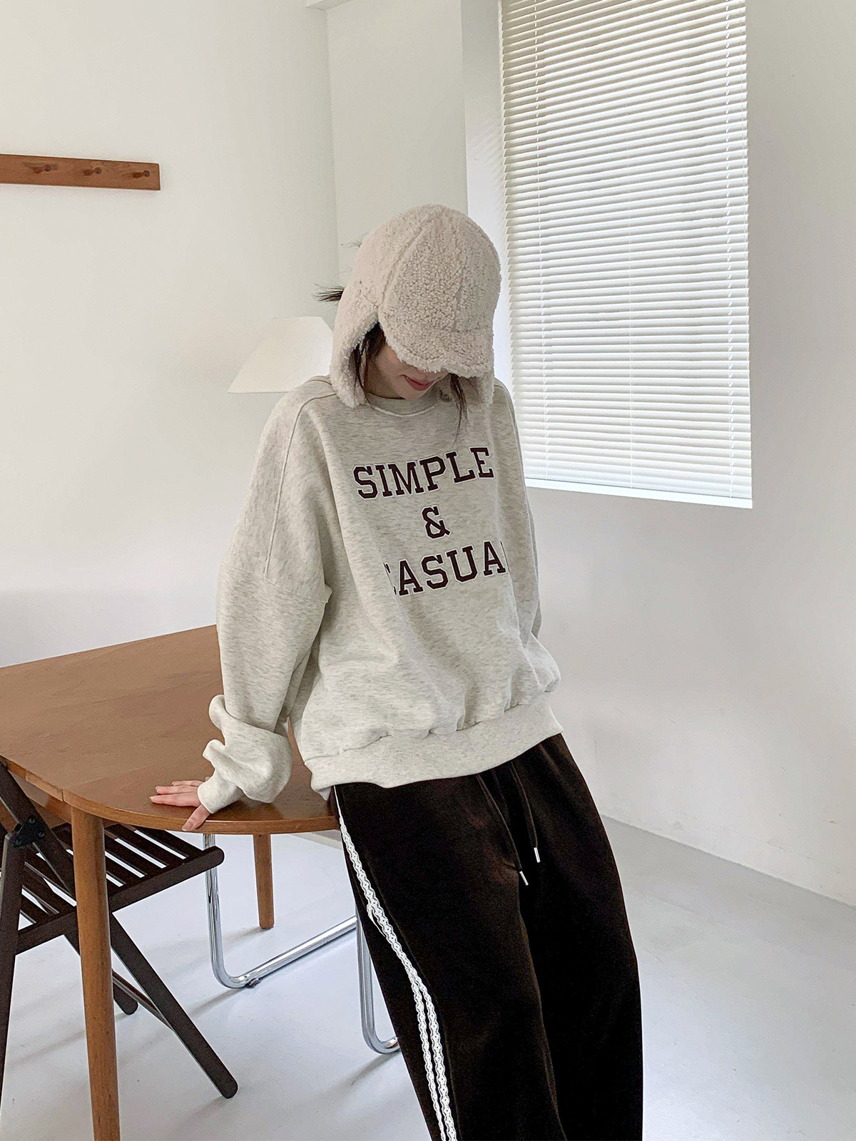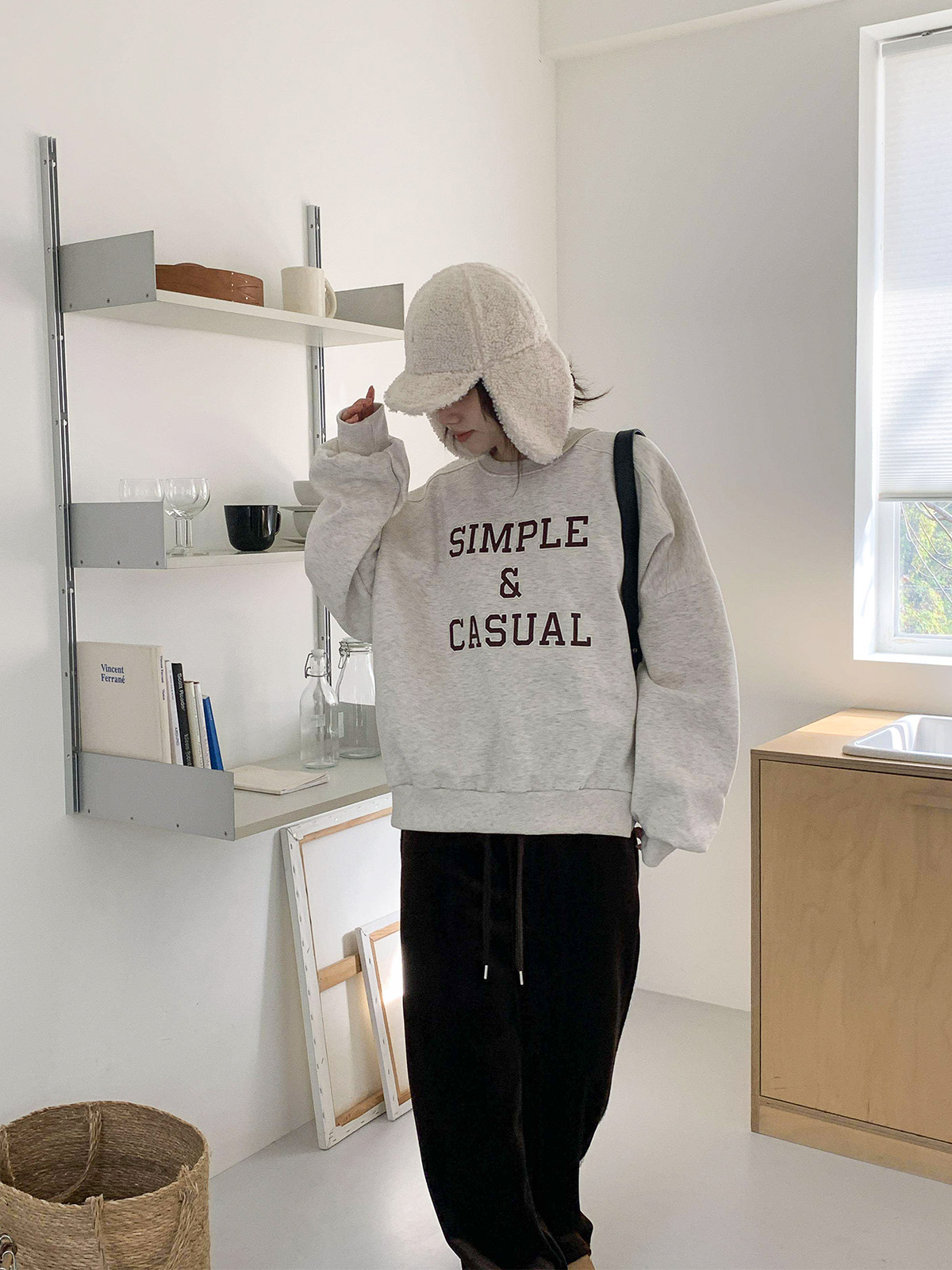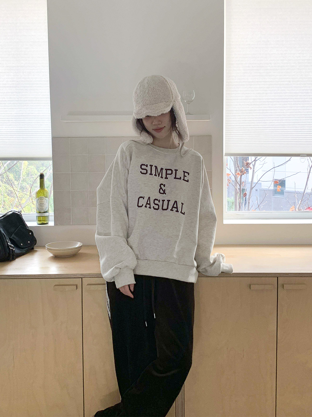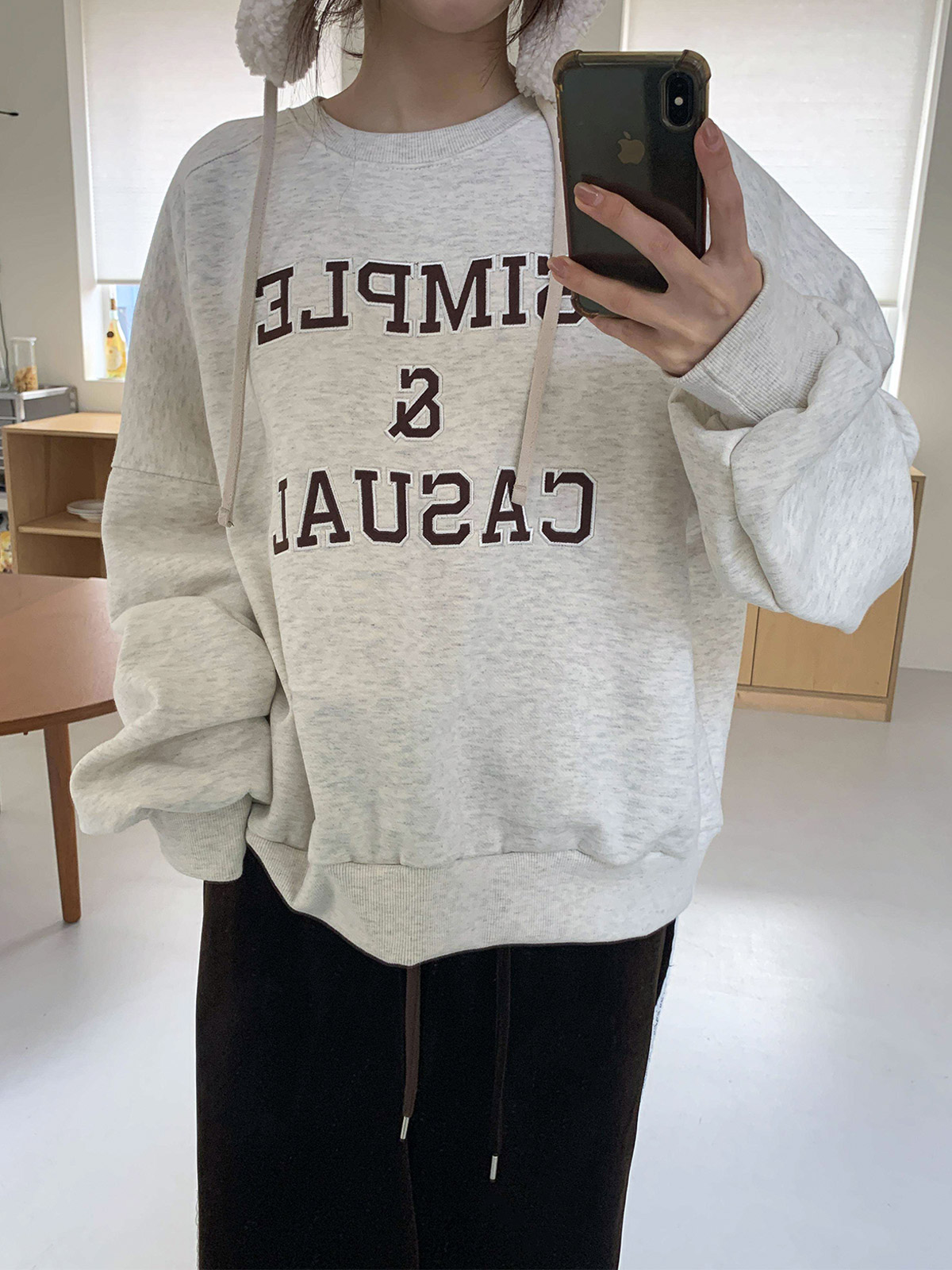 자수 레터링이 돋보이는 기모 맨투맨