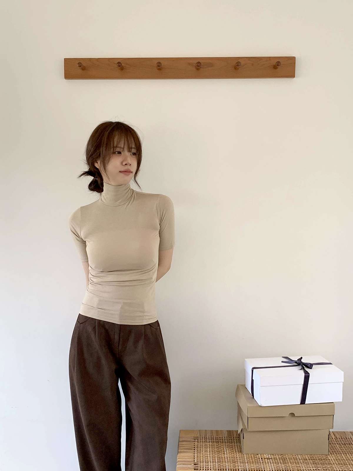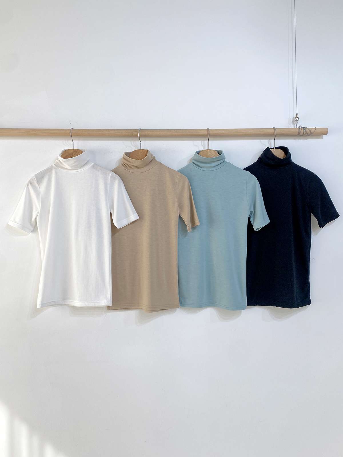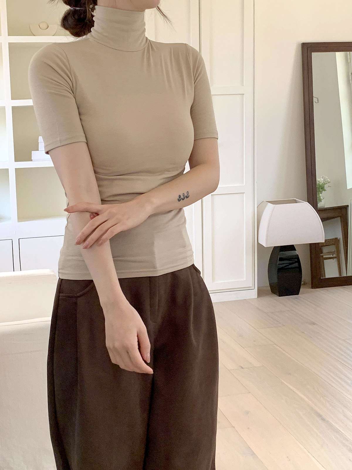 슬림핏에 짧은 따듯한 기모 안감의 반팔 폴라 티셔츠