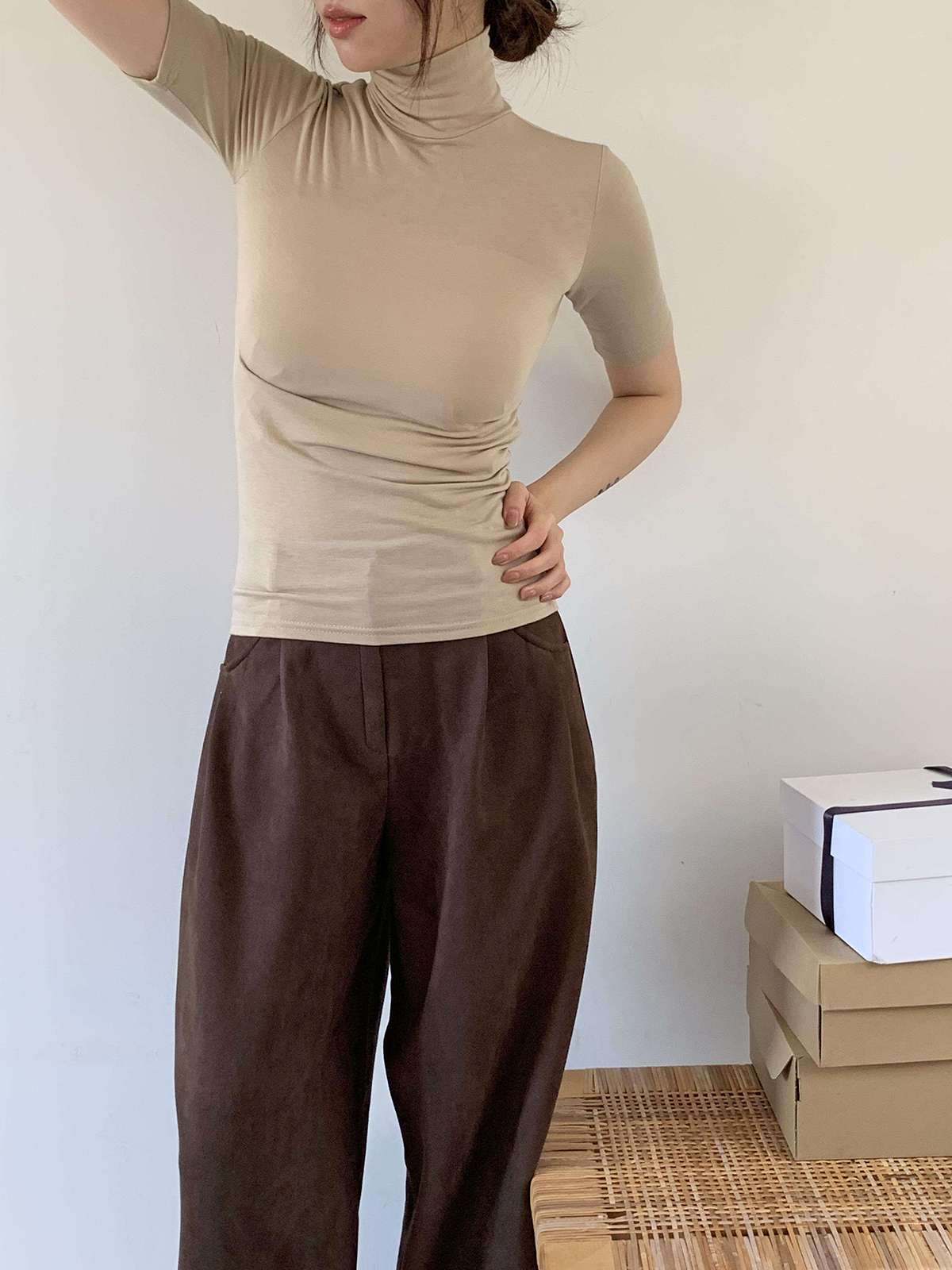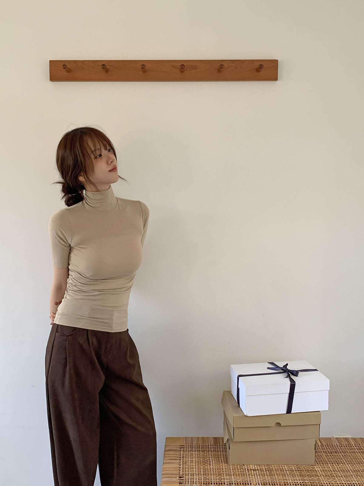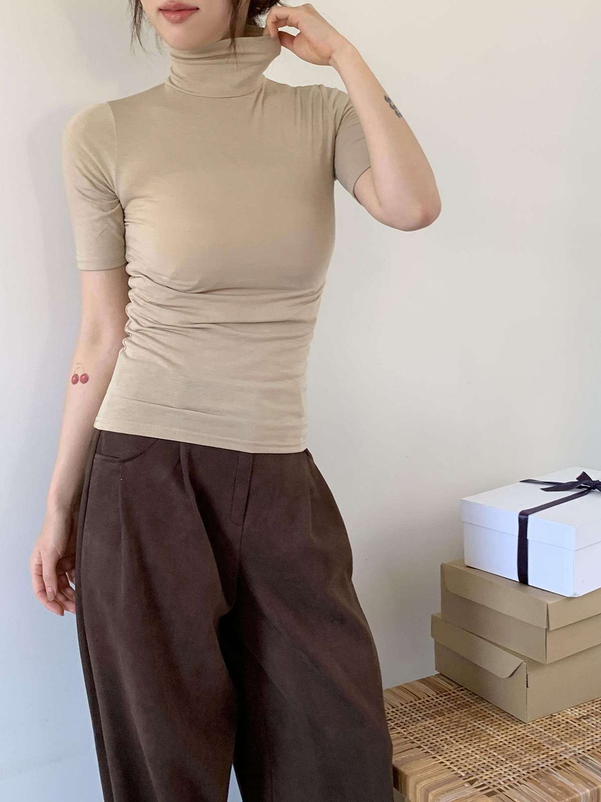 슬림핏에 짧은 따듯한 기모 안감의 반팔 폴라 티셔츠