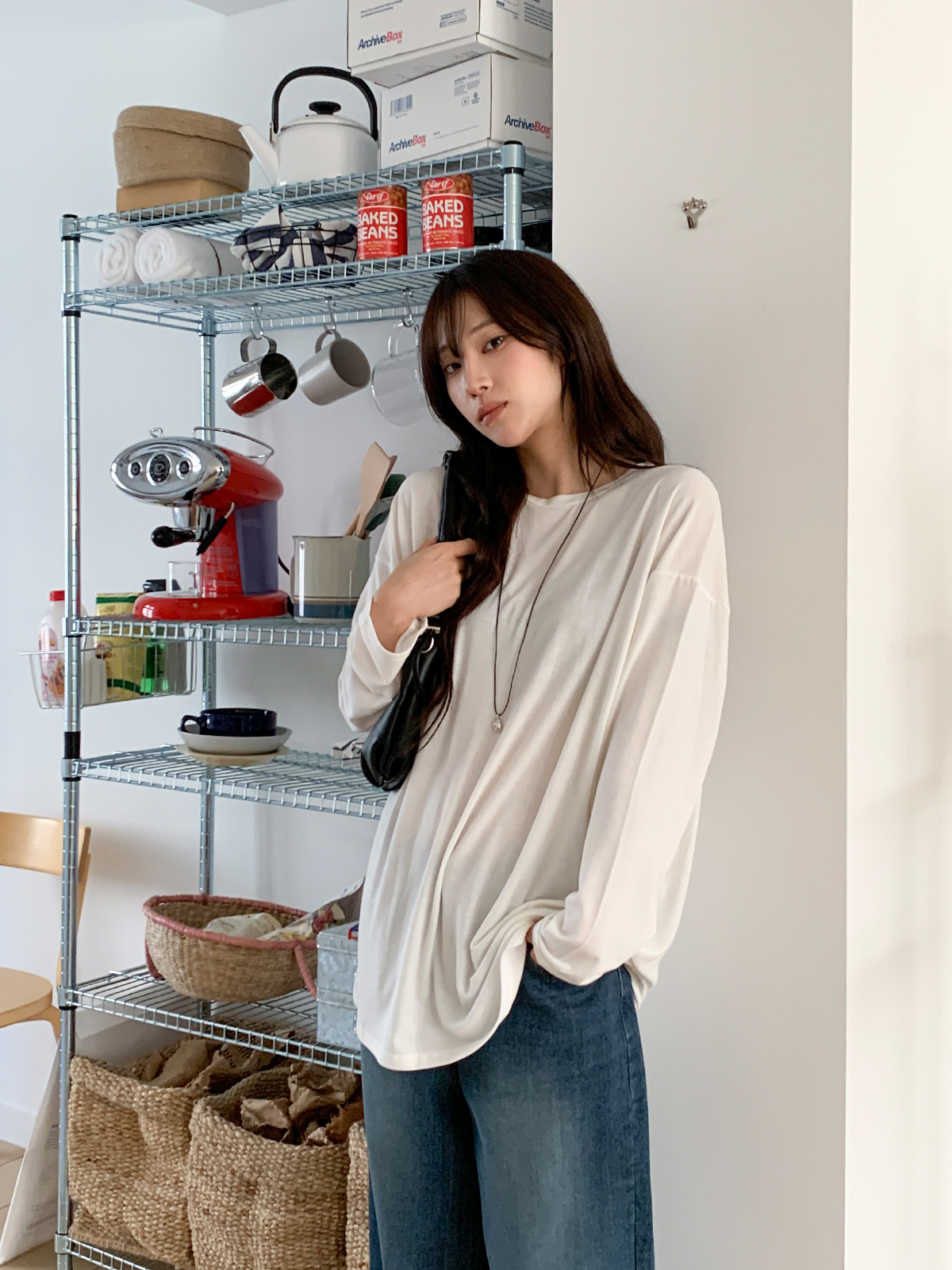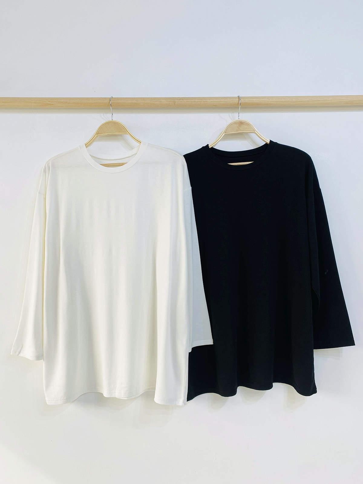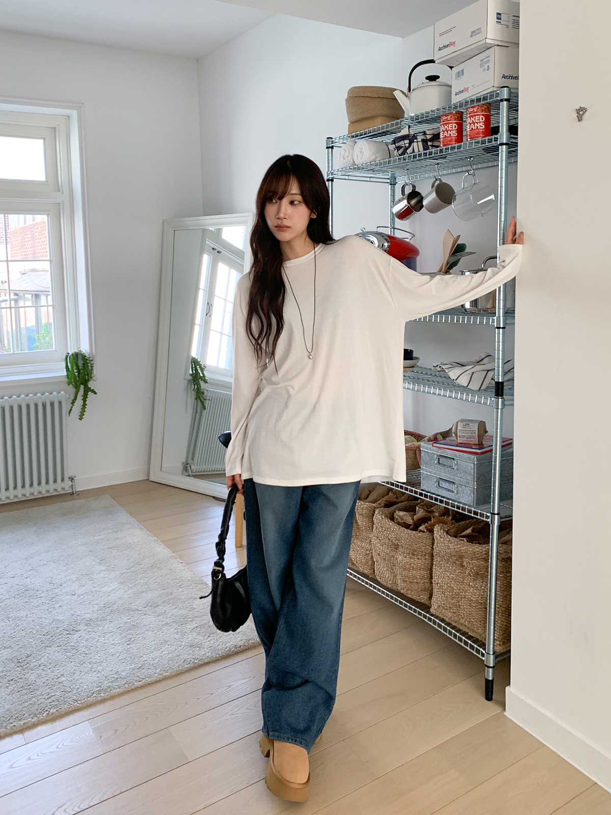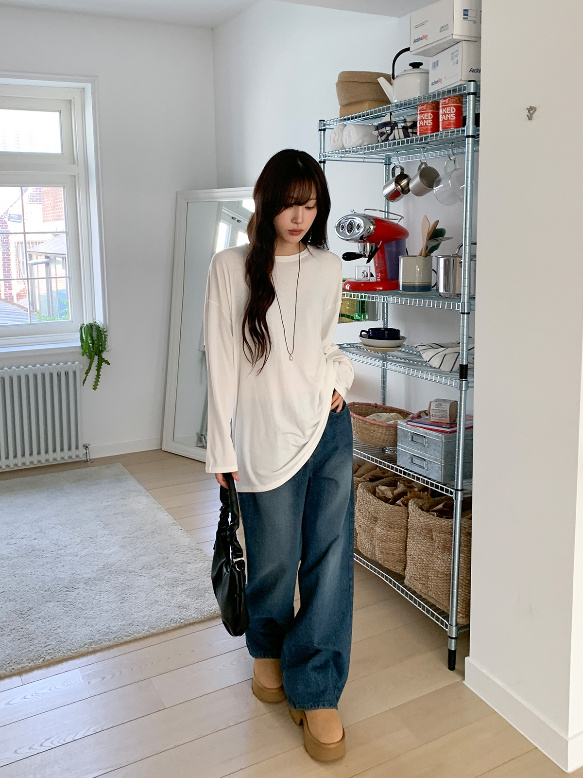 넉넉한 오버핏의 라운드넥 긴팔 티셔츠입니다!