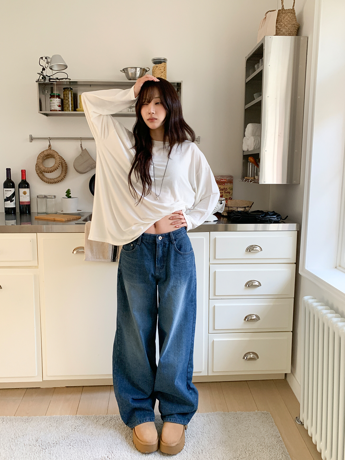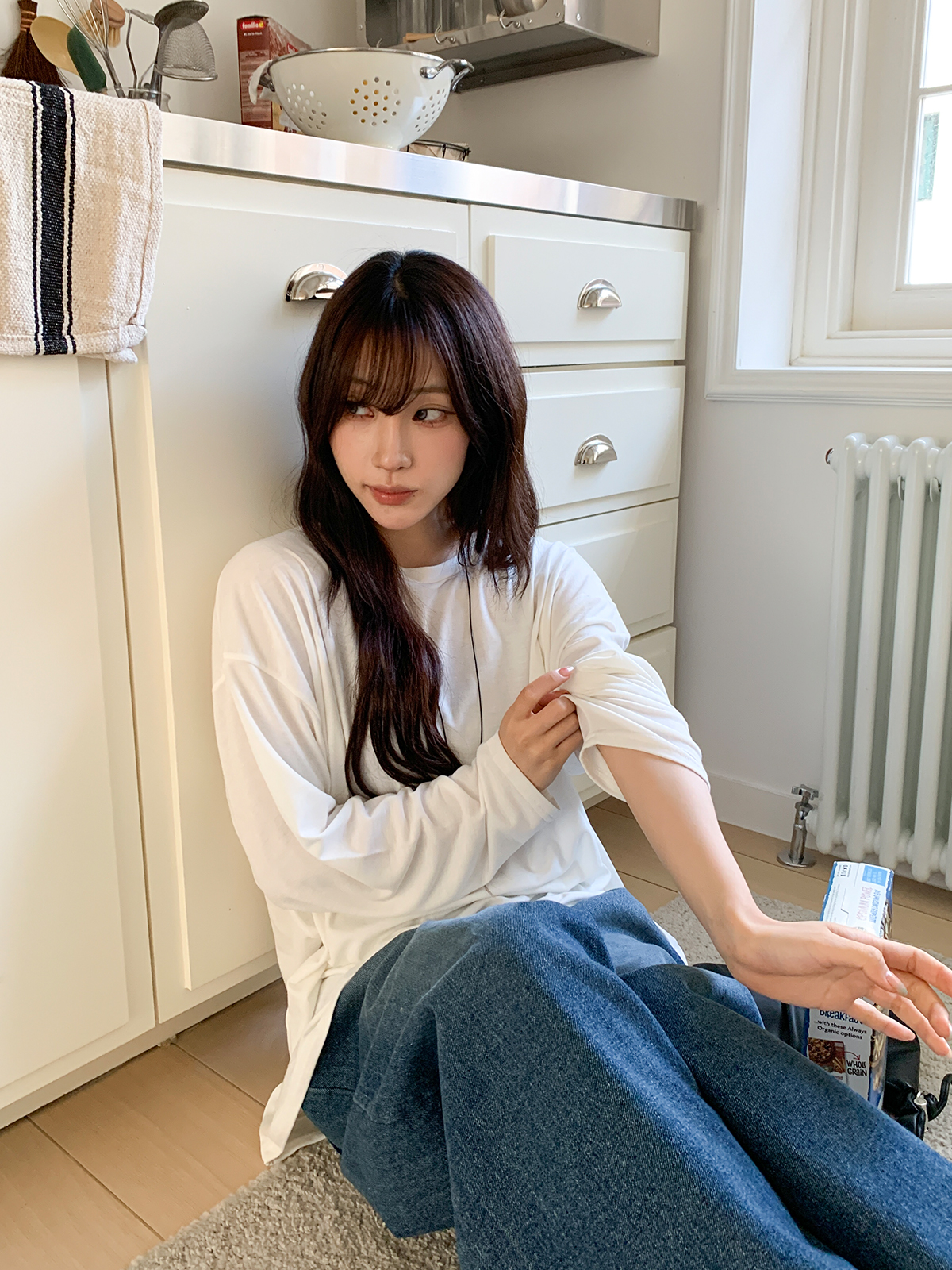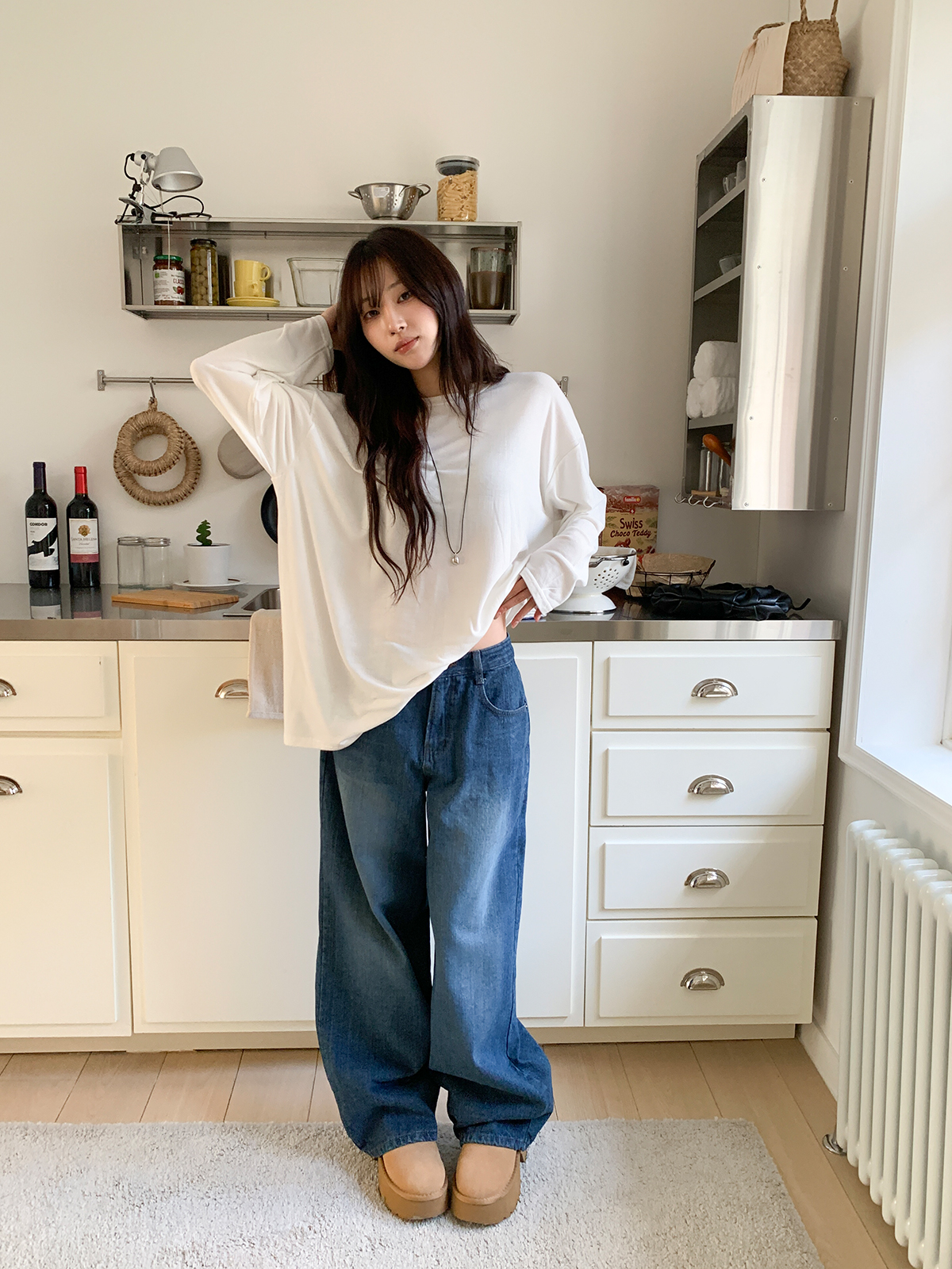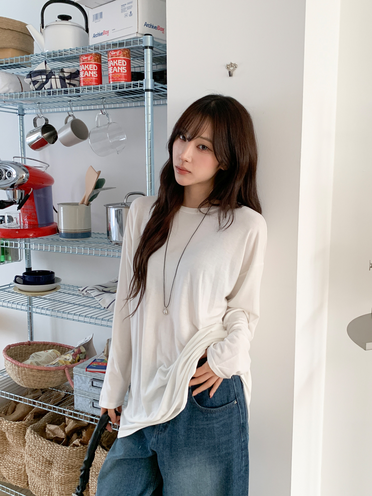 넉넉한 오버핏의 라운드넥 긴팔 티셔츠입니다!