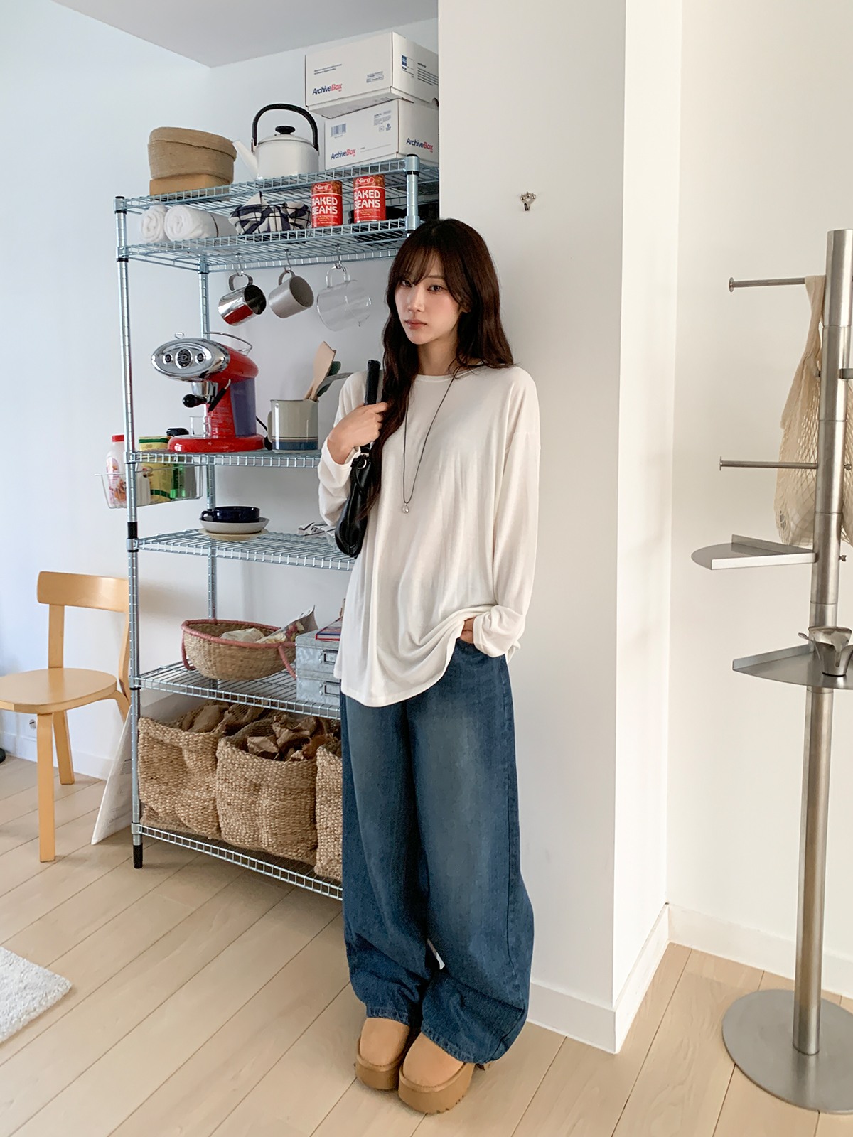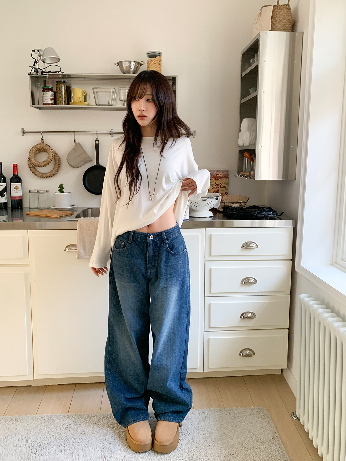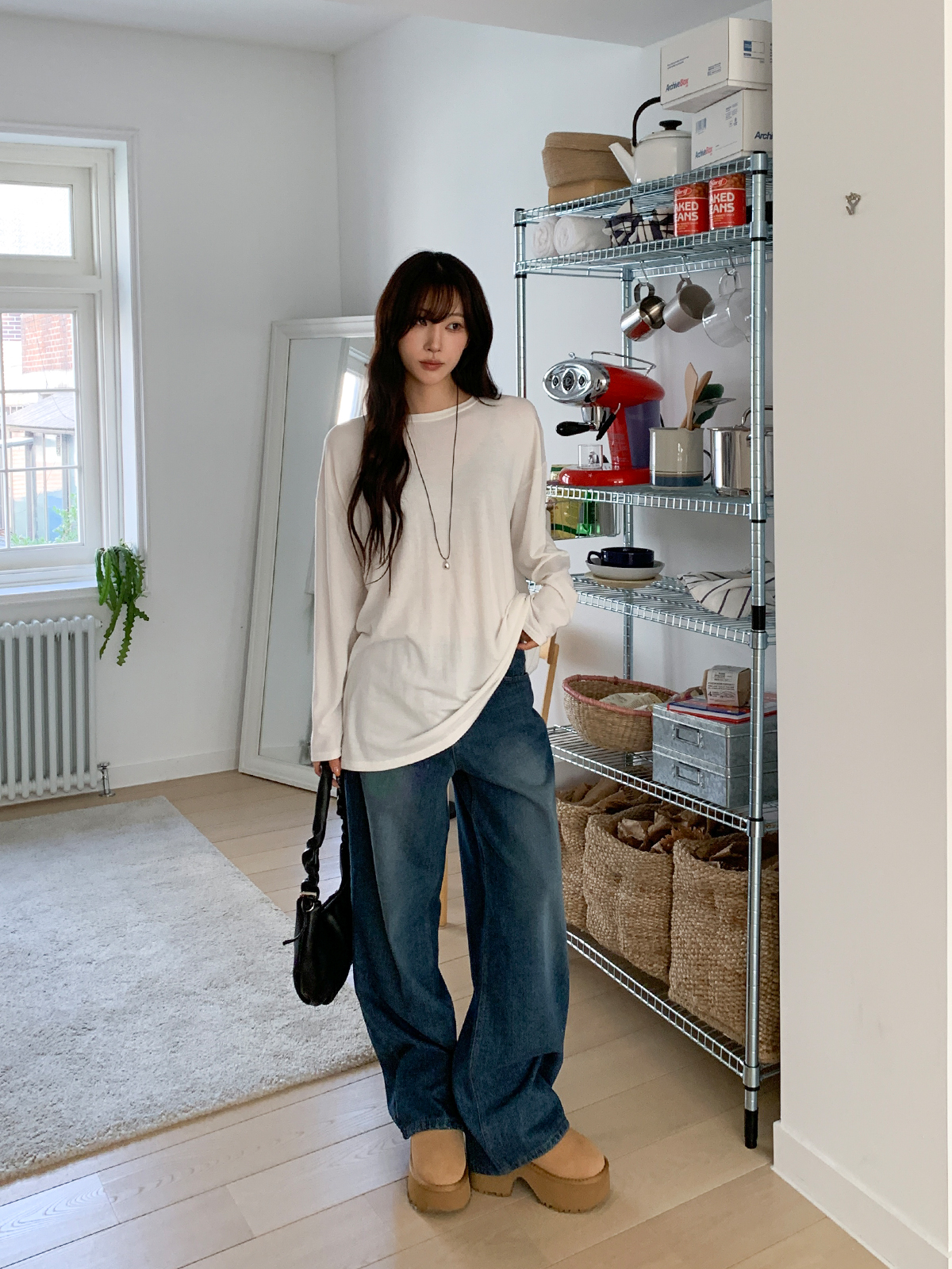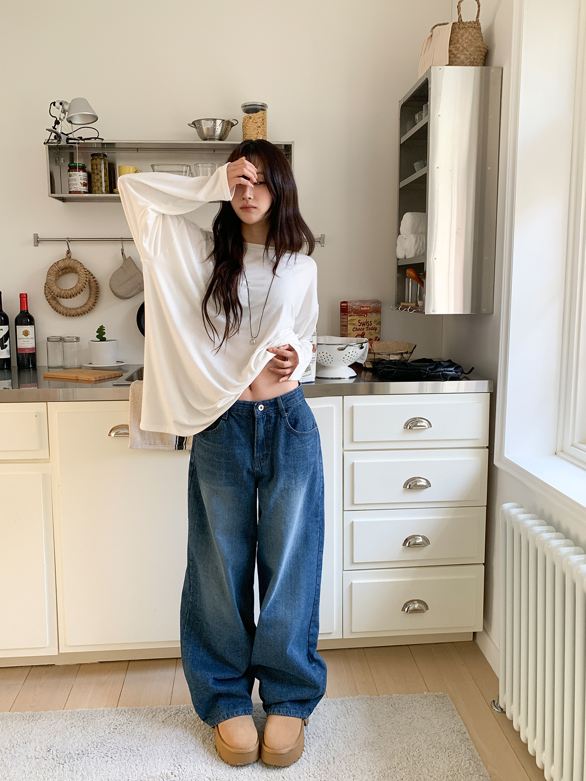 넉넉한 오버핏의 라운드넥 긴팔 티셔츠입니다!