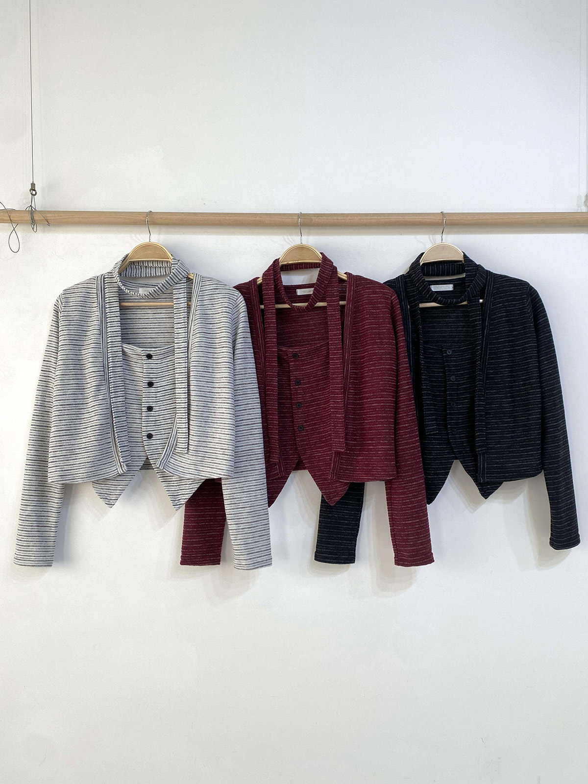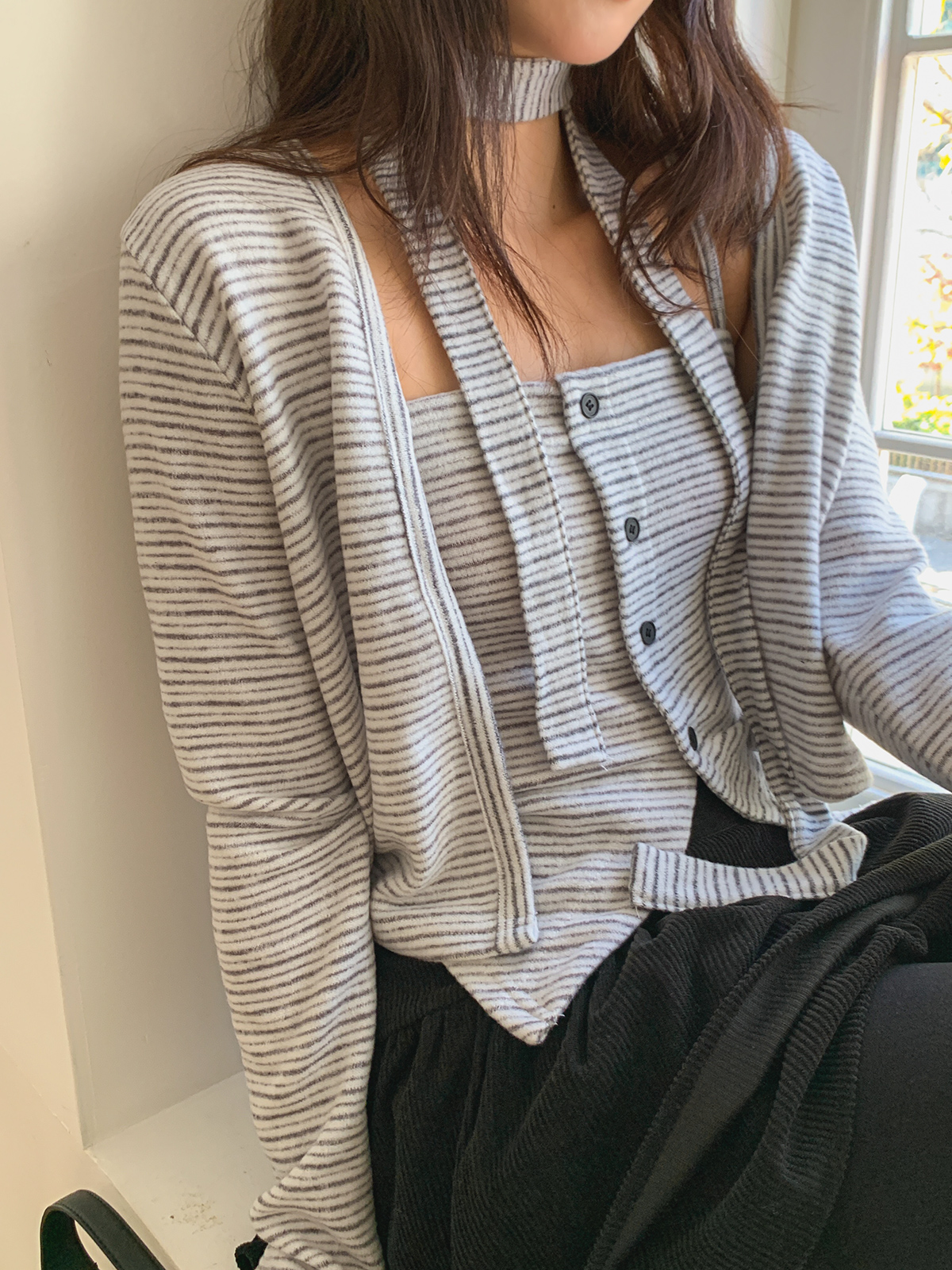 [ SET3888K5B-프메리 슬림핏 스트라이프 초커 나시 가디건 세트 ]