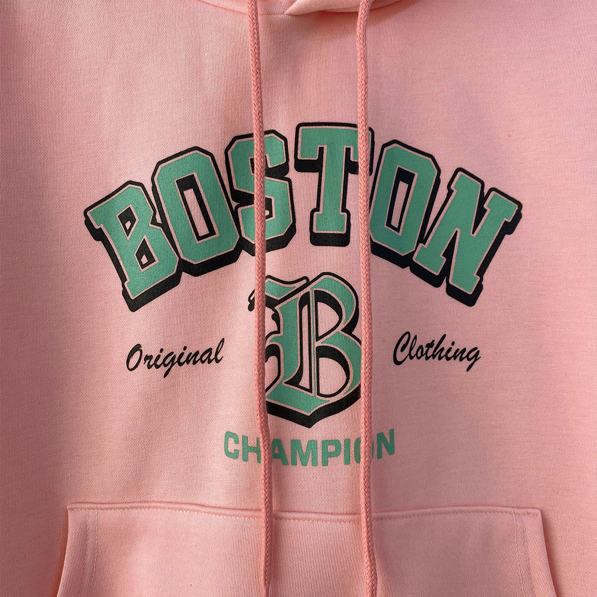 T17334K5B-래루리 보스턴 캥거루 주머니 기모 후드 티셔츠