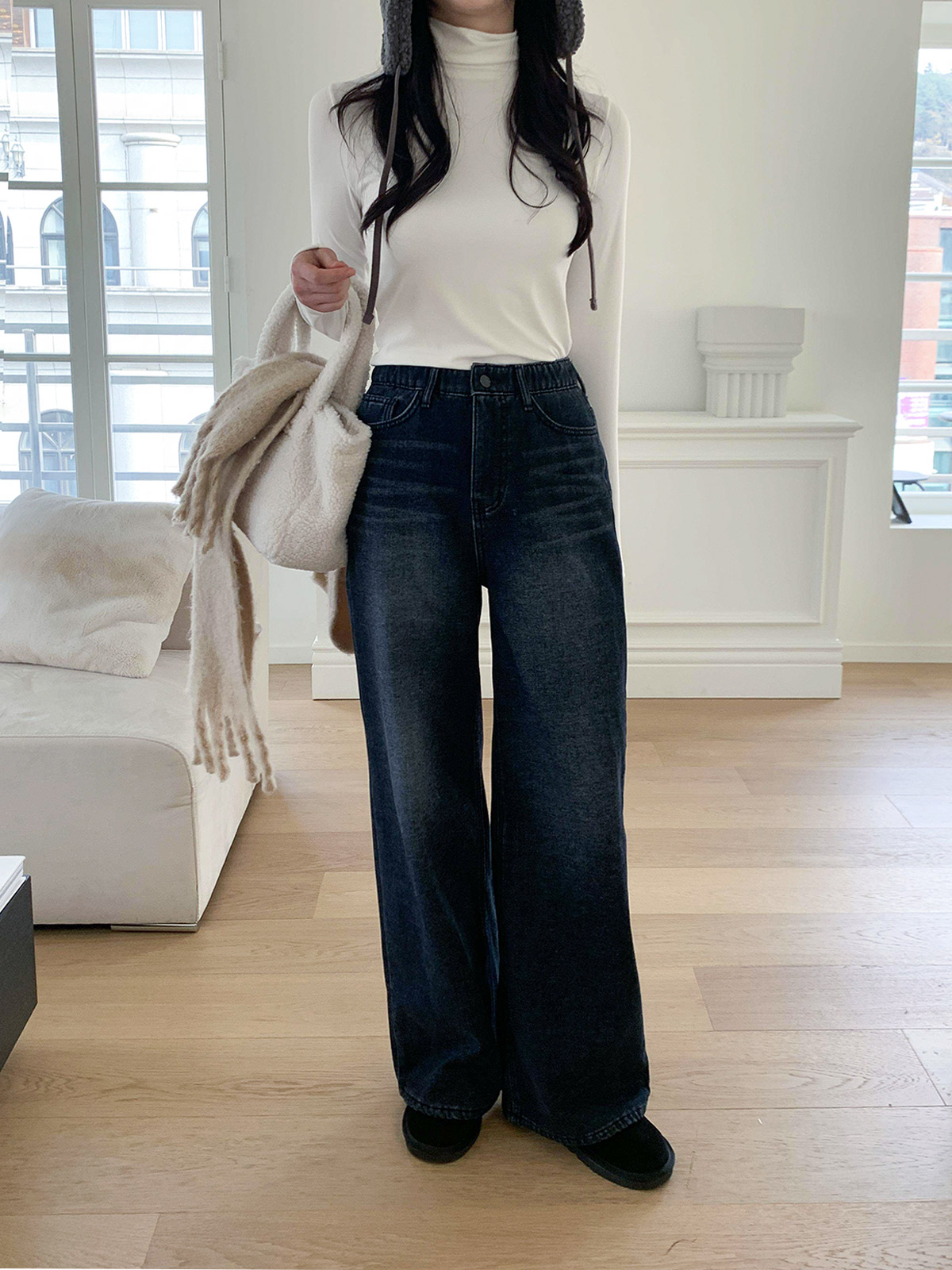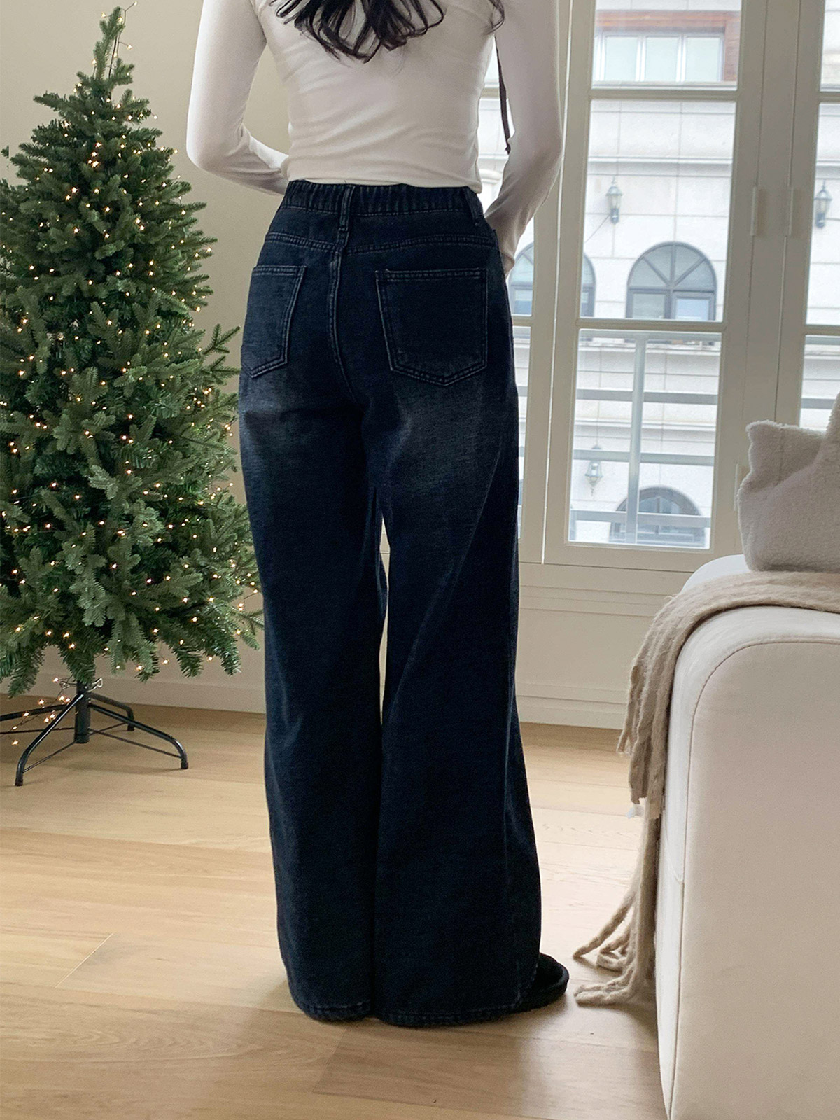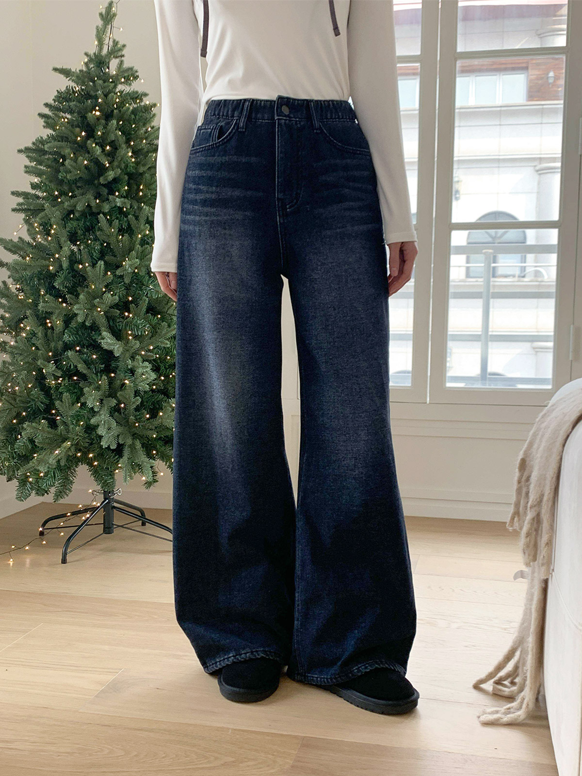 따뜻한 기모 안감의 와이드 데님 팬츠