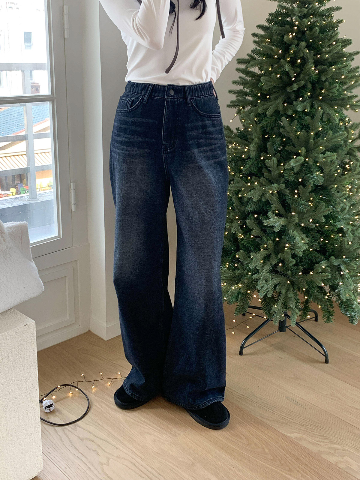PT15639K5B-티루리 와이드 워싱 기모 밴딩 데님 팬츠