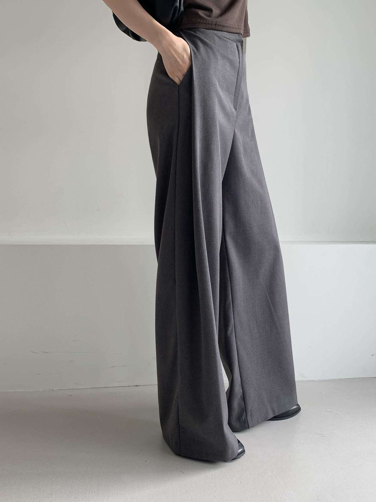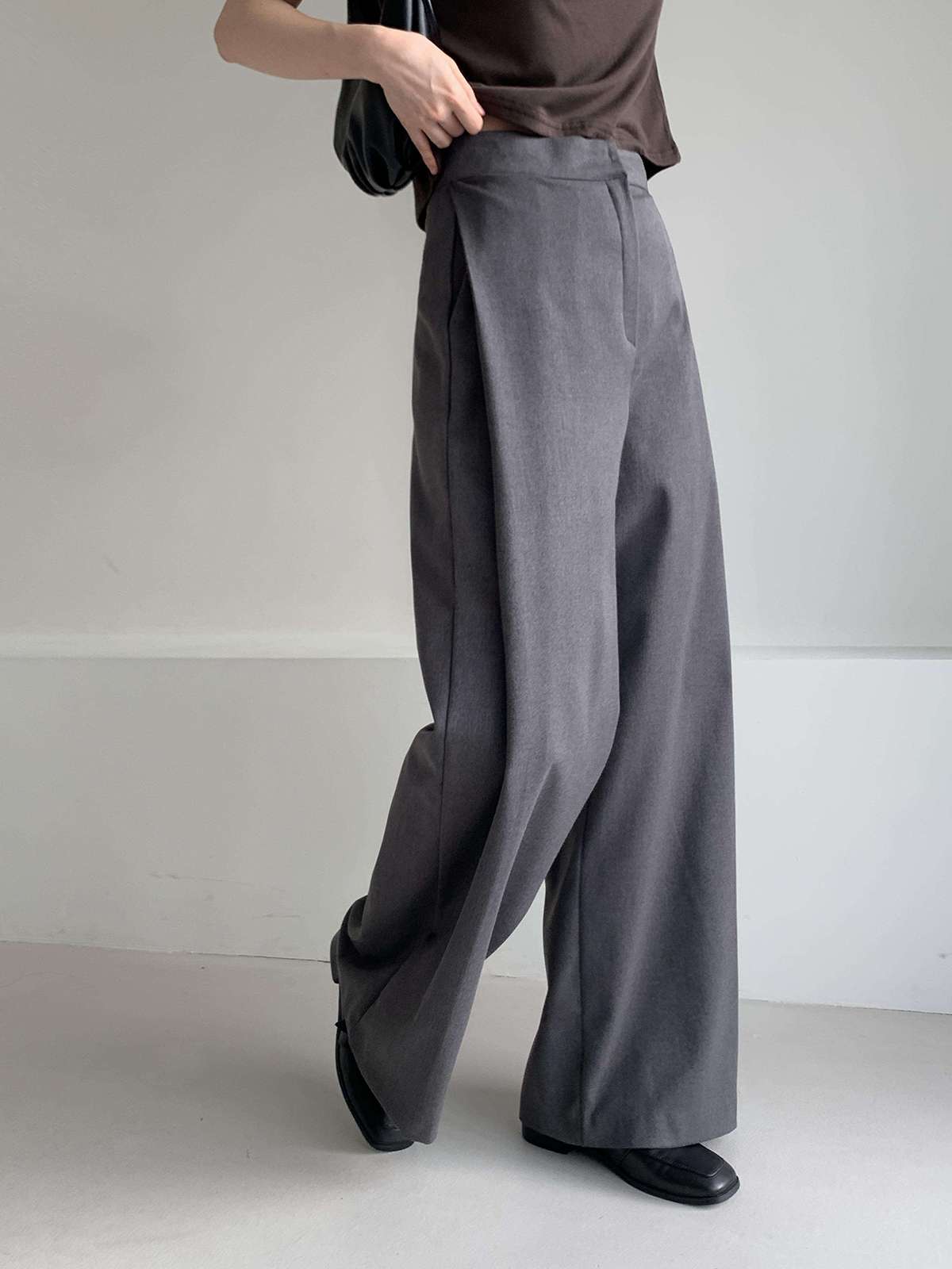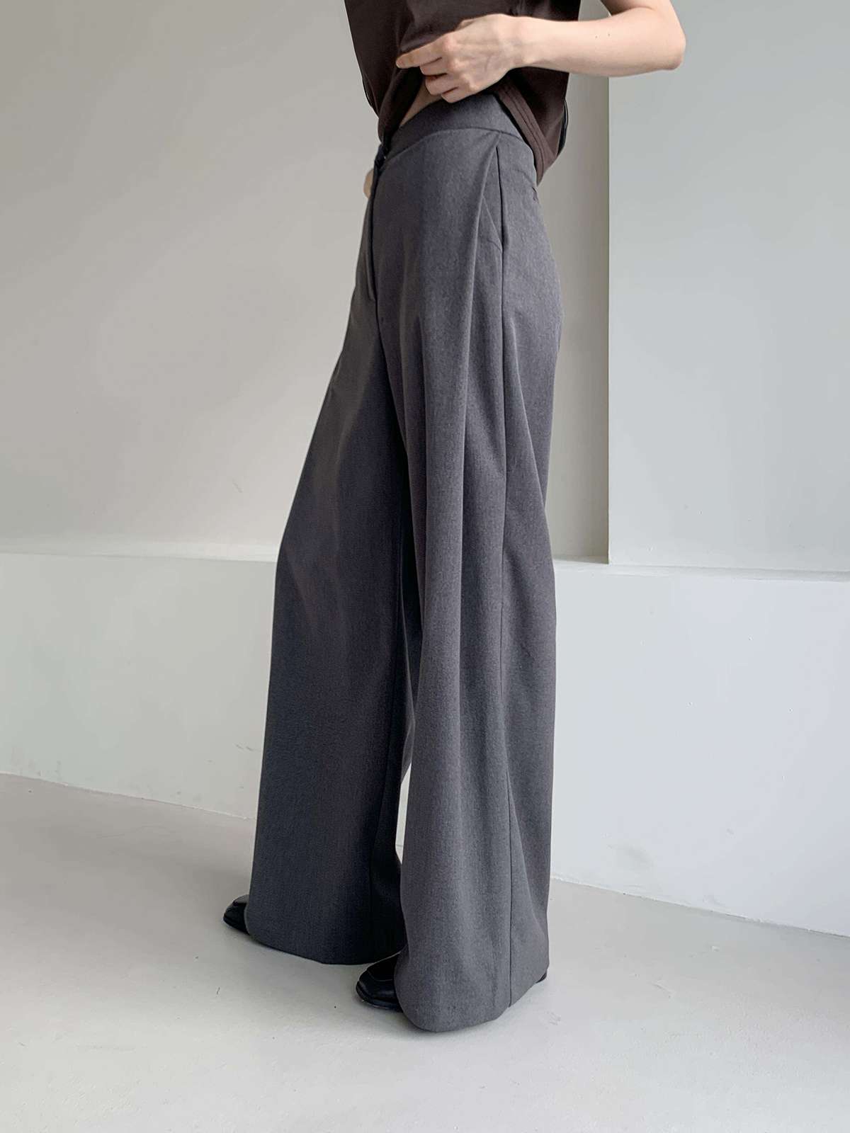 PT15641K5B-후루리 사이드 핀턱 모던 와이드 기모 슬랙스