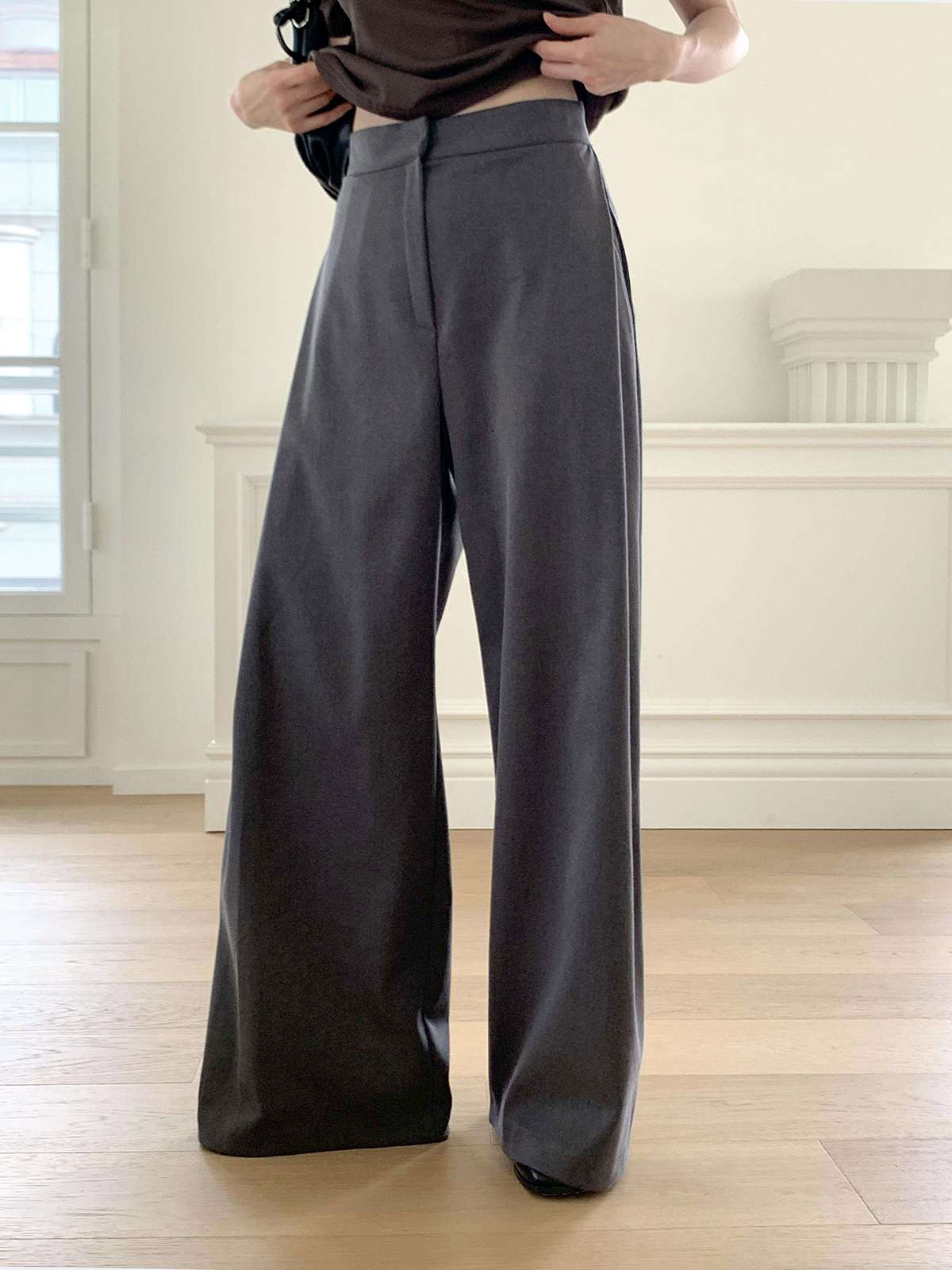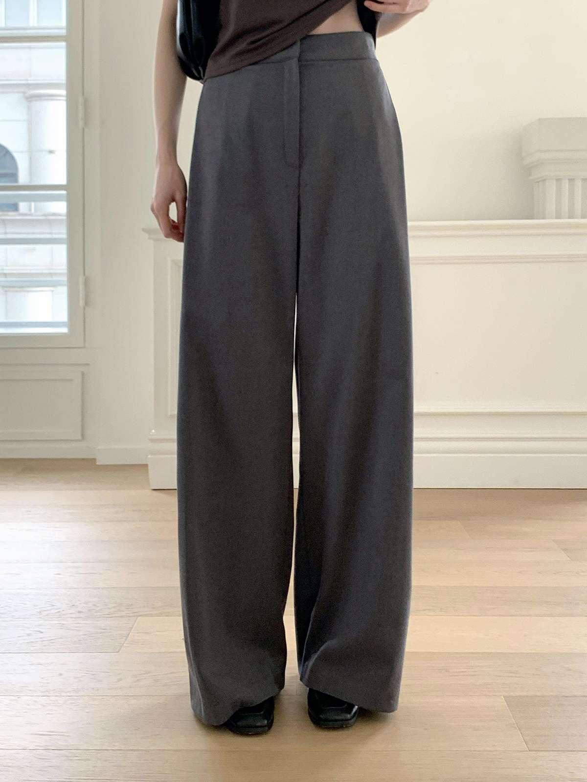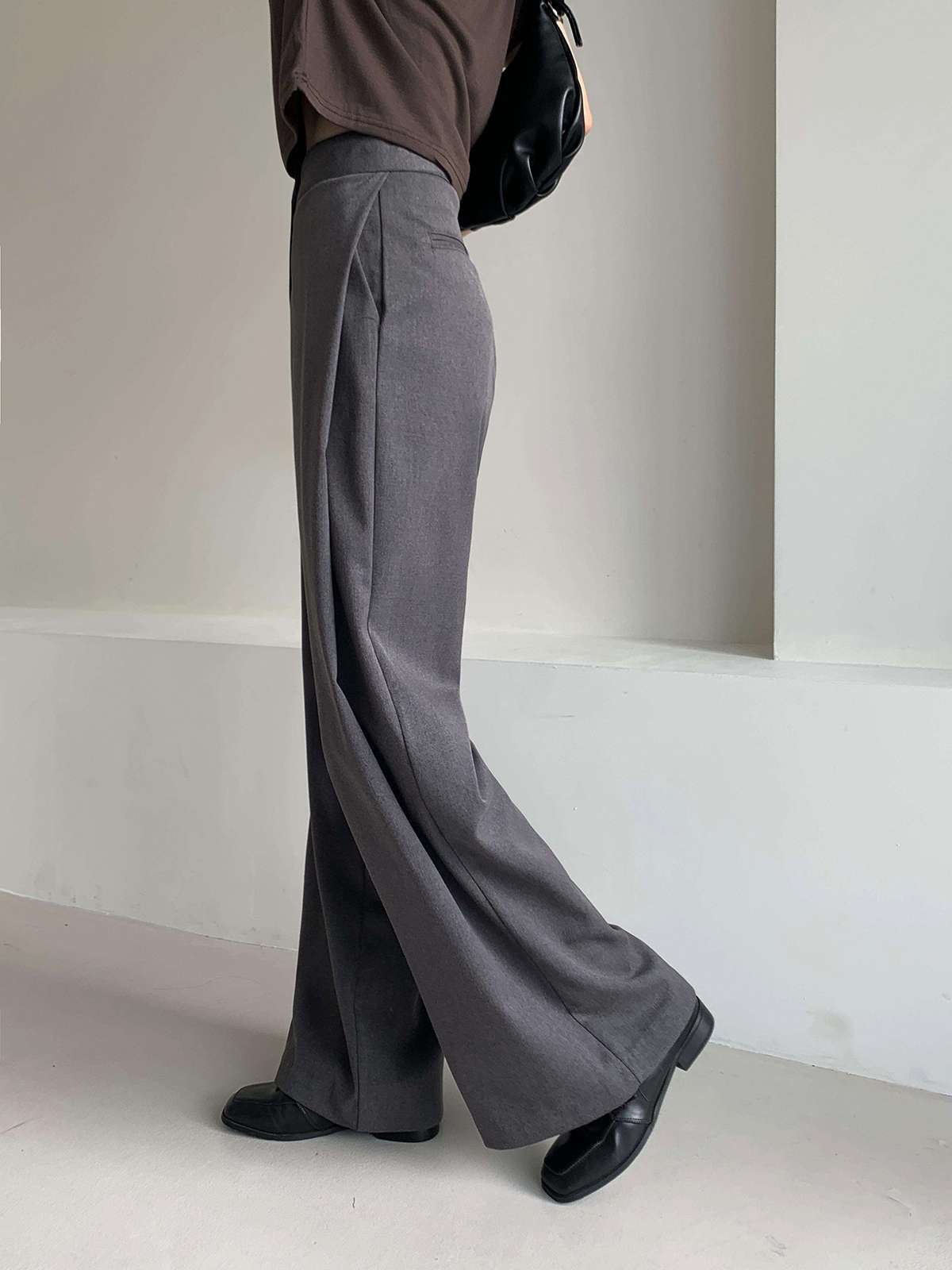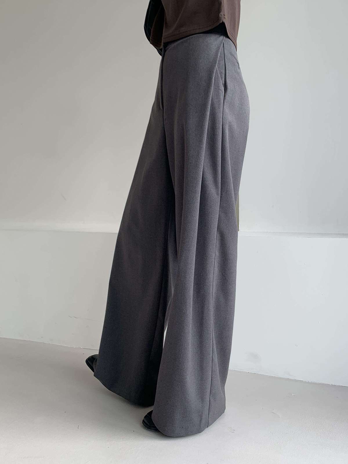 PT15641K5B-후루리 사이드 핀턱 모던 와이드 기모 슬랙스