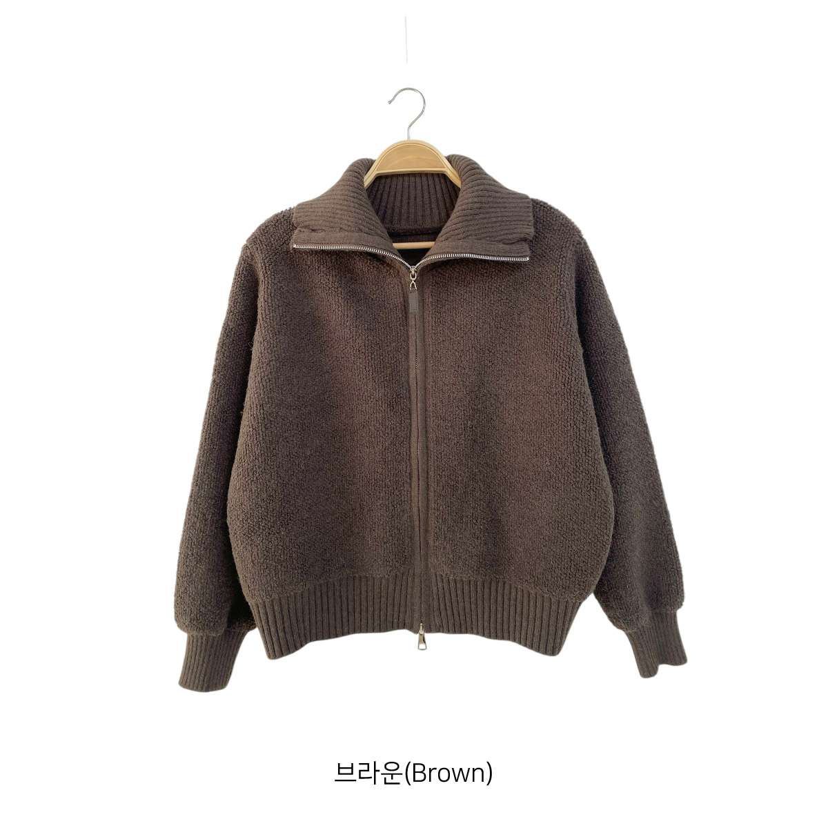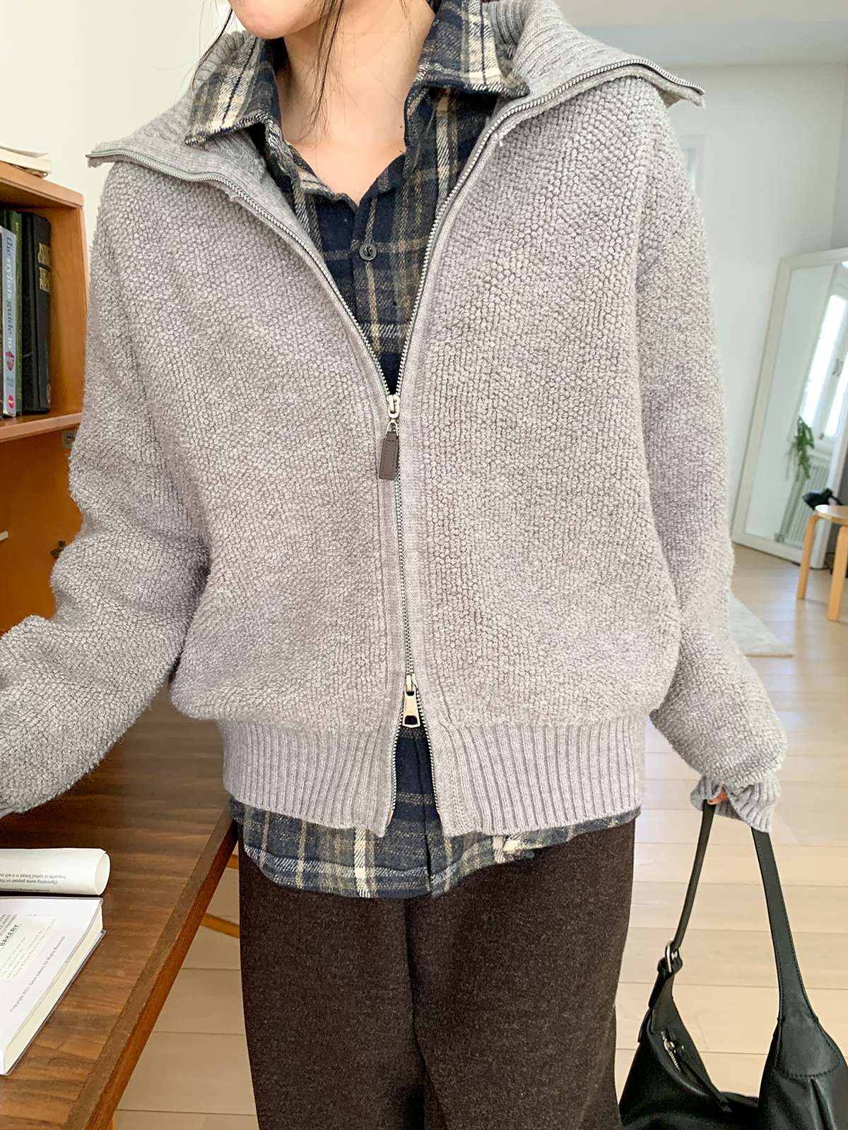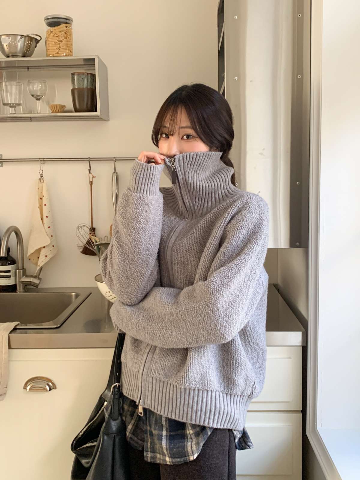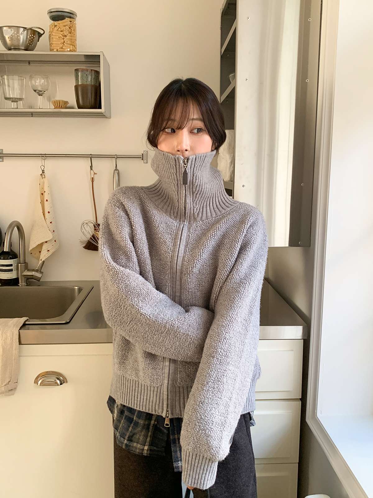 JK6113K5B-니루리 부클 하이넥 투웨이 니트 집업