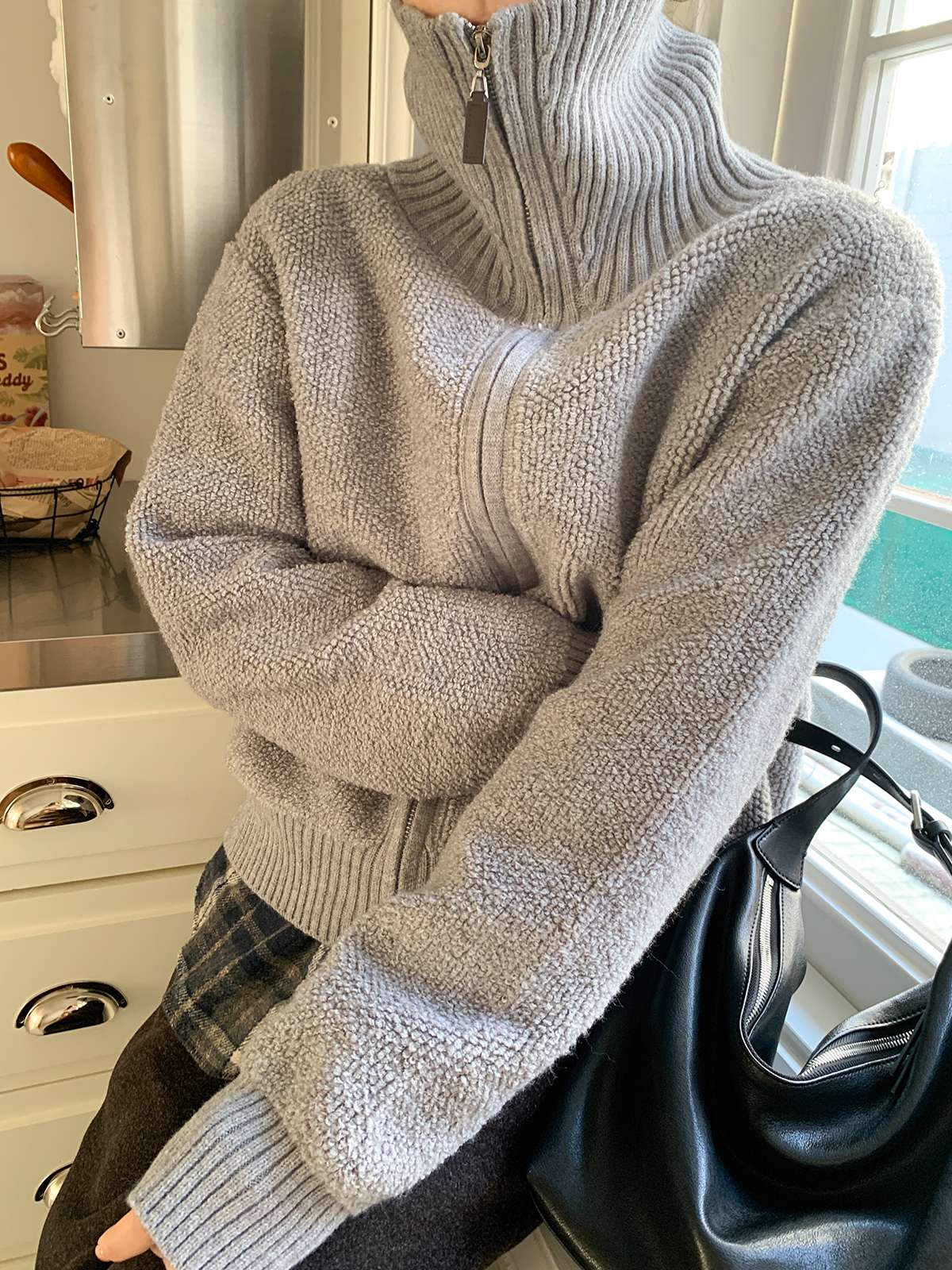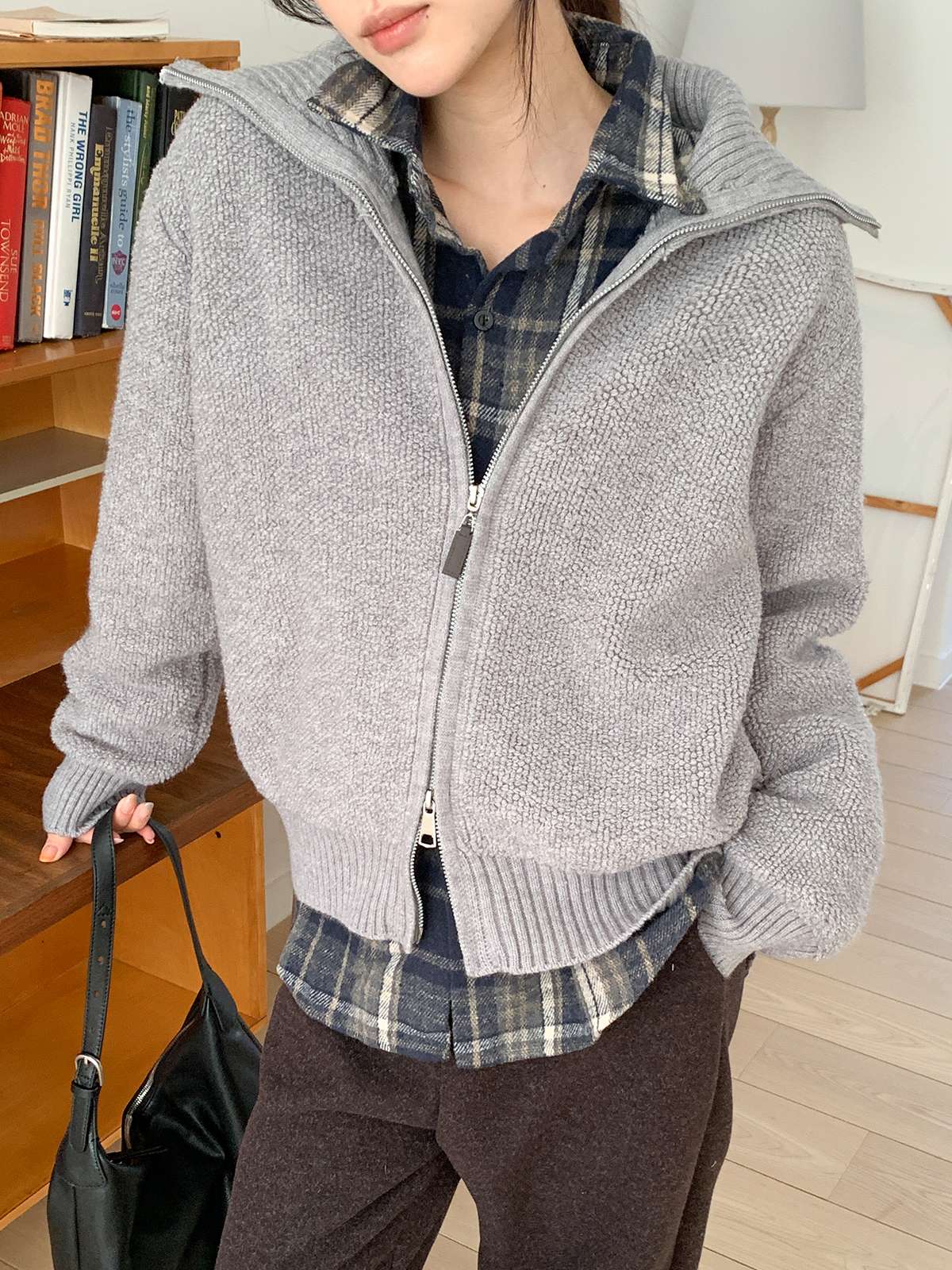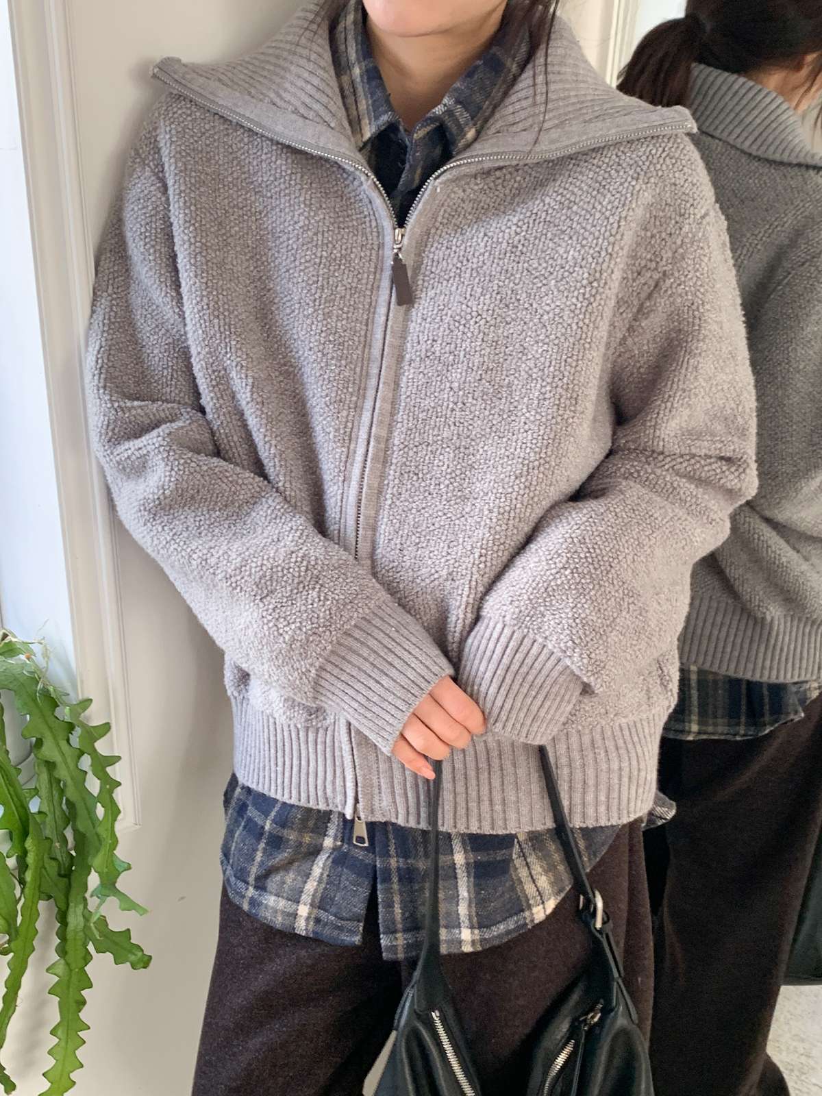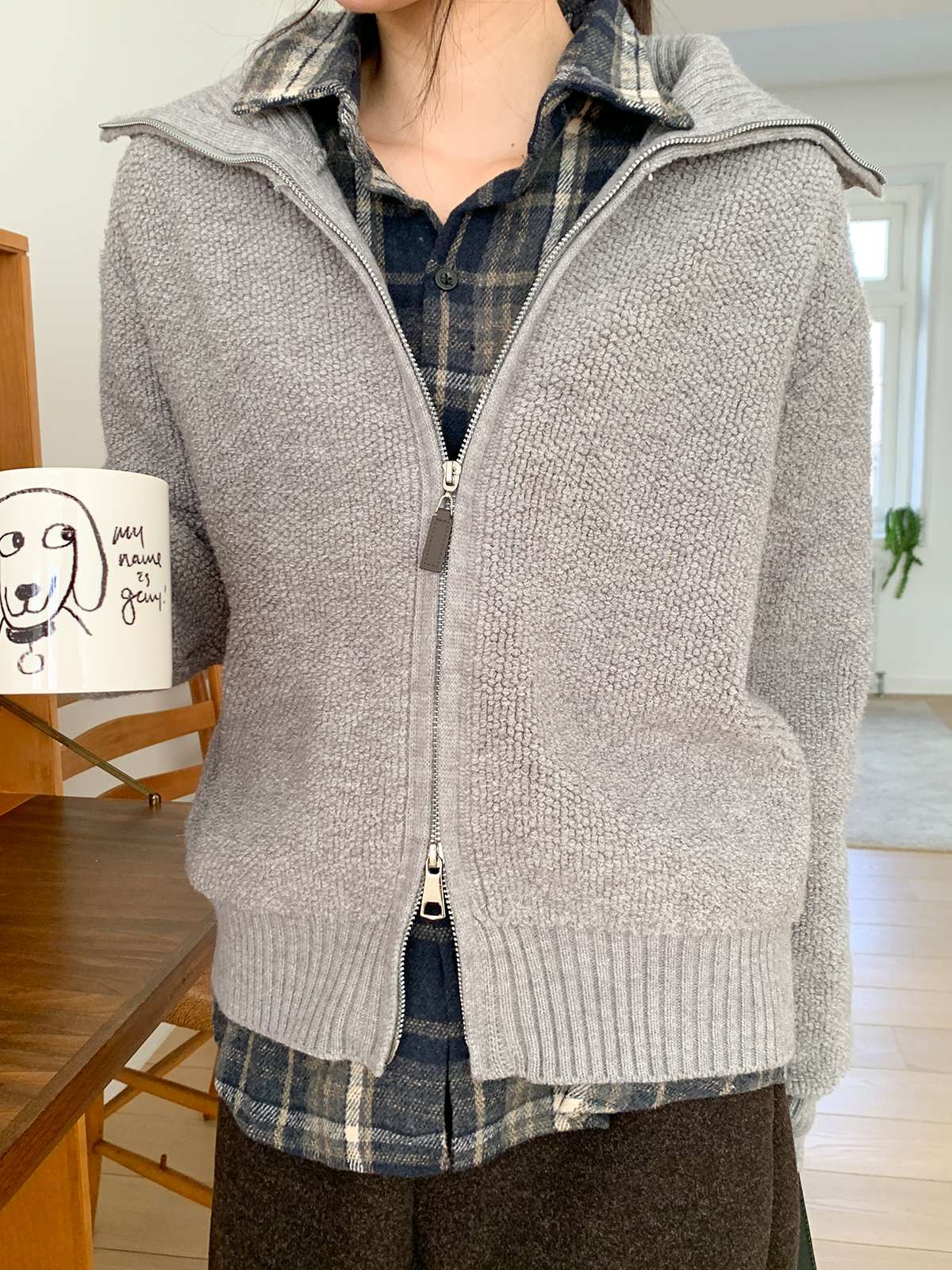 JK6113K5B-니루리 부클 하이넥 투웨이 니트 집업