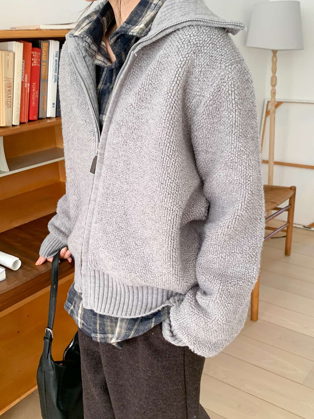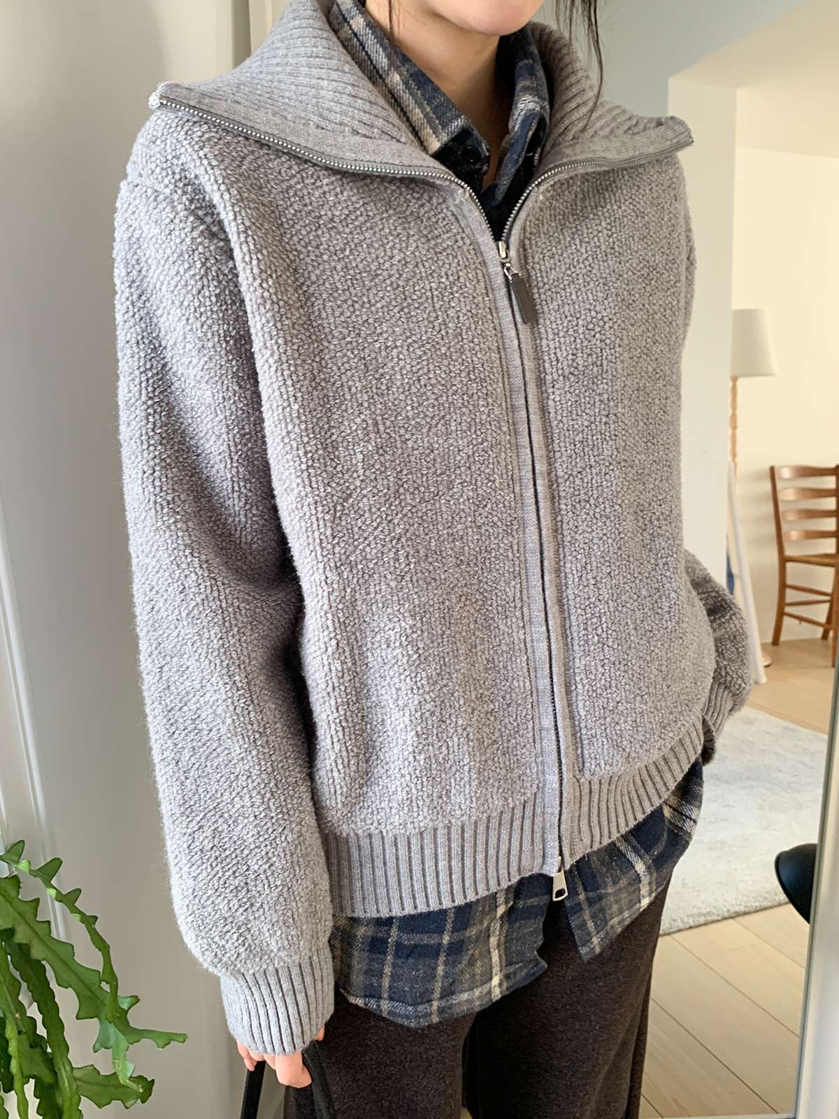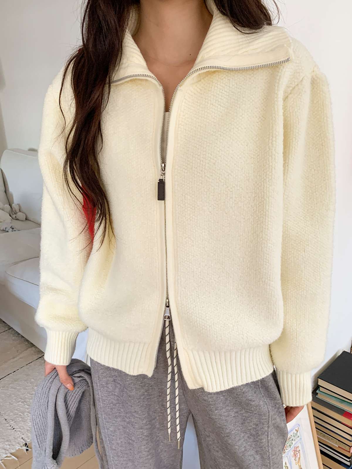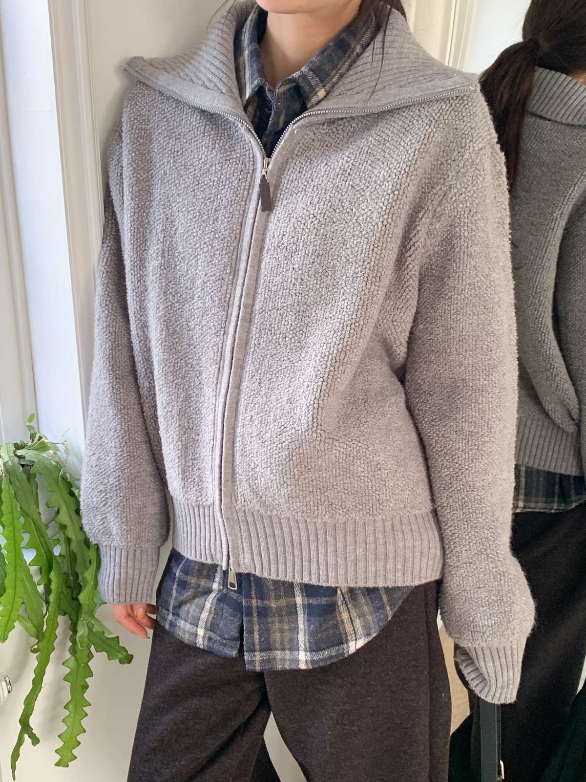 JK6113K5B-니루리 부클 하이넥 투웨이 니트 집업