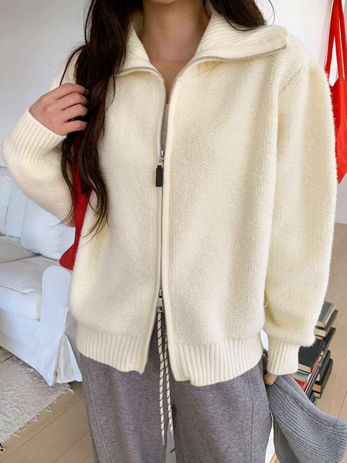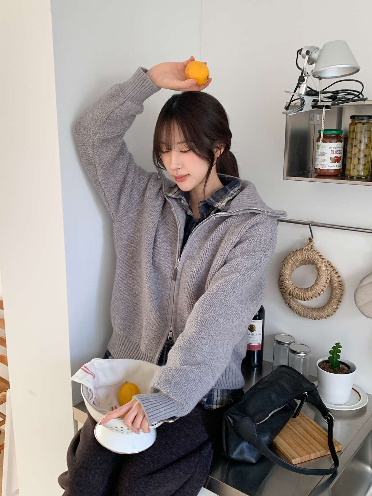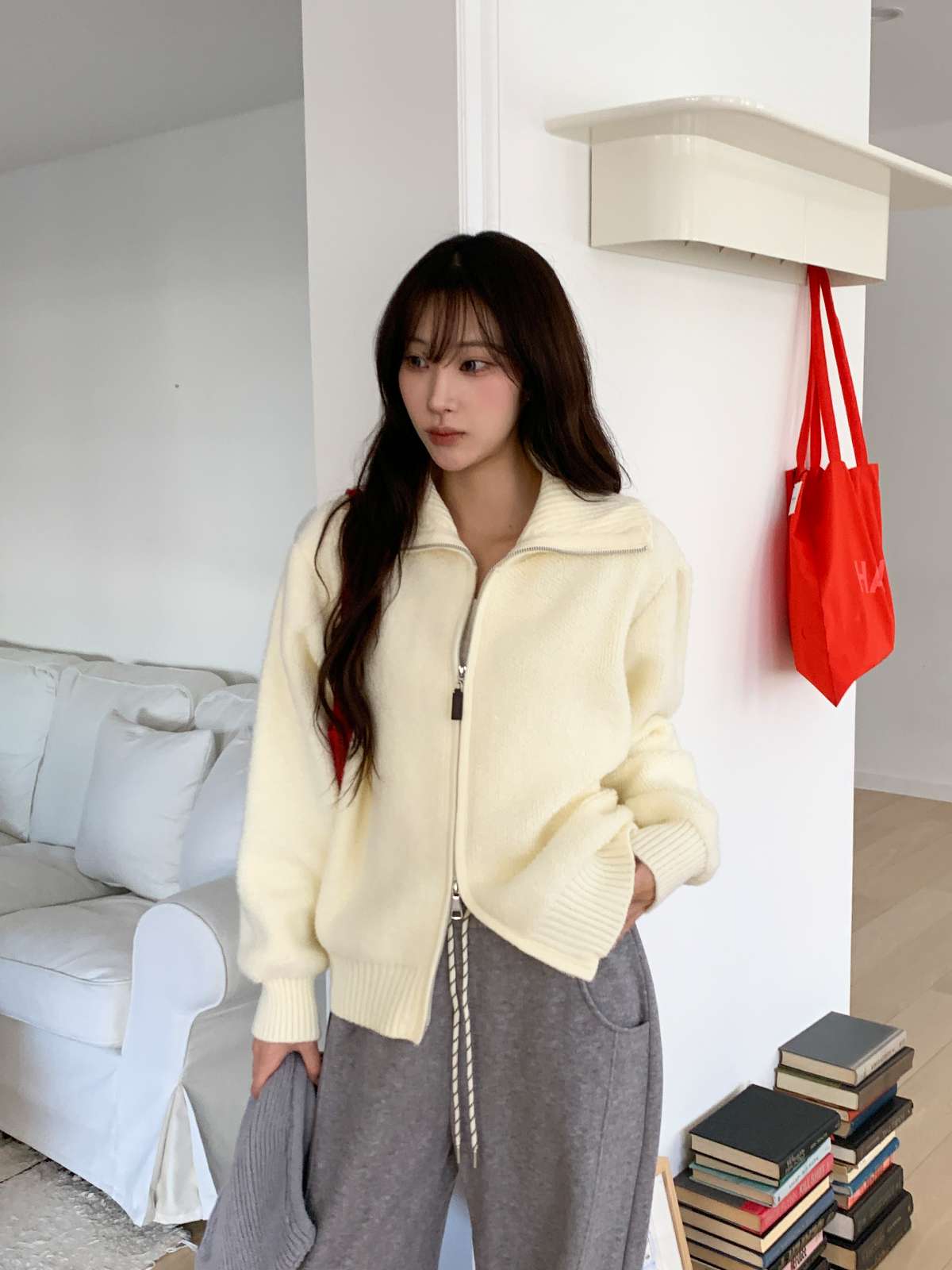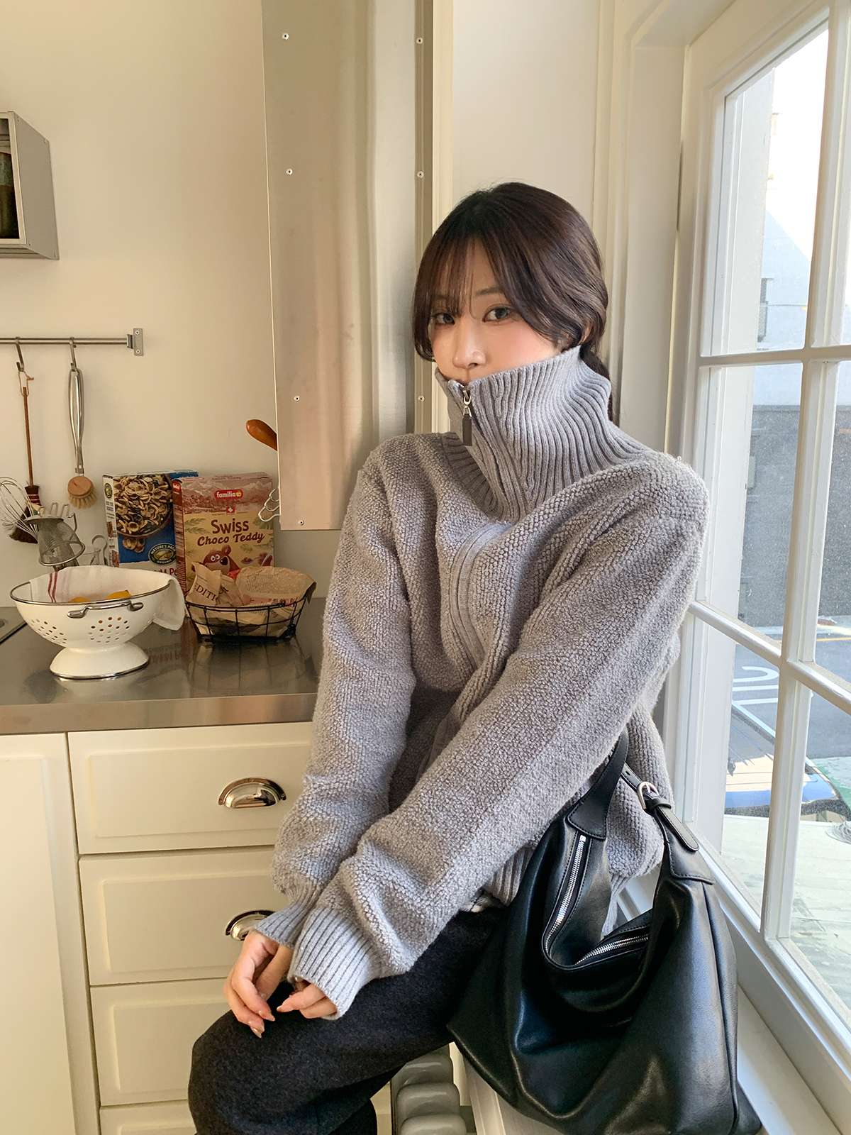 JK6113K5B-니루리 부클 하이넥 투웨이 니트 집업