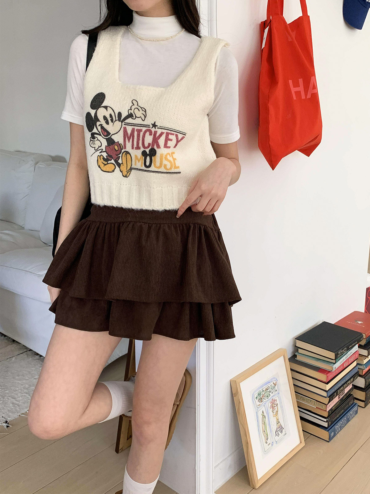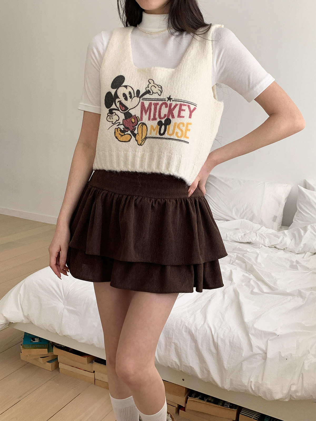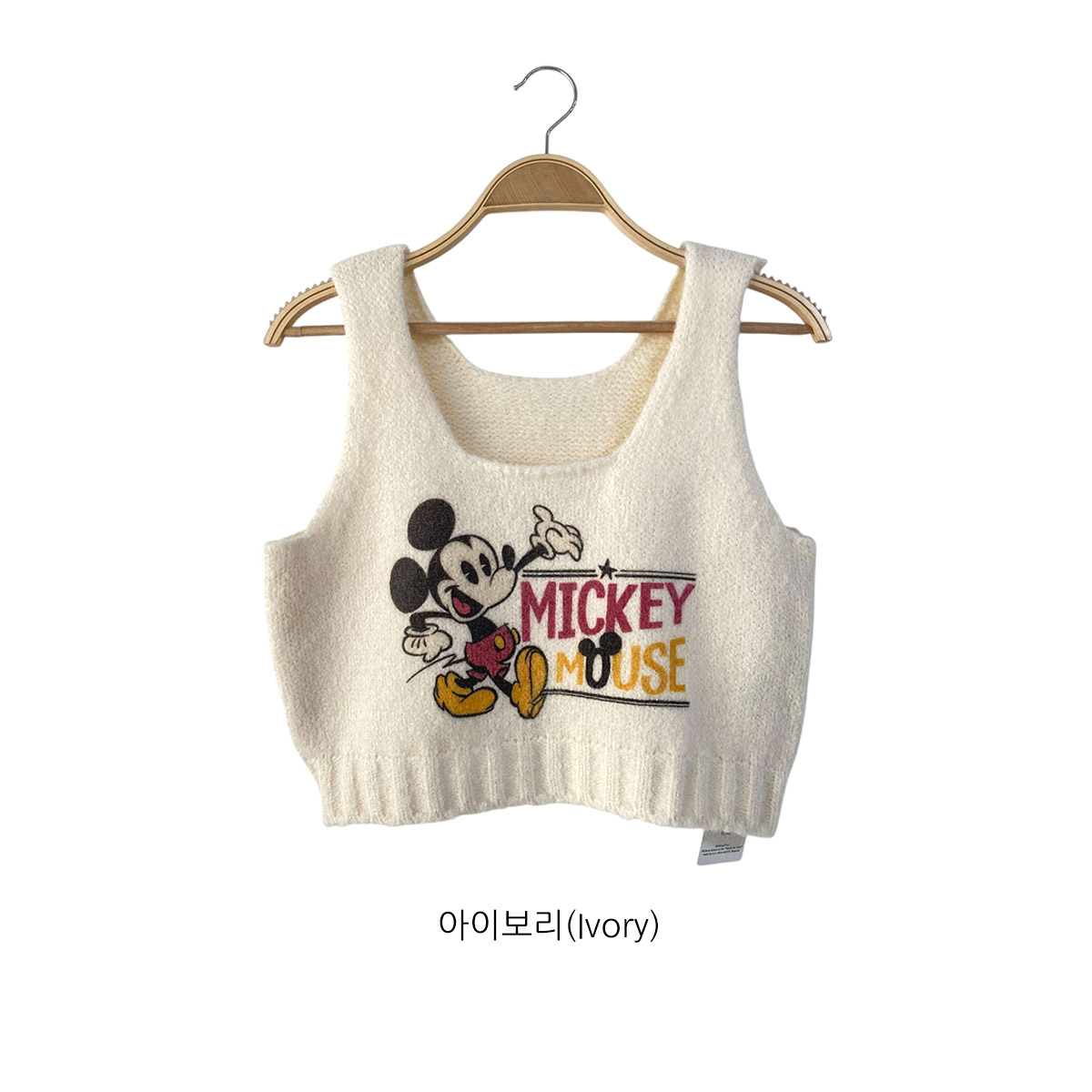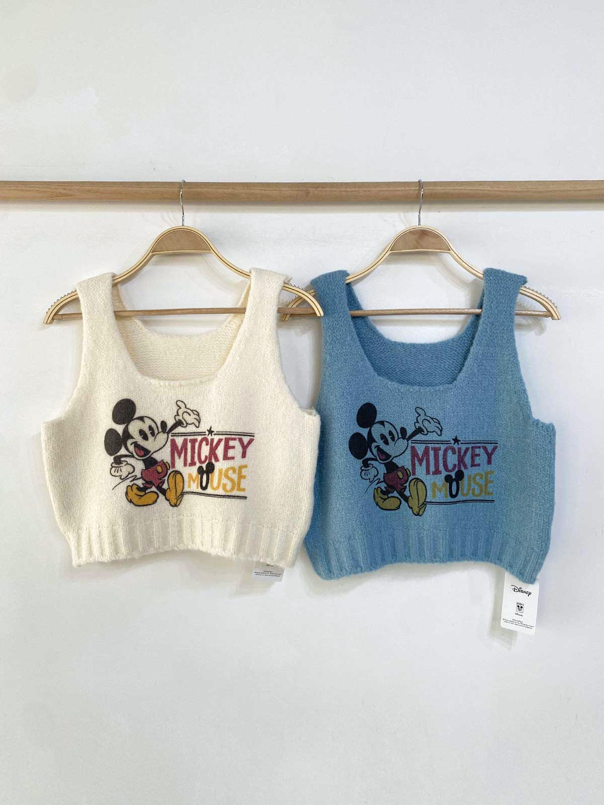 [ VT1407K5B-(디즈니정품)어루리 미키 프린팅 크롭 니트 베스트 ]