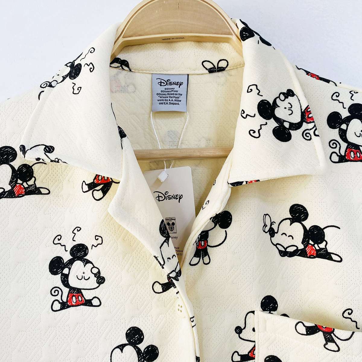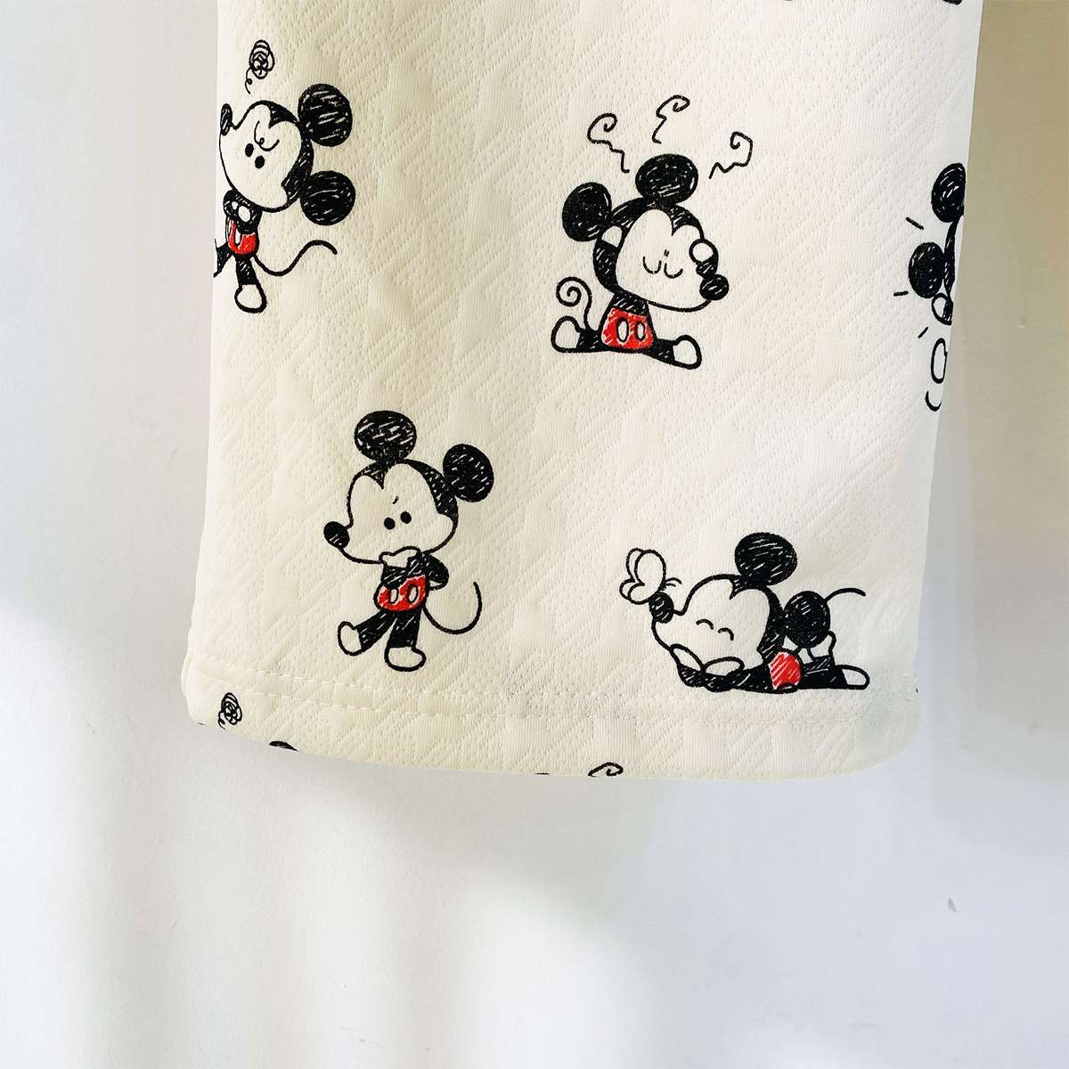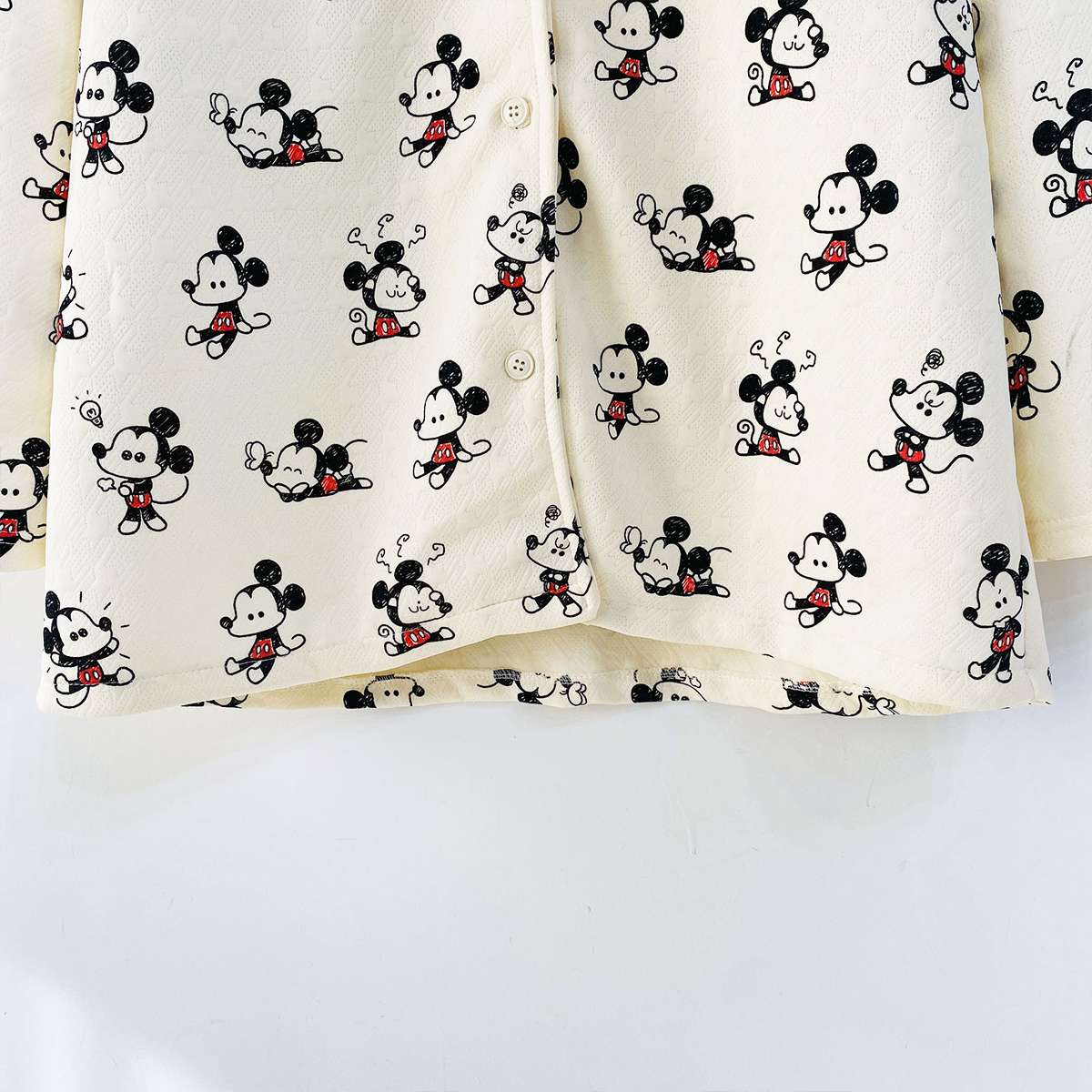 귀여운 미키마우스 캐릭터 패턴이 가득한 파자마 세트입니다.
