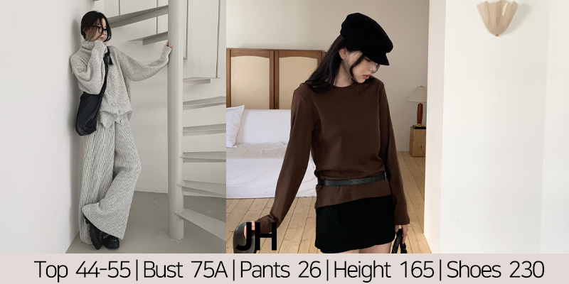 Top 44반-55 / Bust 75A / Pants 25-26 / Height 164cm / Shoes 235 size