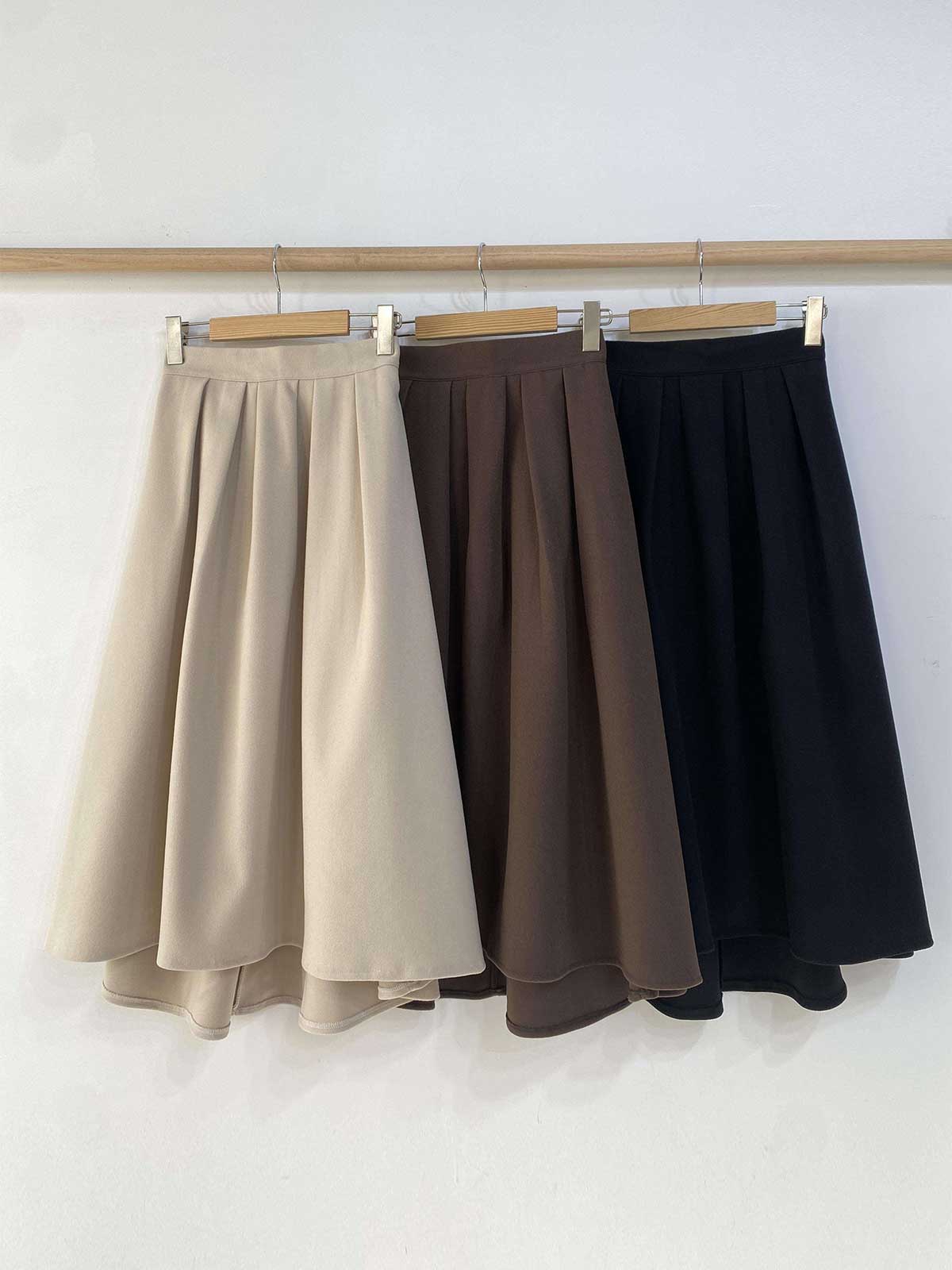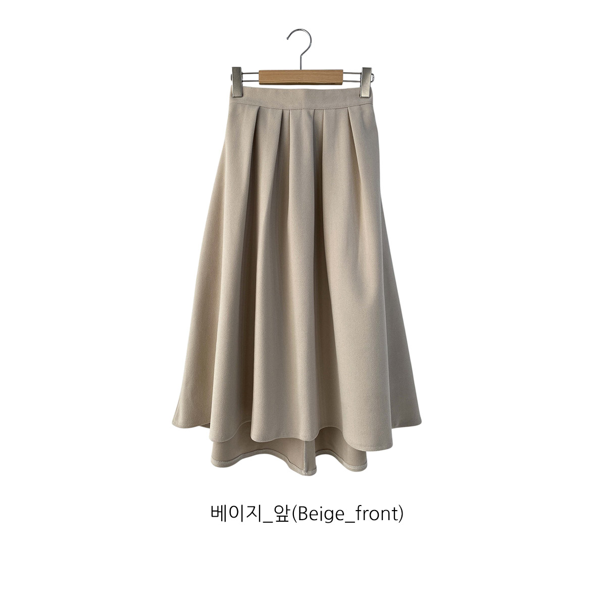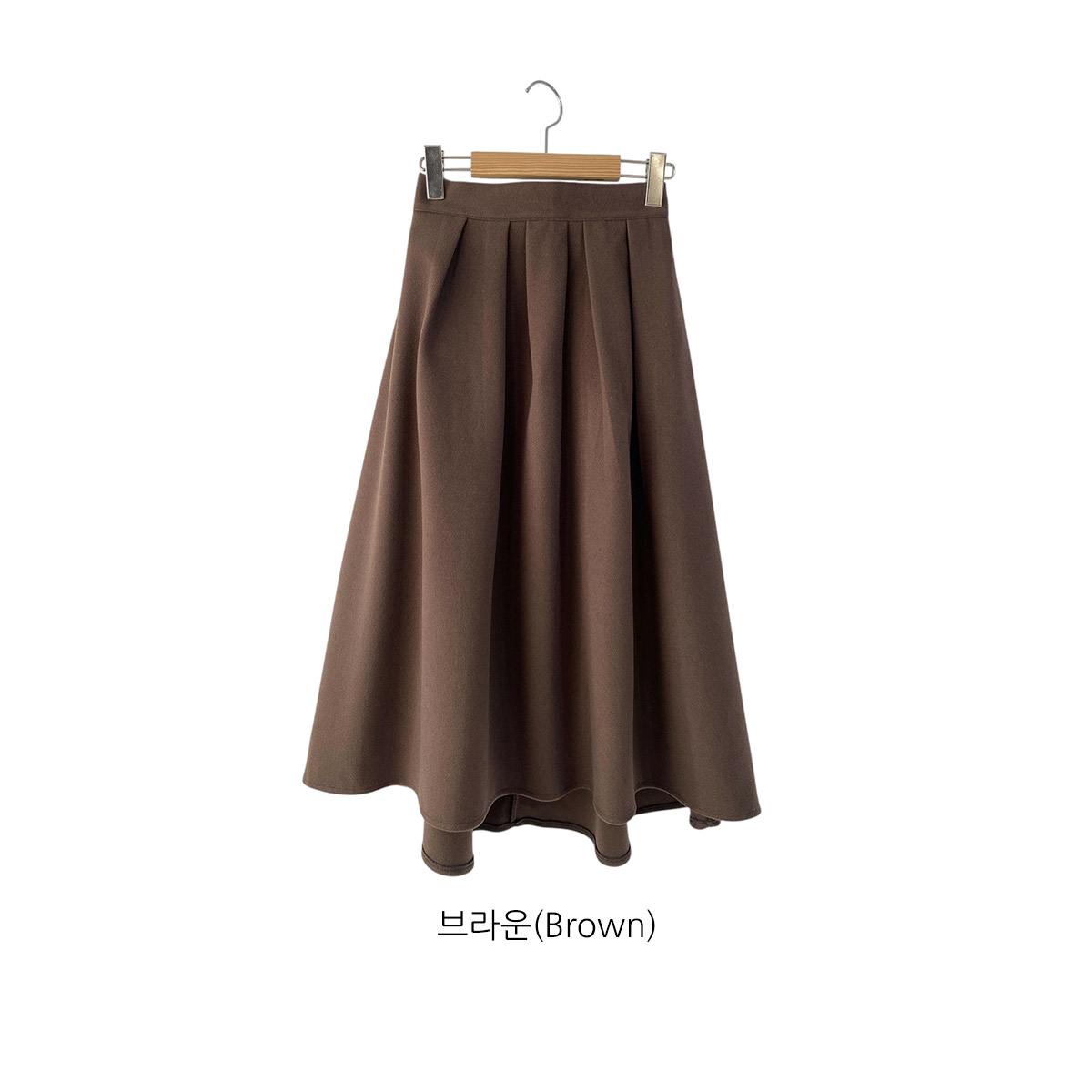 [ SK7559K5B-래리지 셔링 플레어 스웨이드 뒷밴딩 롱스커트 ]