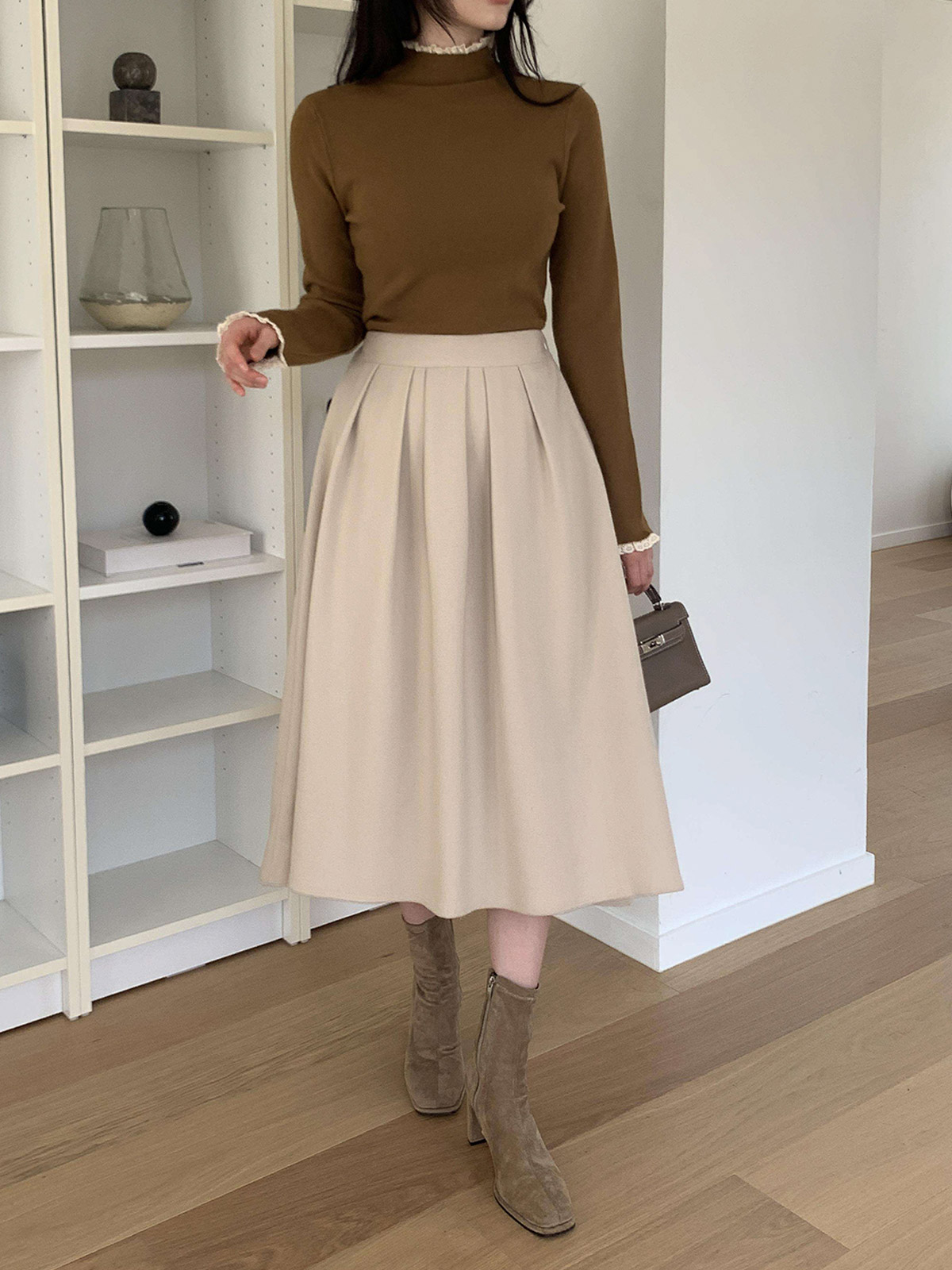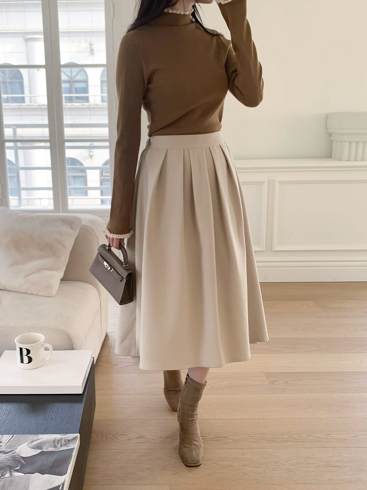 풍성하게 퍼지는 플레어 라인과 뒷밴딩 처리된