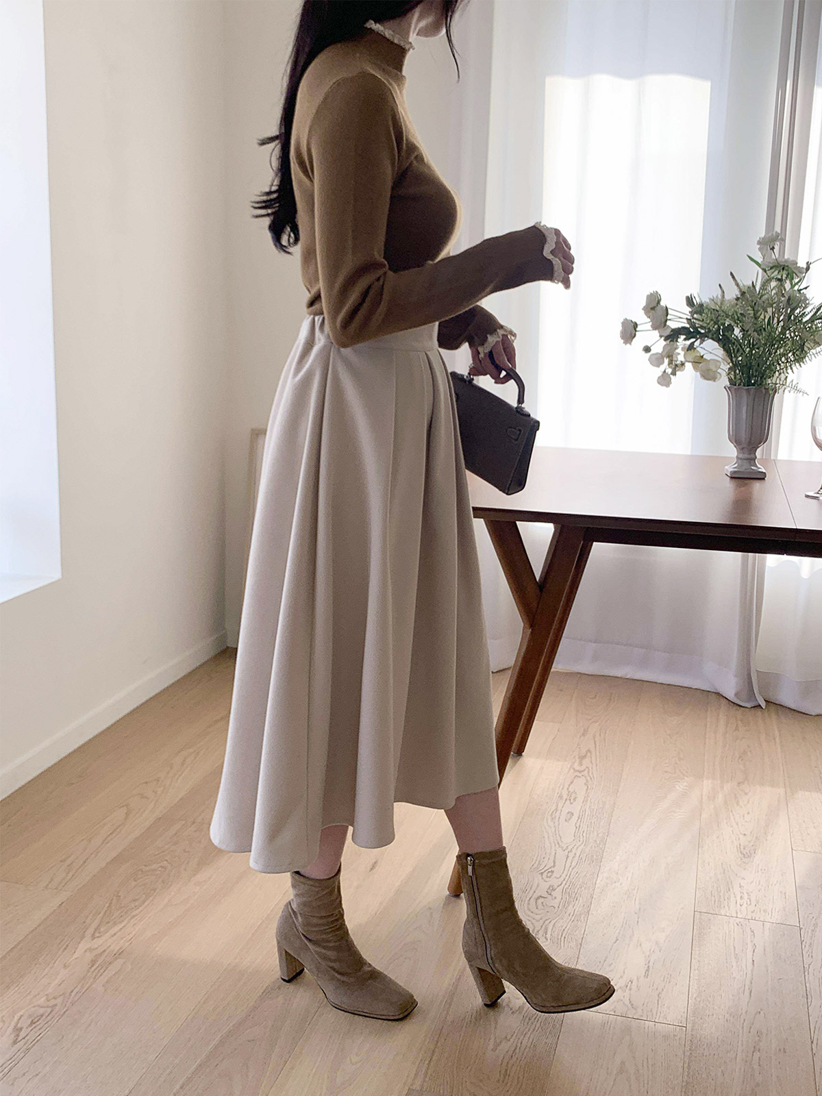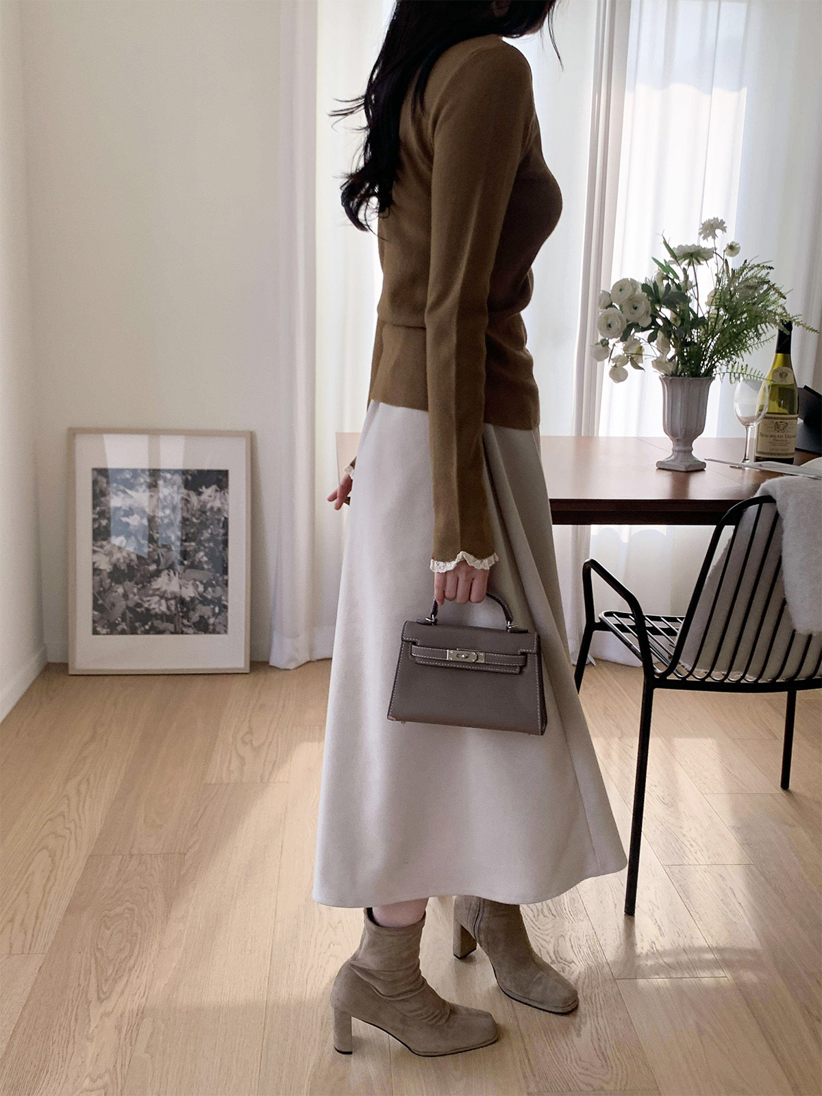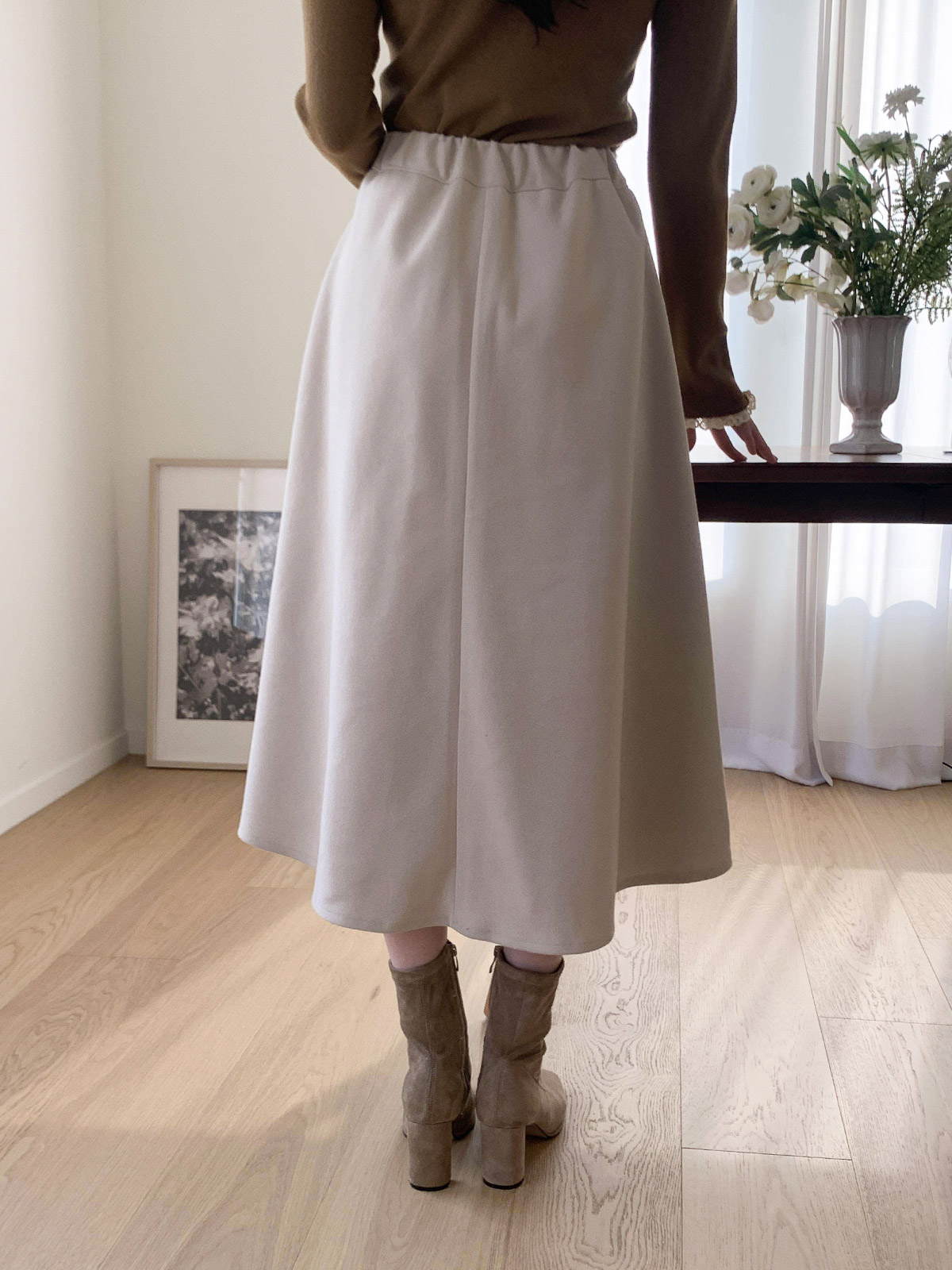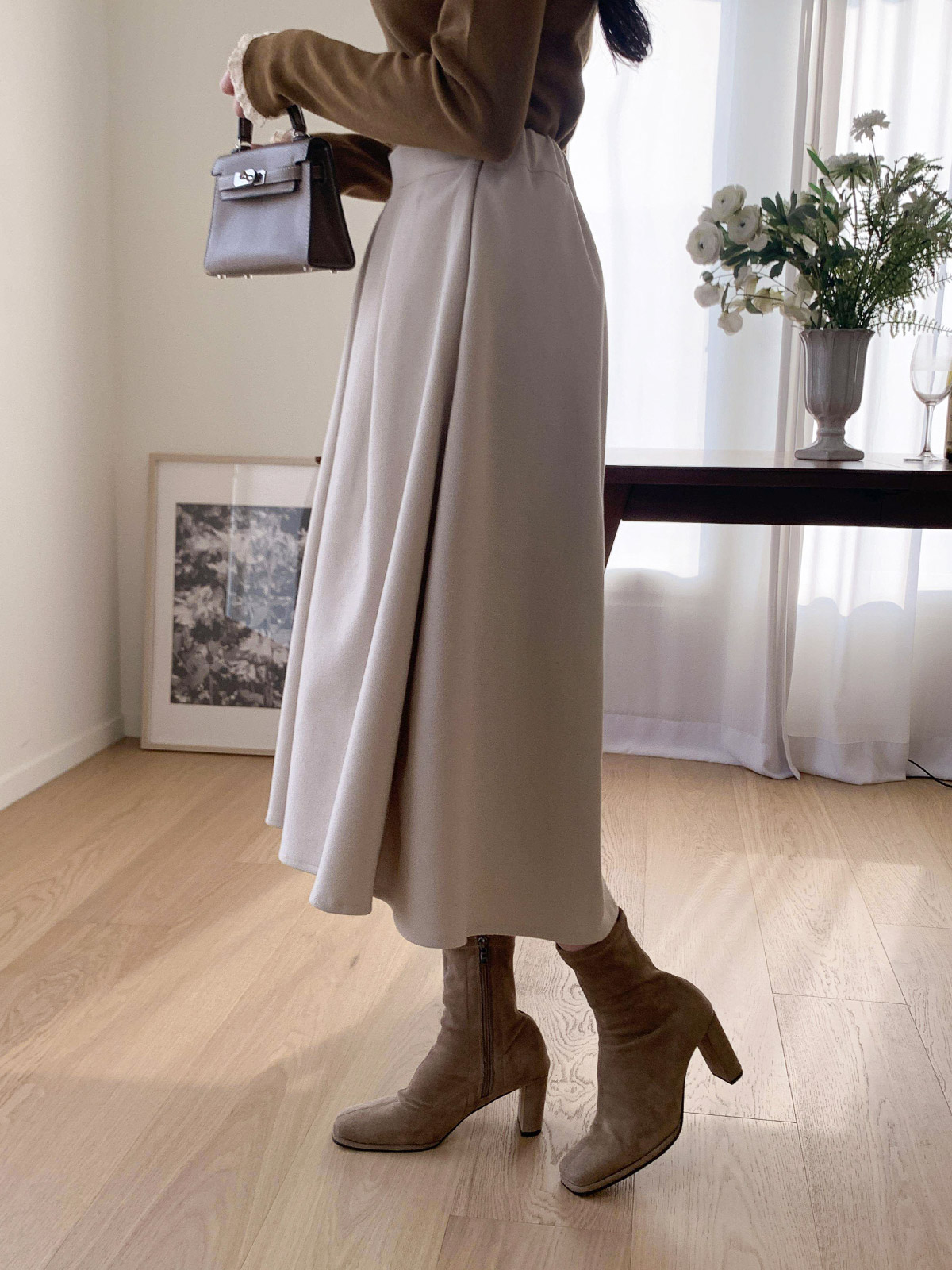 자연스럽게 퍼지는 플레어 핏의 스웨이드 스커트