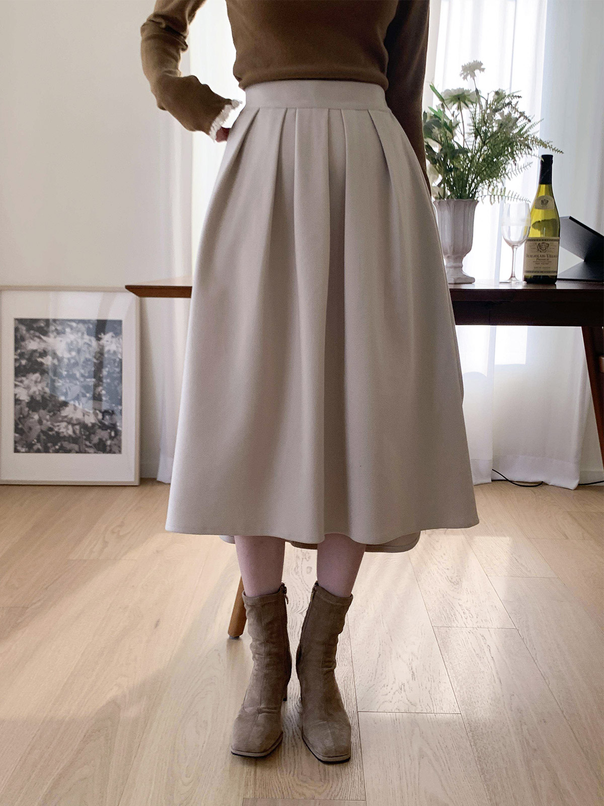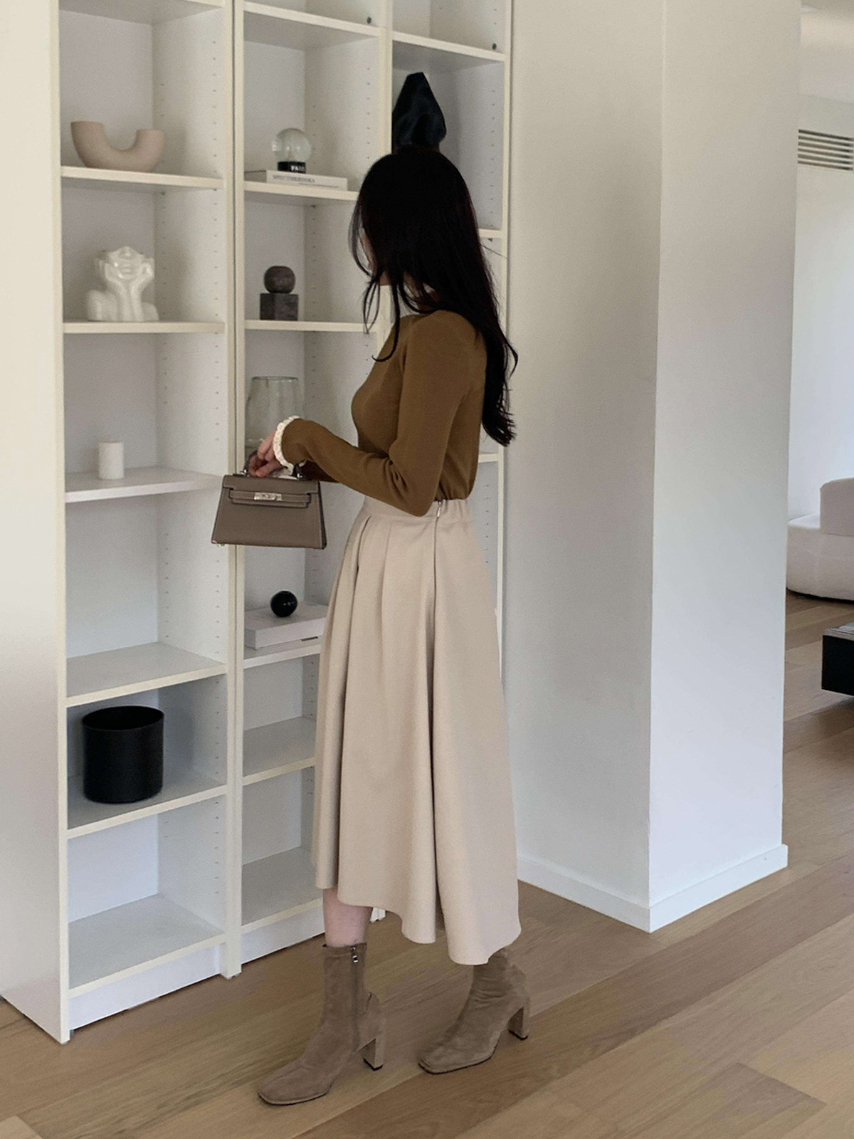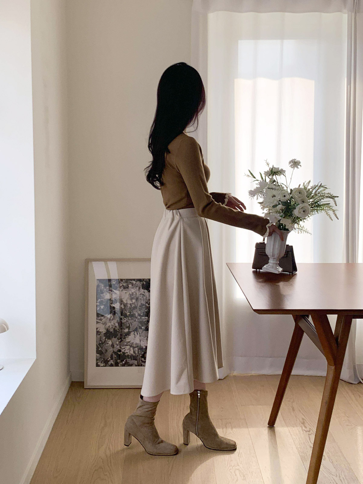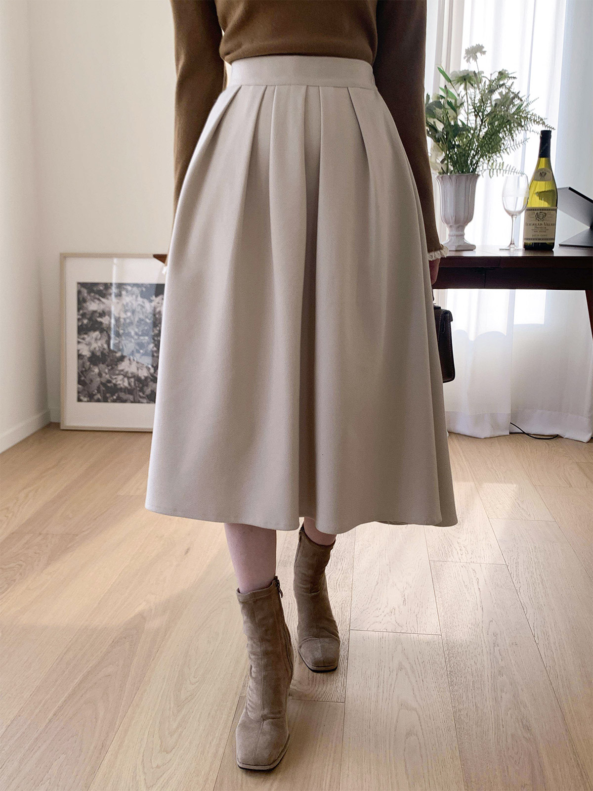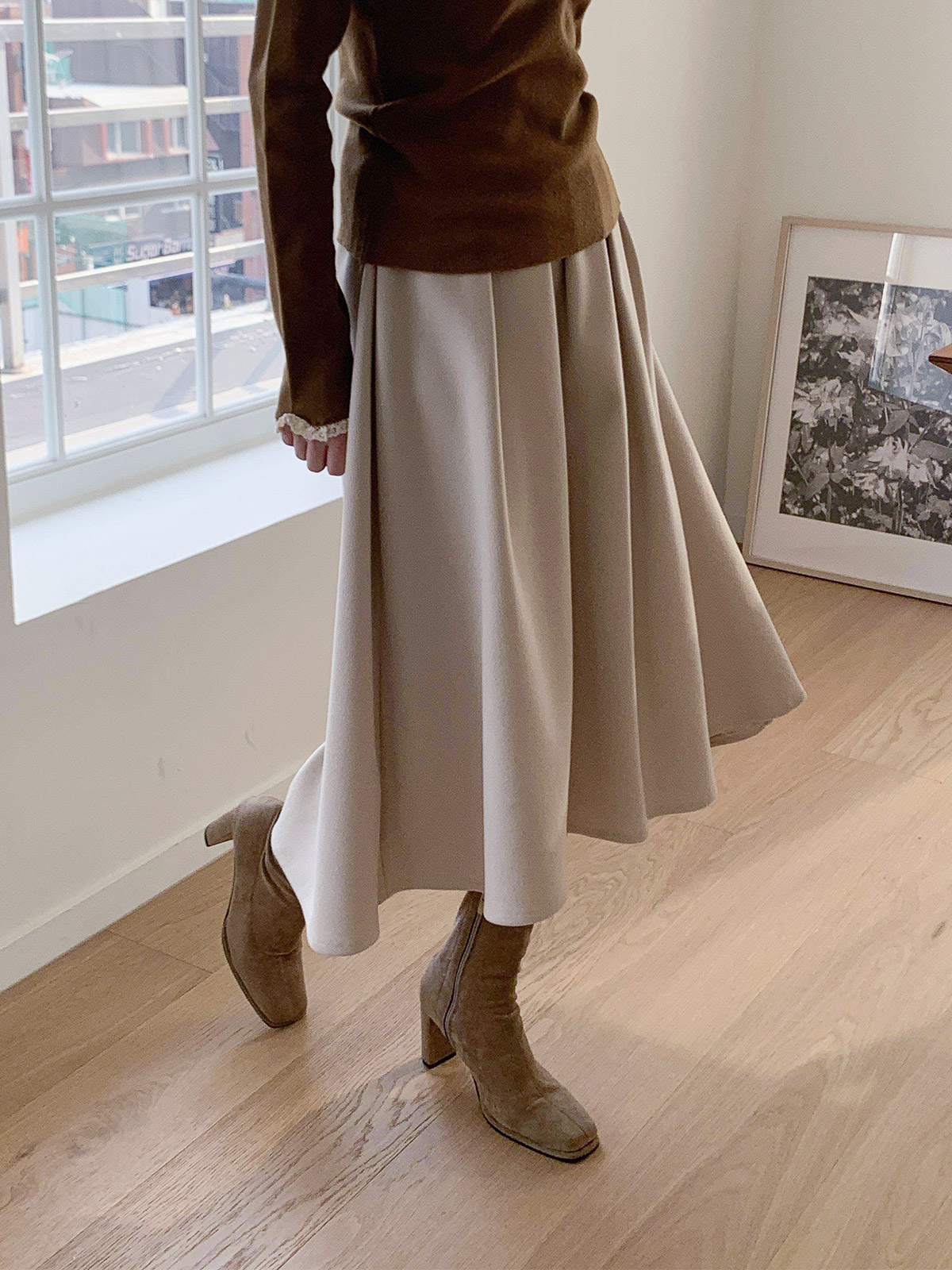 자연스럽게 퍼지는 플레어 핏의 스웨이드 스커트