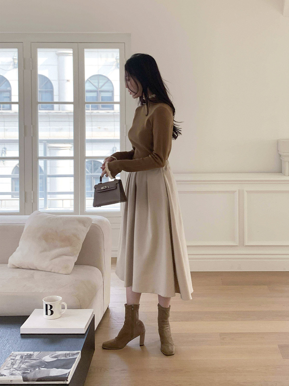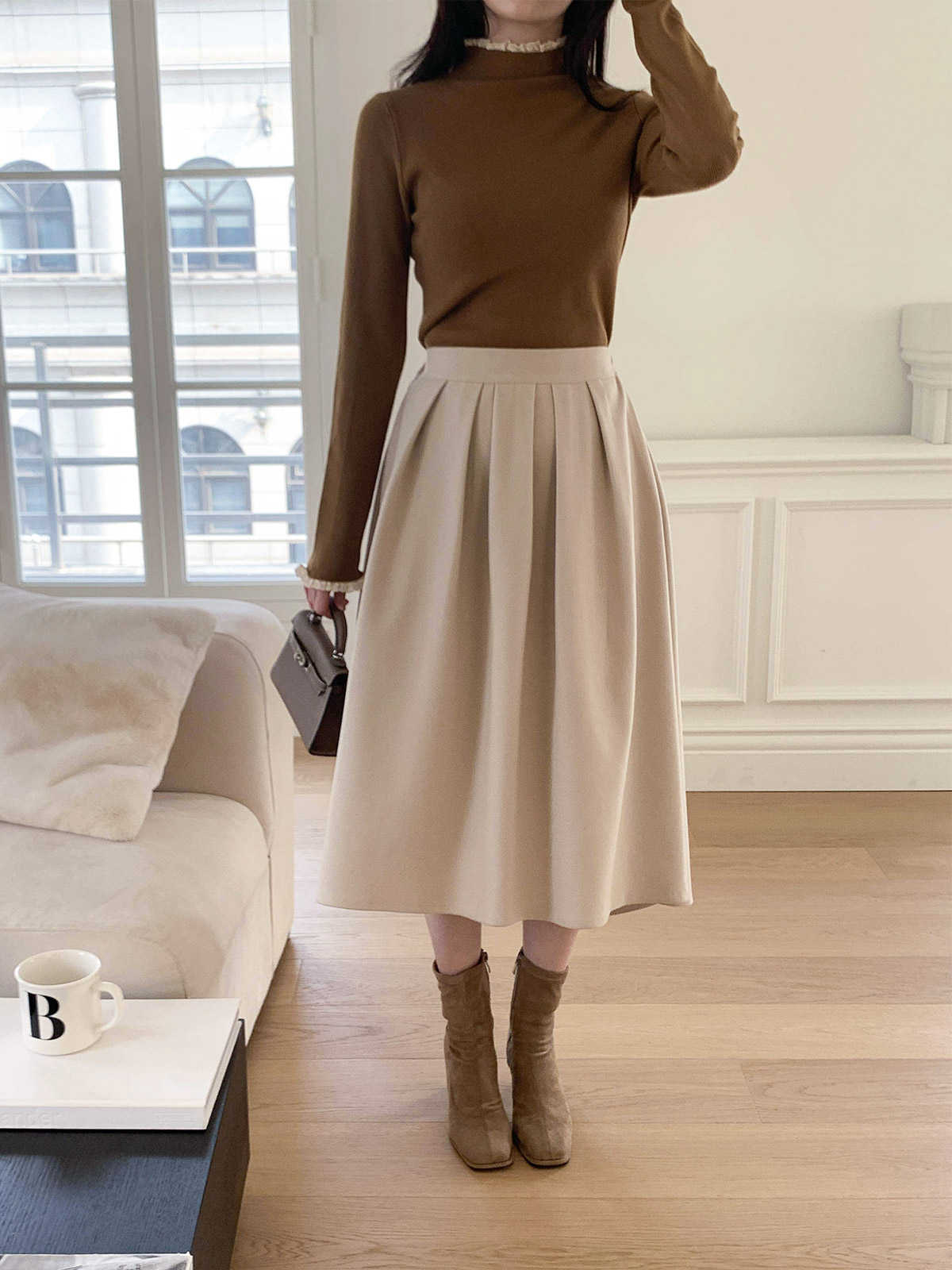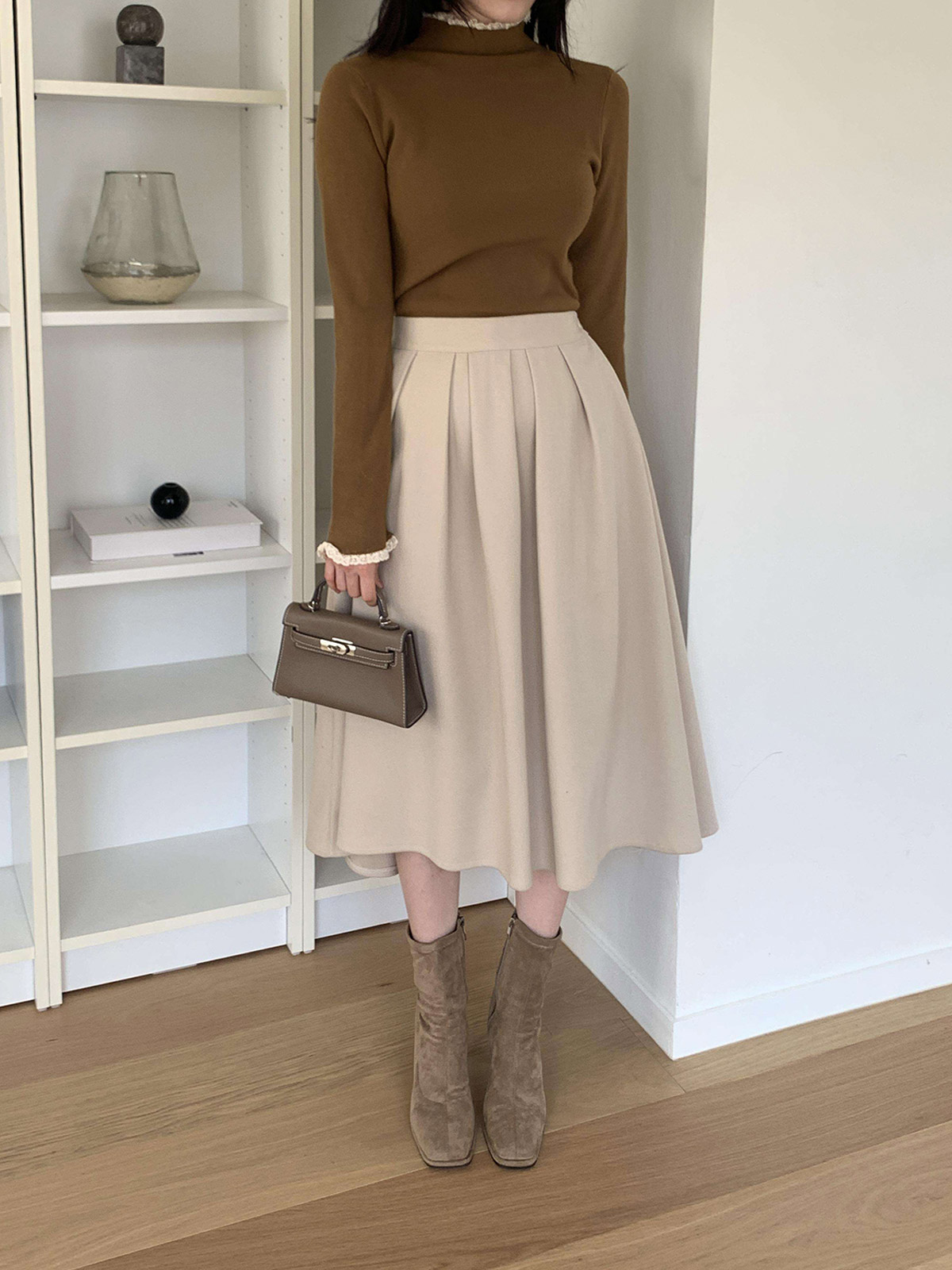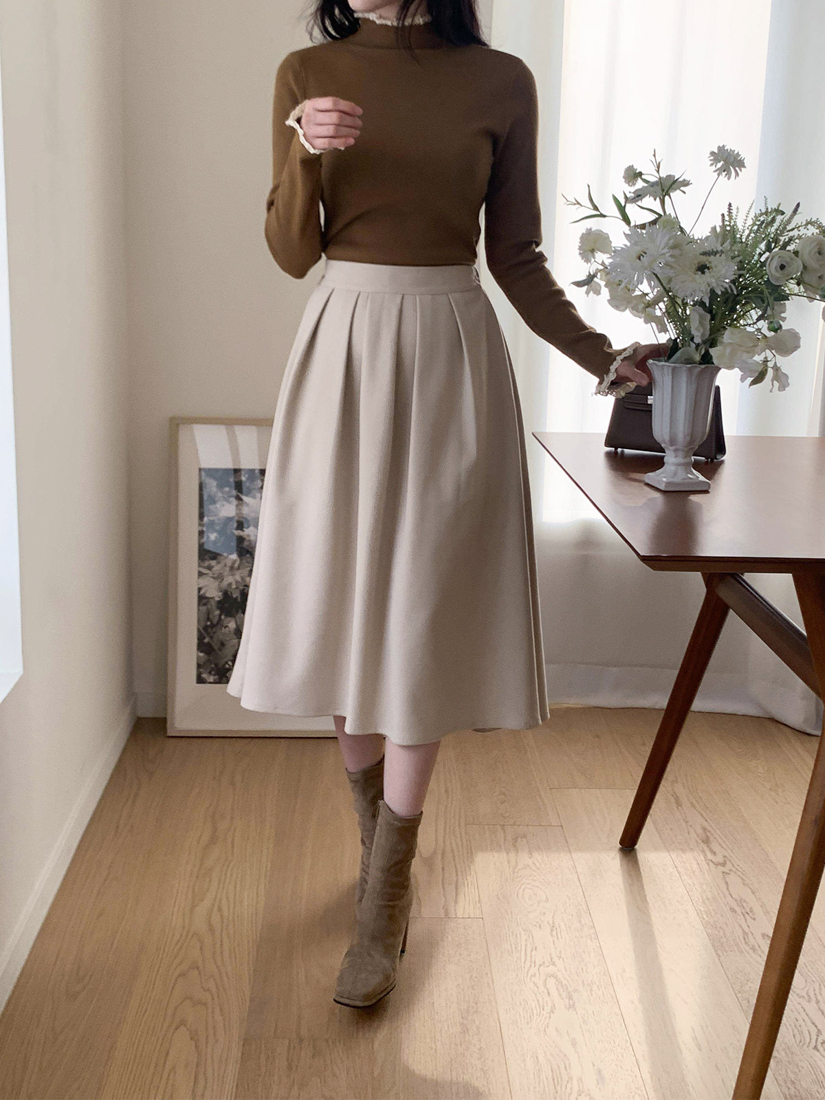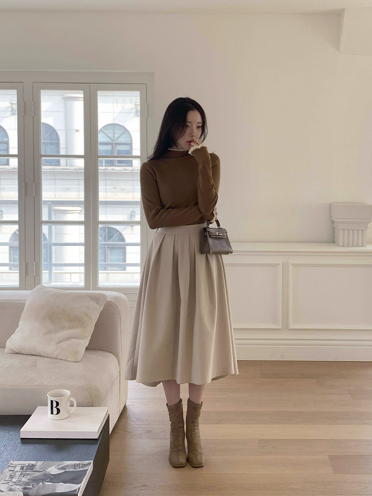 자연스럽게 퍼지는 플레어 핏의 스웨이드 스커트