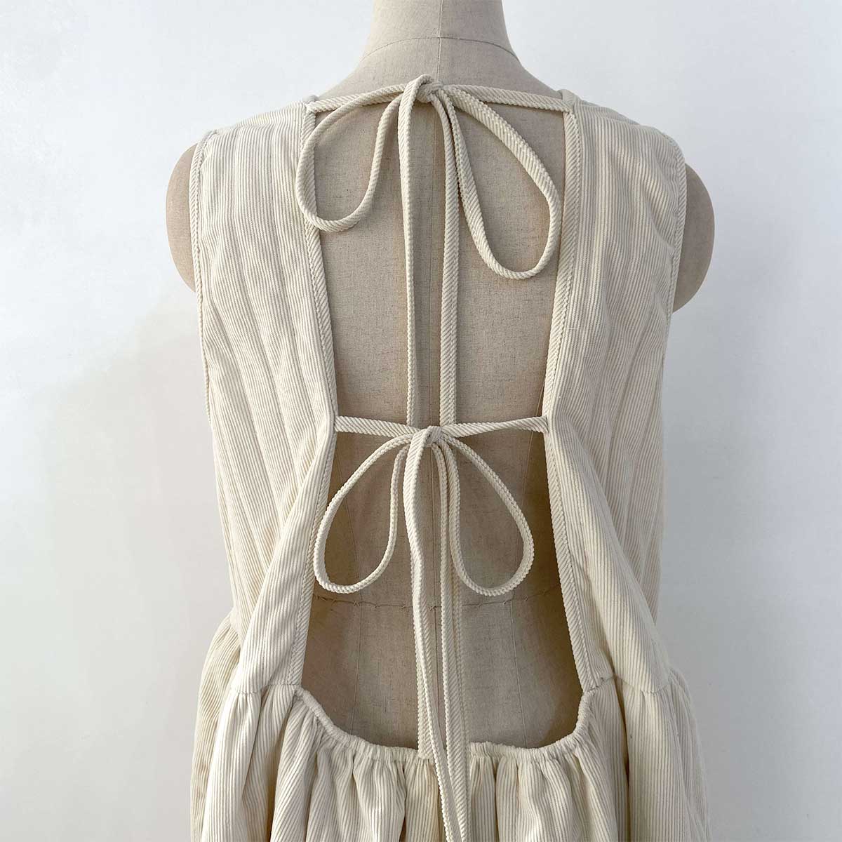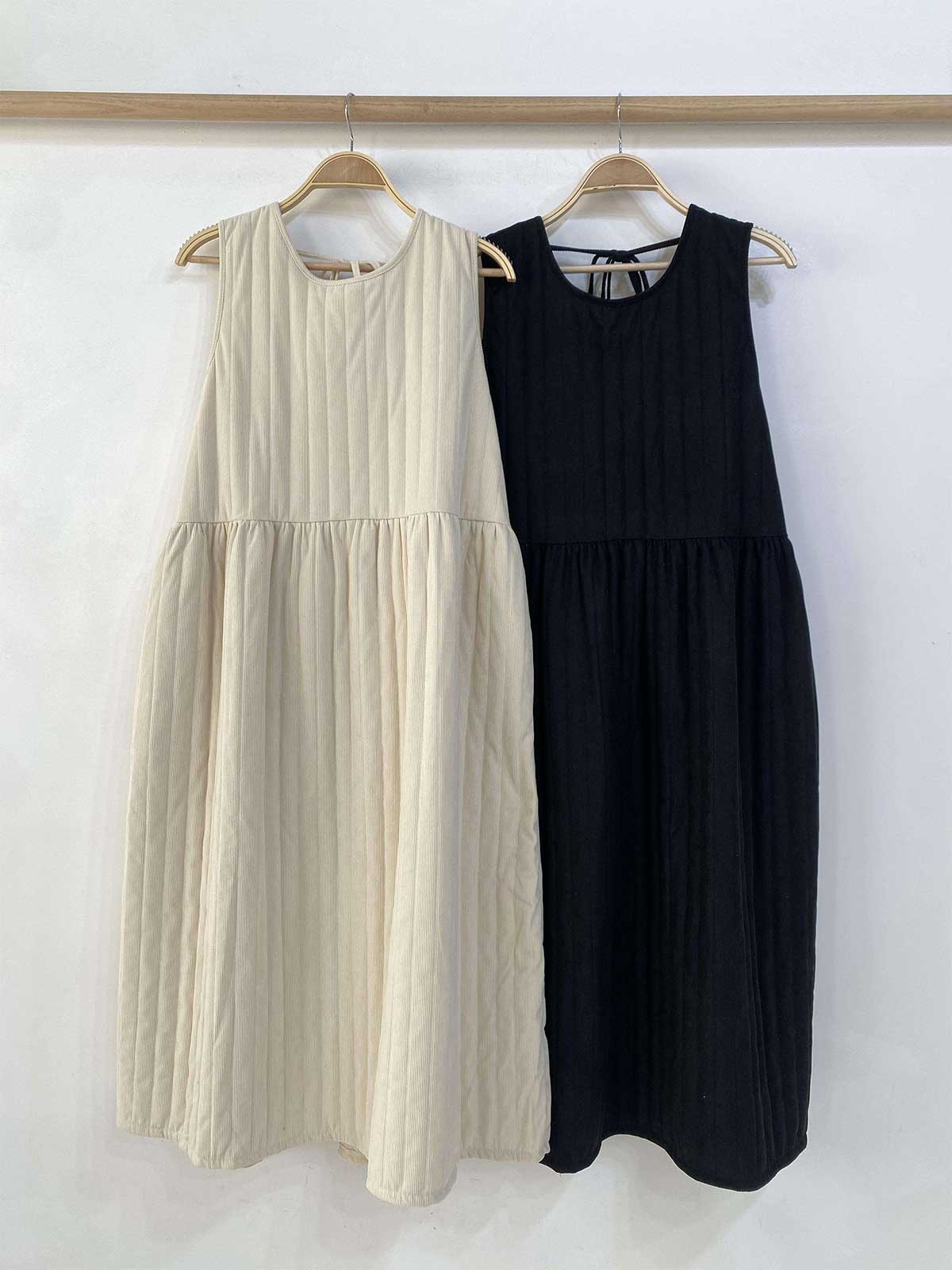 [ OPS10429K5B-쵸리지 뒷 리본 레이어드 민소매 누빔 롱 원피스 ]