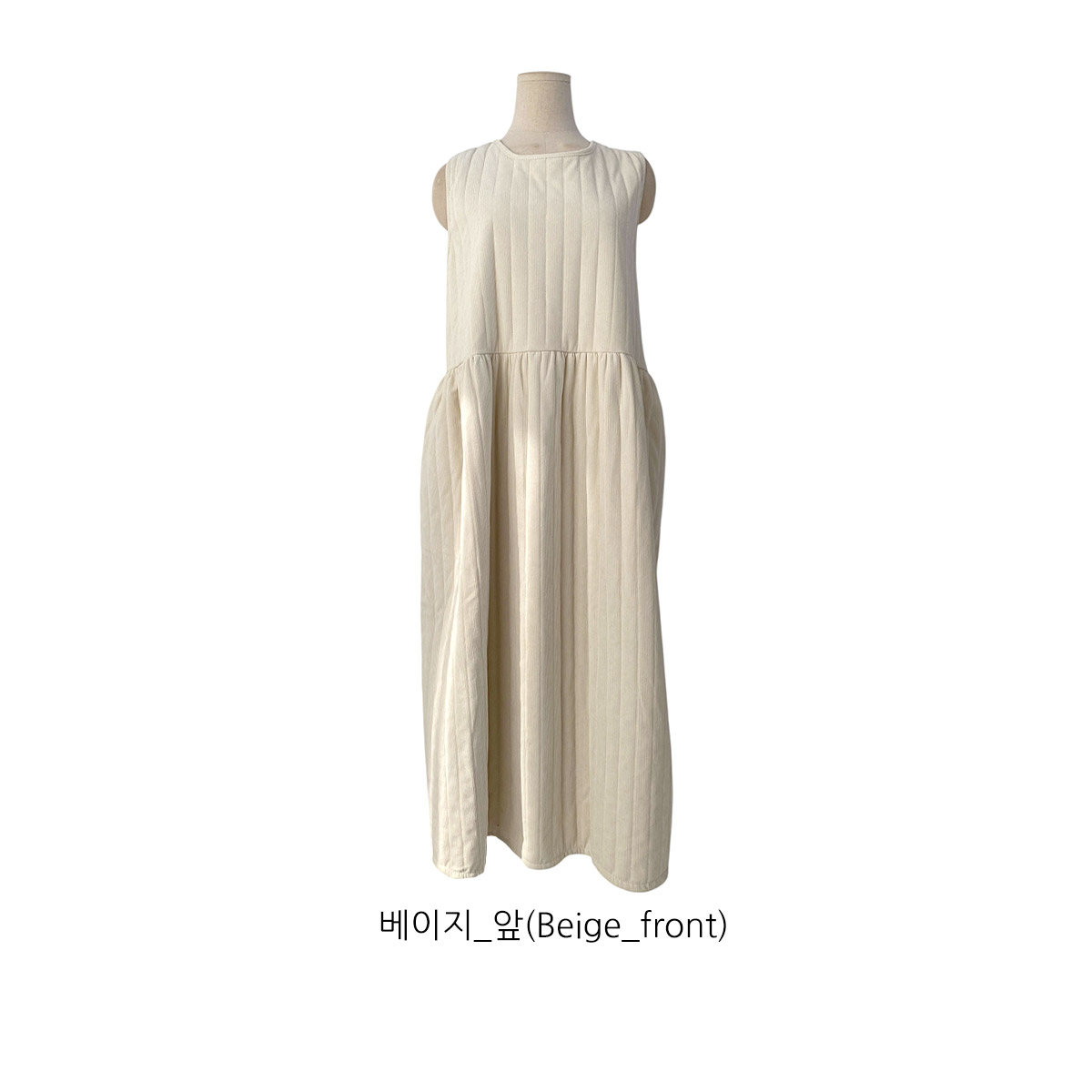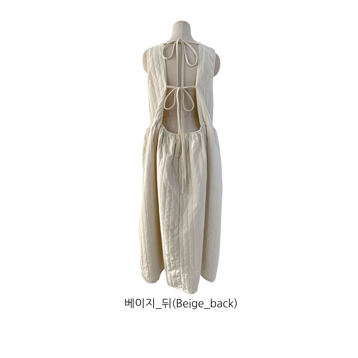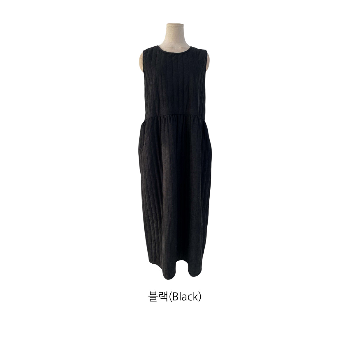 OPS10429K5B-쵸리지 뒷 리본 레이어드 민소매 누빔 롱 원피스