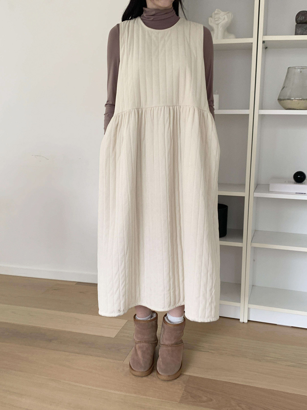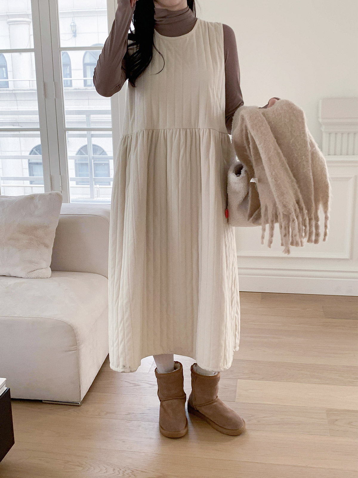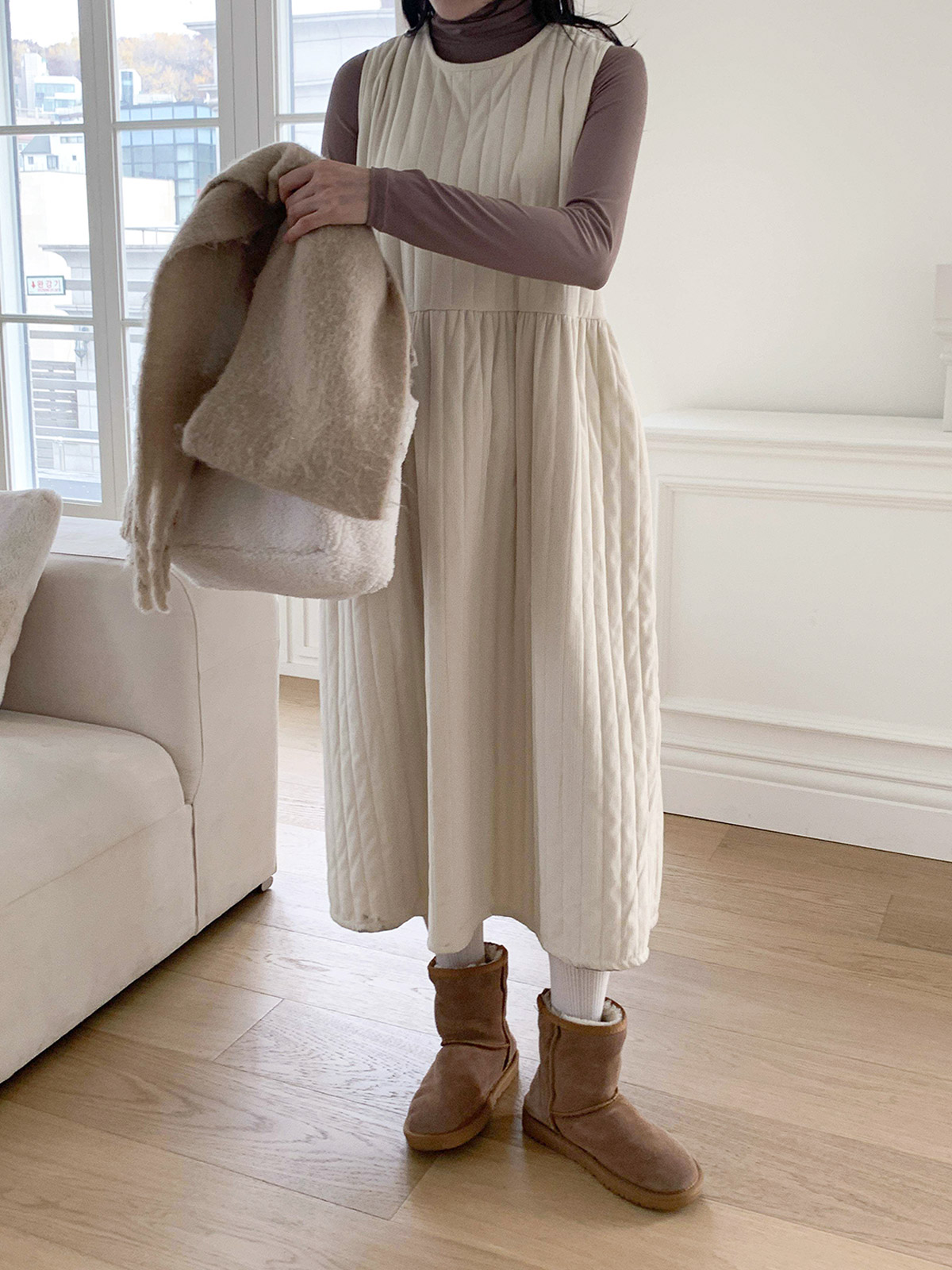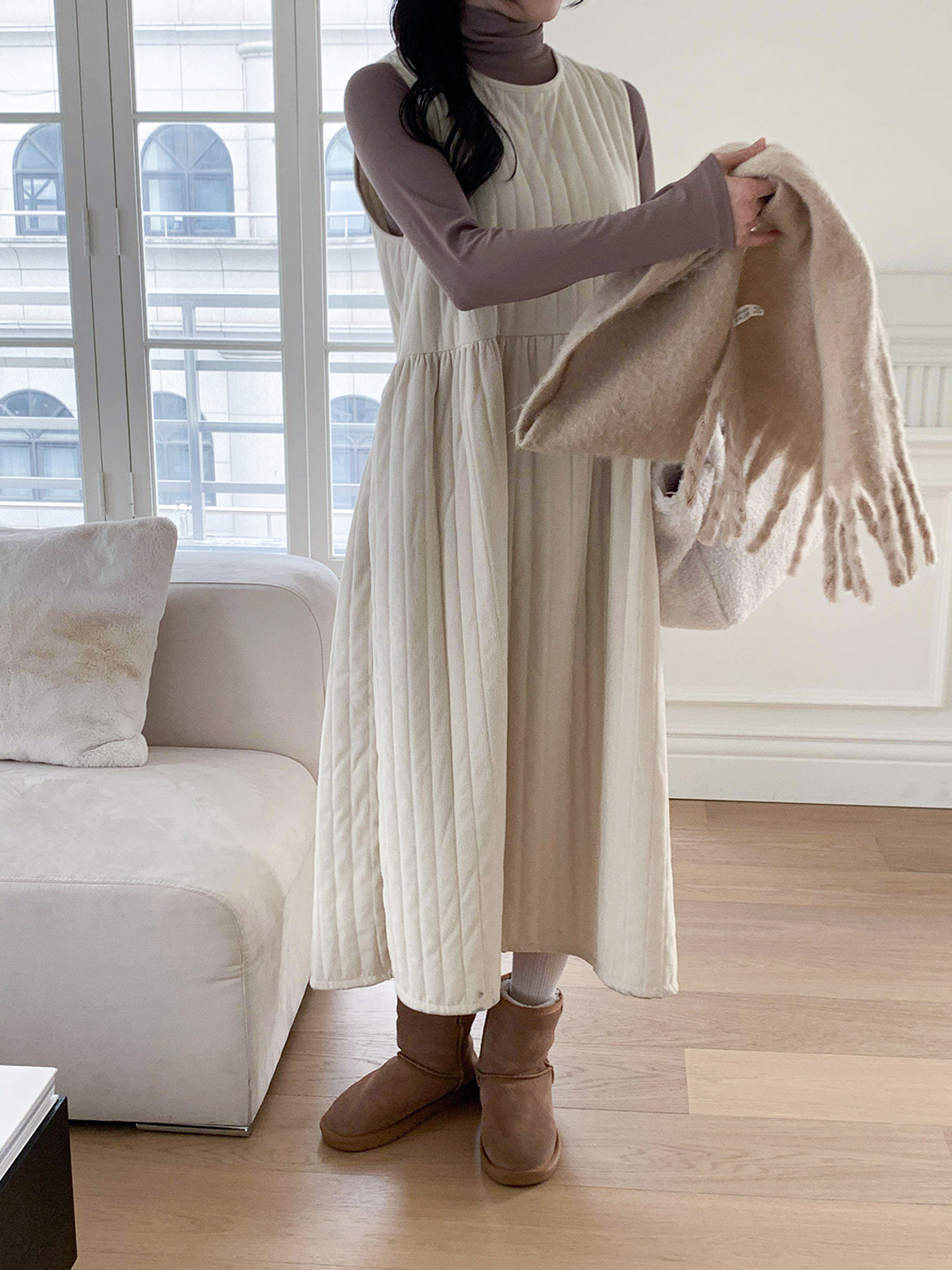 다양한 상의와 레이어드하기 좋은 누빔 롱원피스