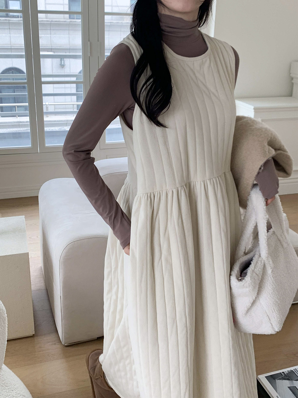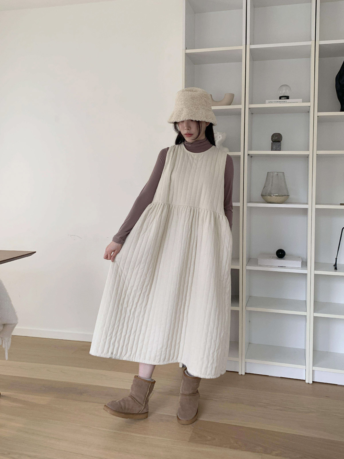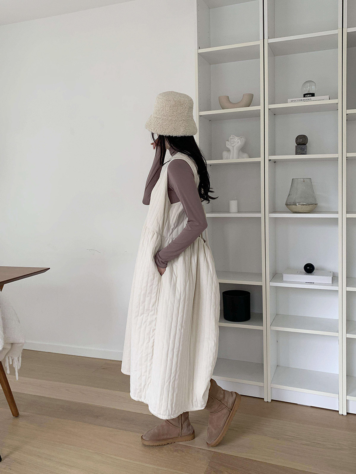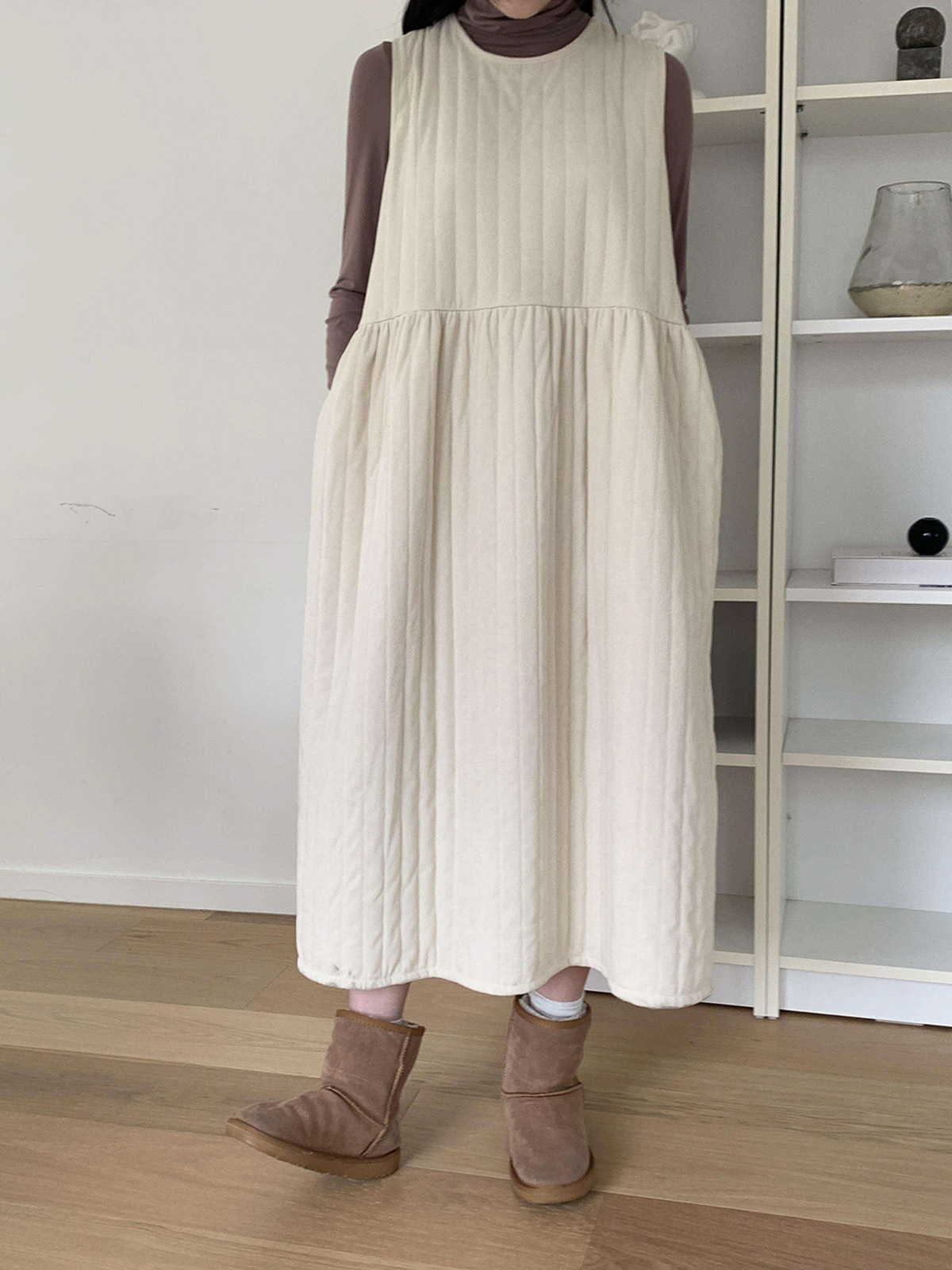 다양한 상의와 레이어드하기 좋은 누빔 롱원피스