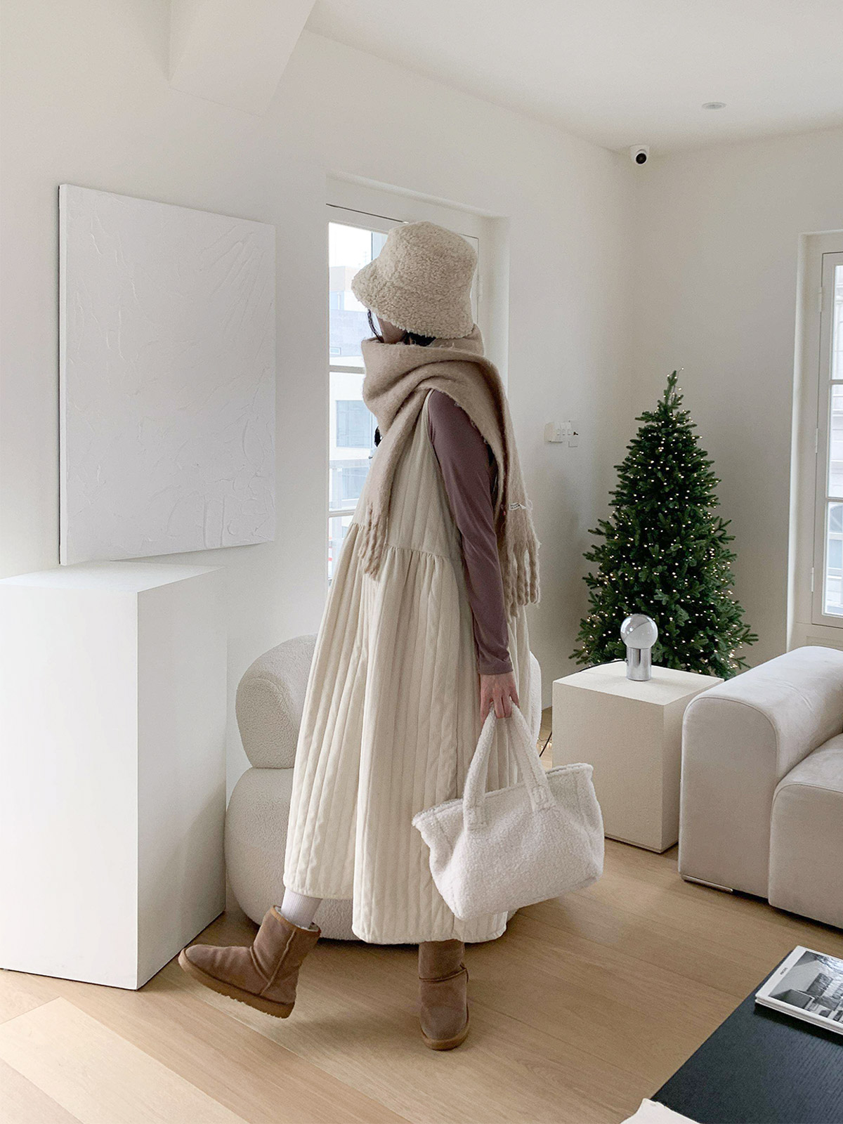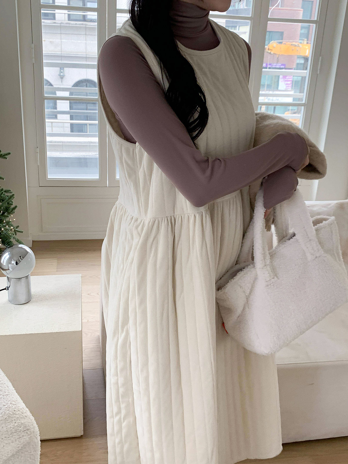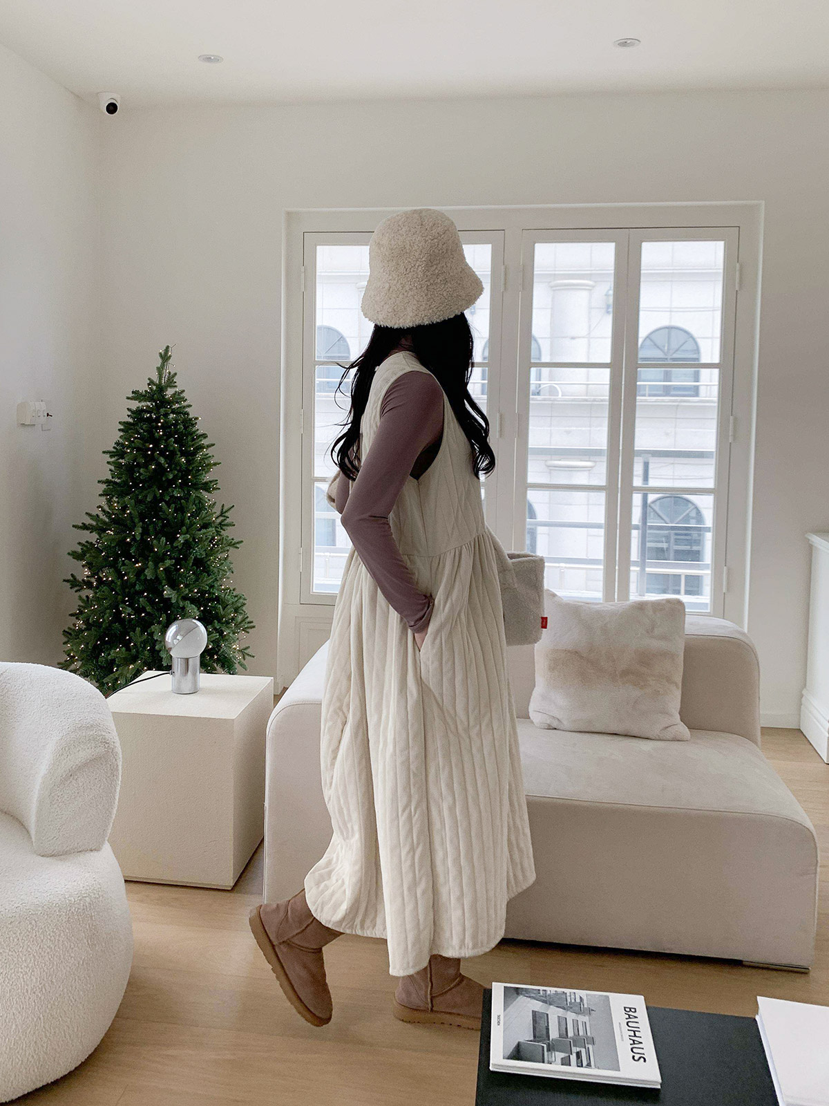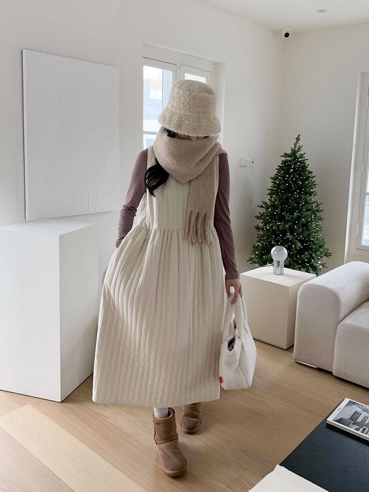 다양한 상의와 레이어드하기 좋은 누빔 롱원피스