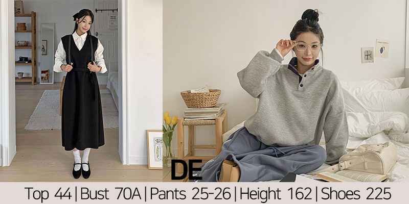 Top 44 / Bust 70A / Pants 25-26 / Height 162cm / Shoes 225 size