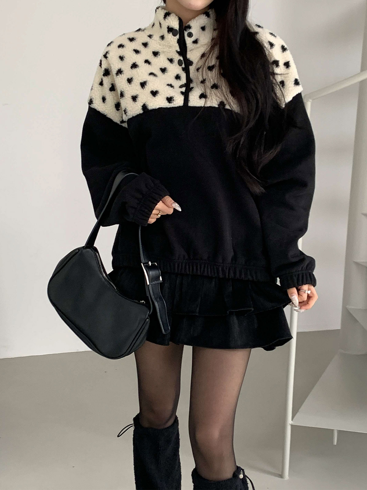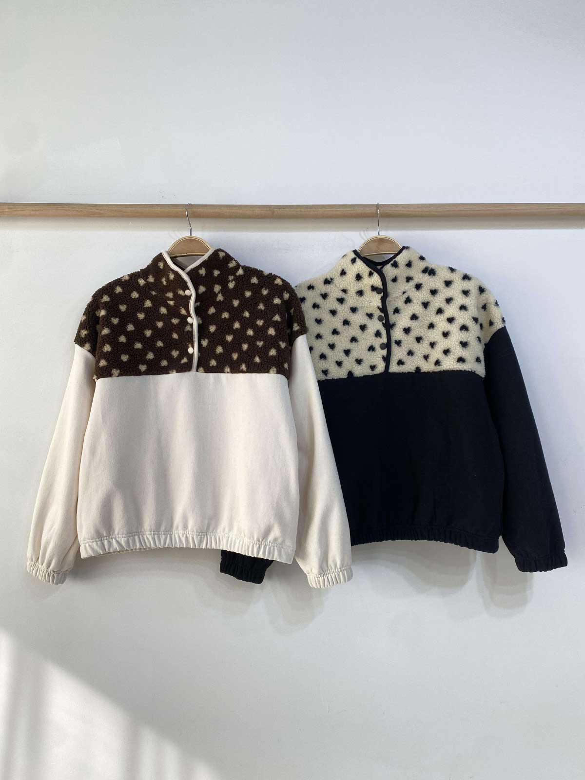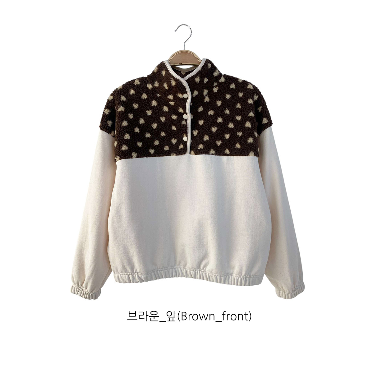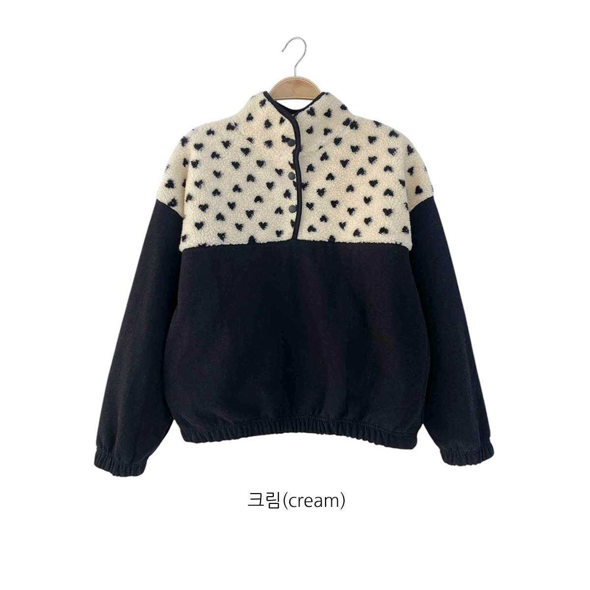 [ T17347K5B-프루니 배색 하트 오버핏 덤블 뽀글이 맨투맨 ]
