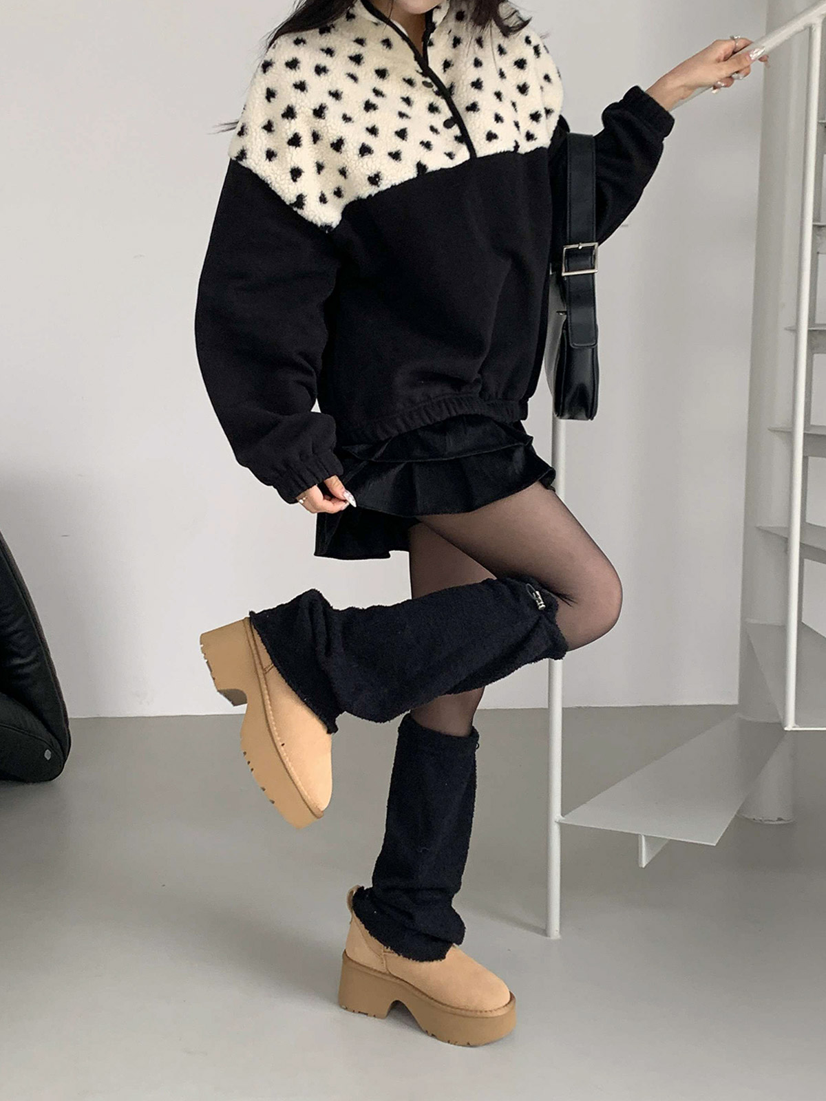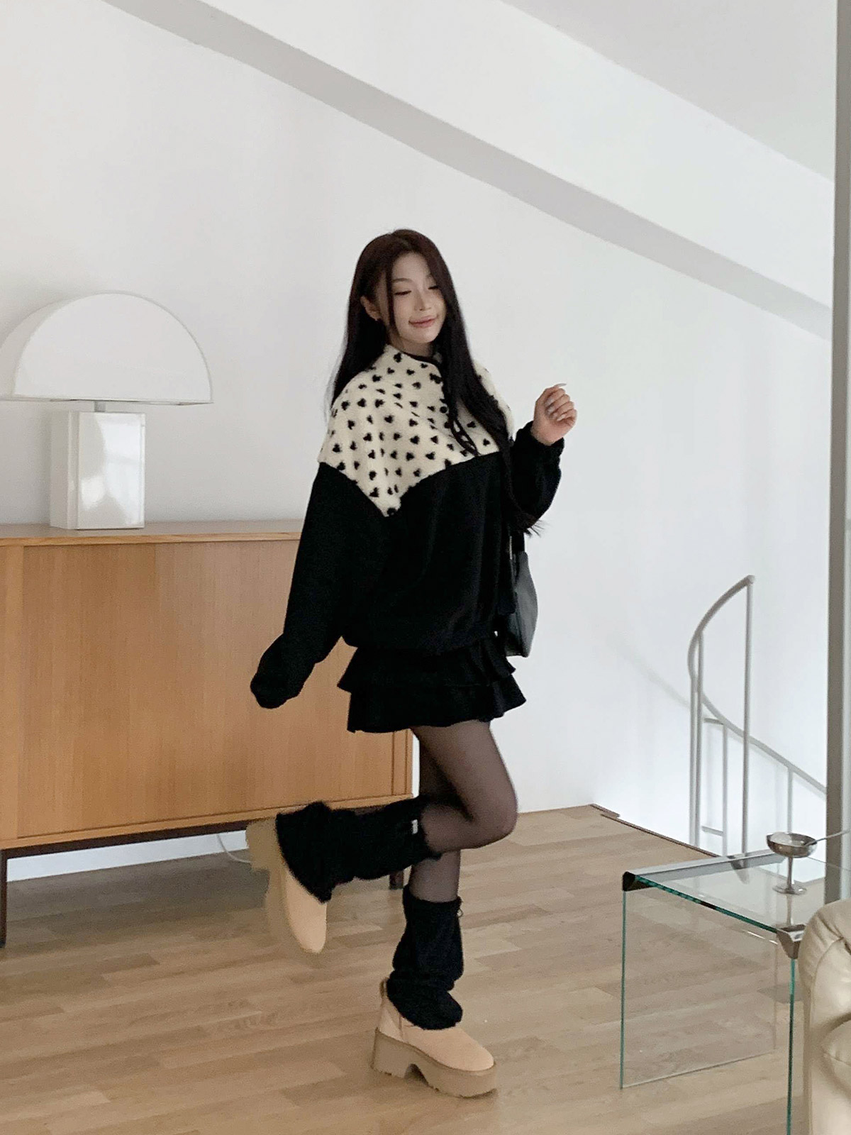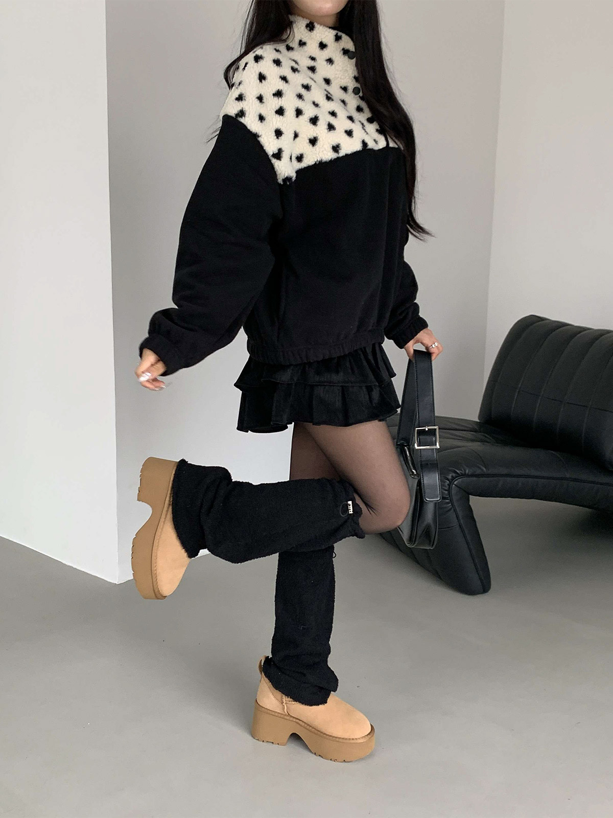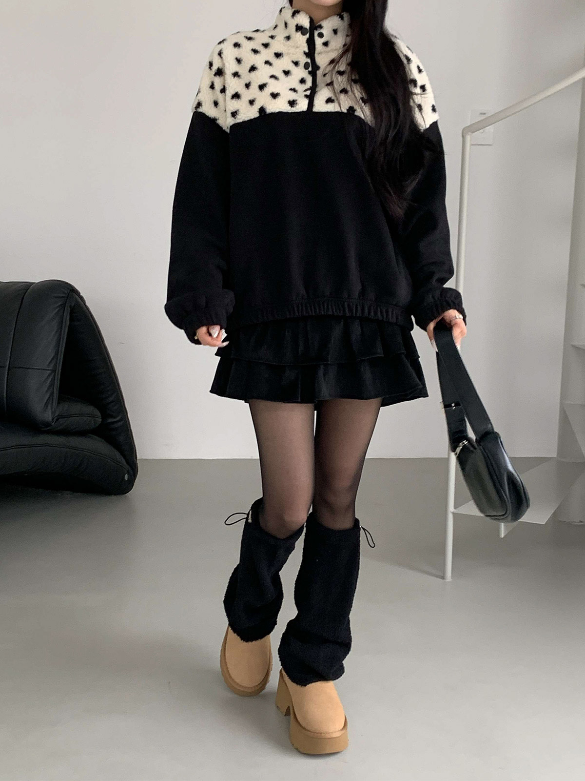 [ T17347K5B-프루니 배색 하트 오버핏 덤블 뽀글이 맨투맨 ]