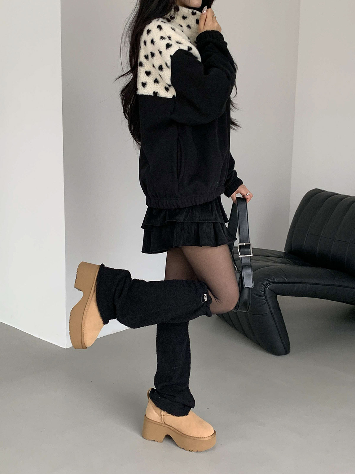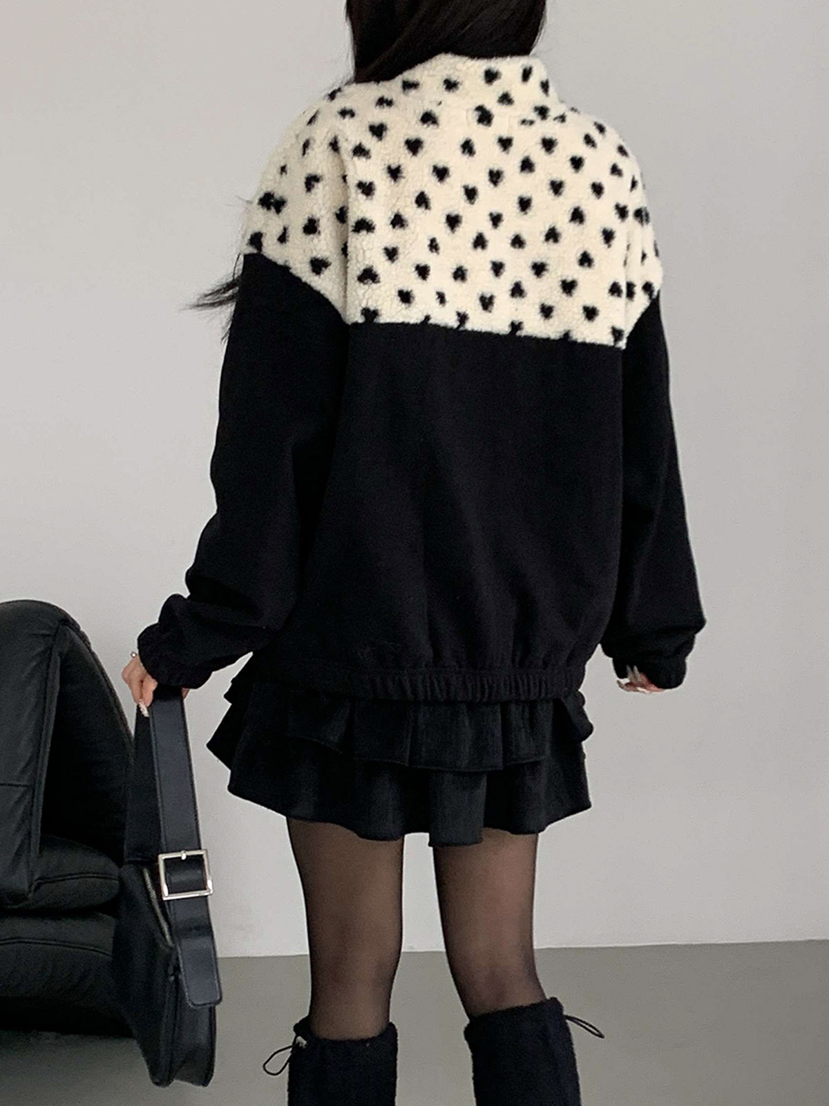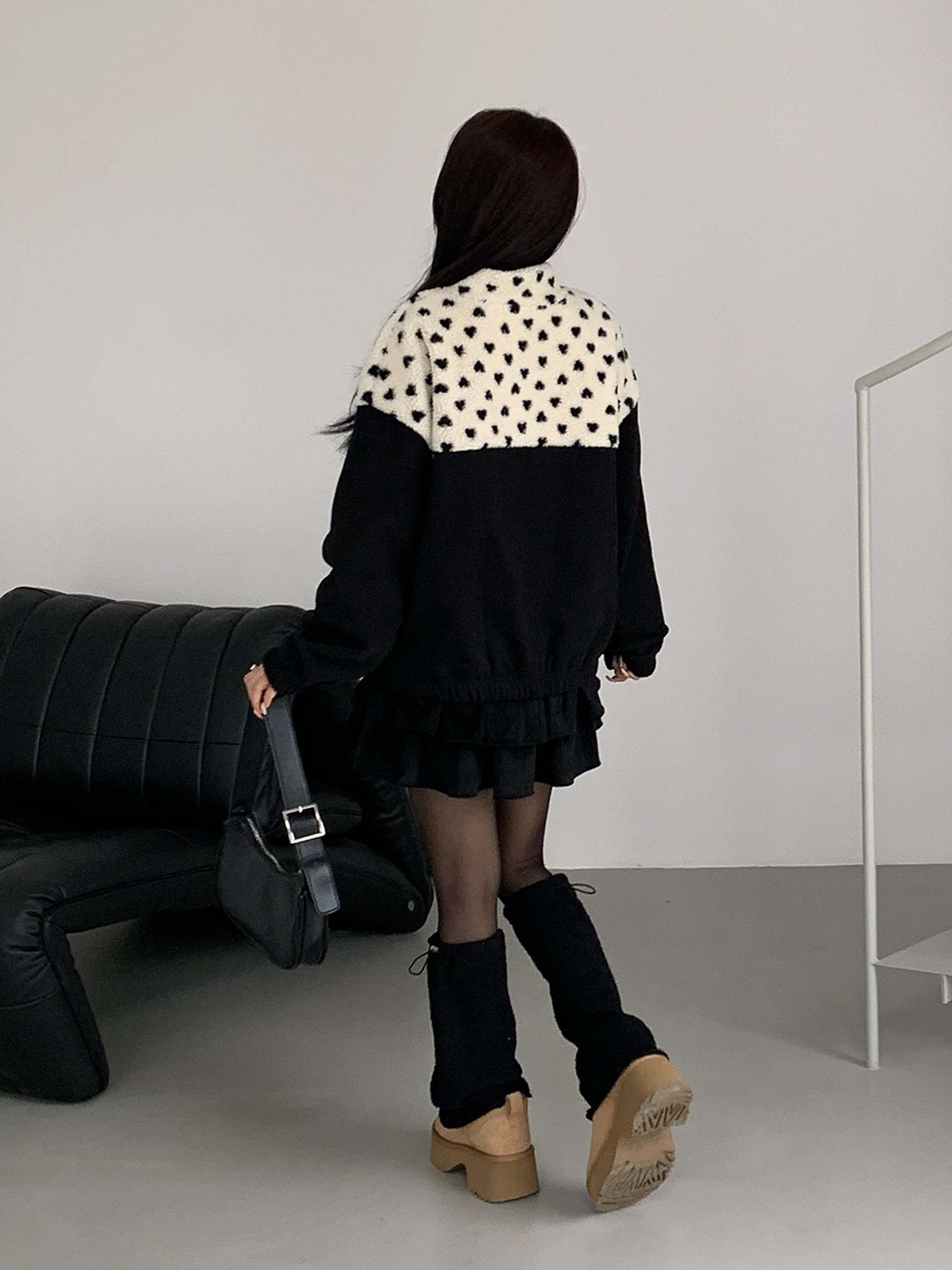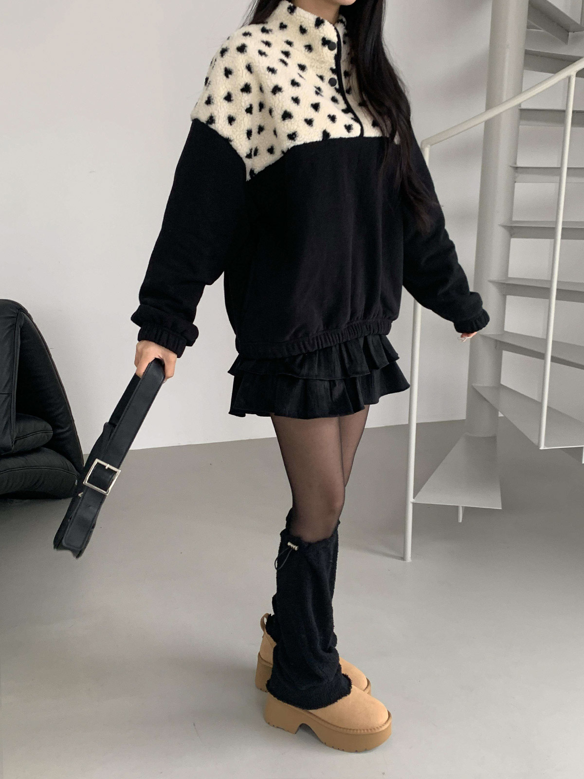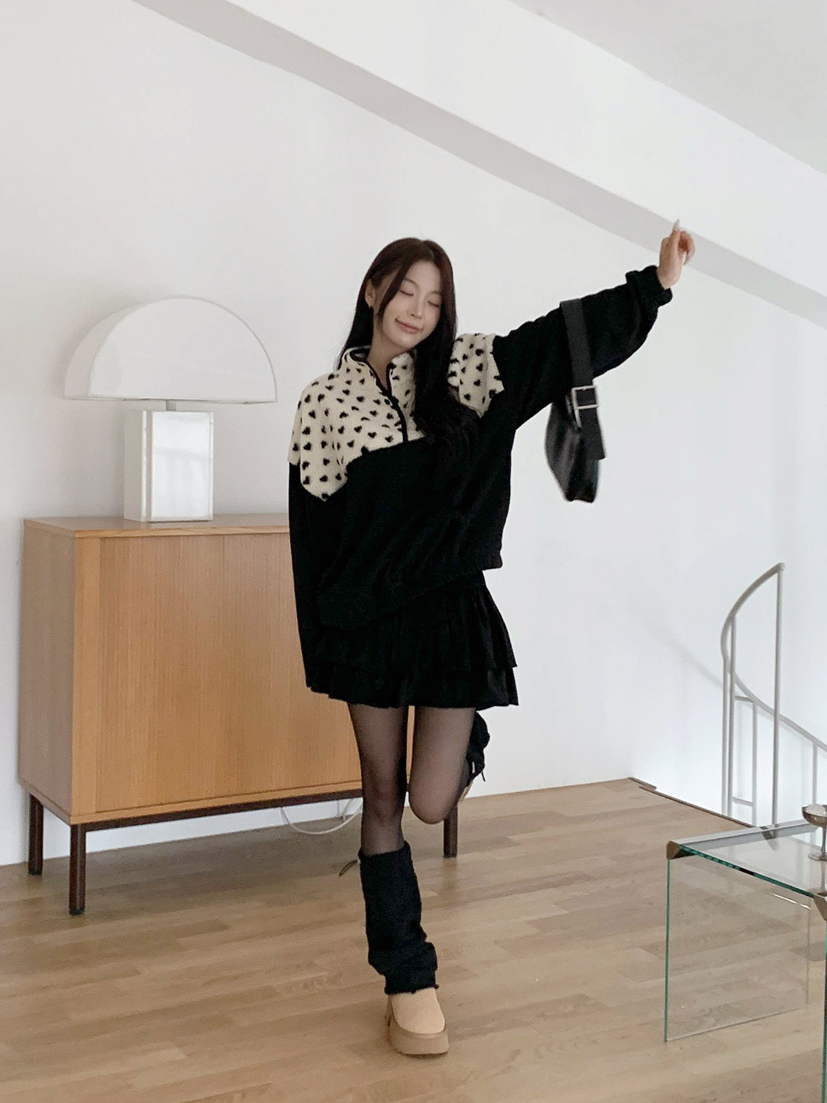 [ T17347K5B-프루니 배색 하트 오버핏 덤블 뽀글이 맨투맨 ]