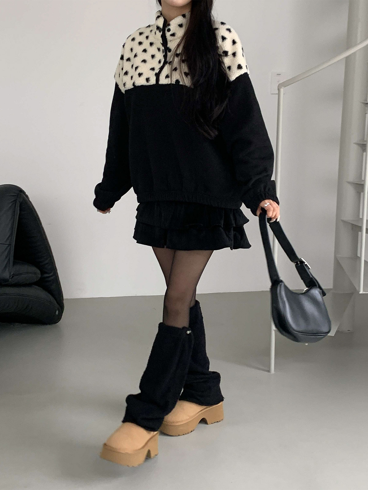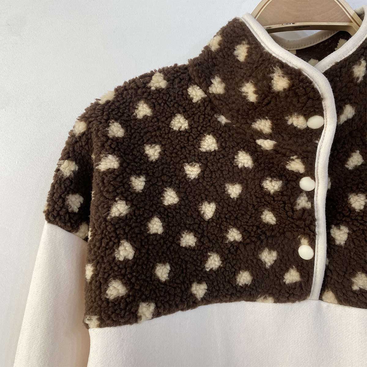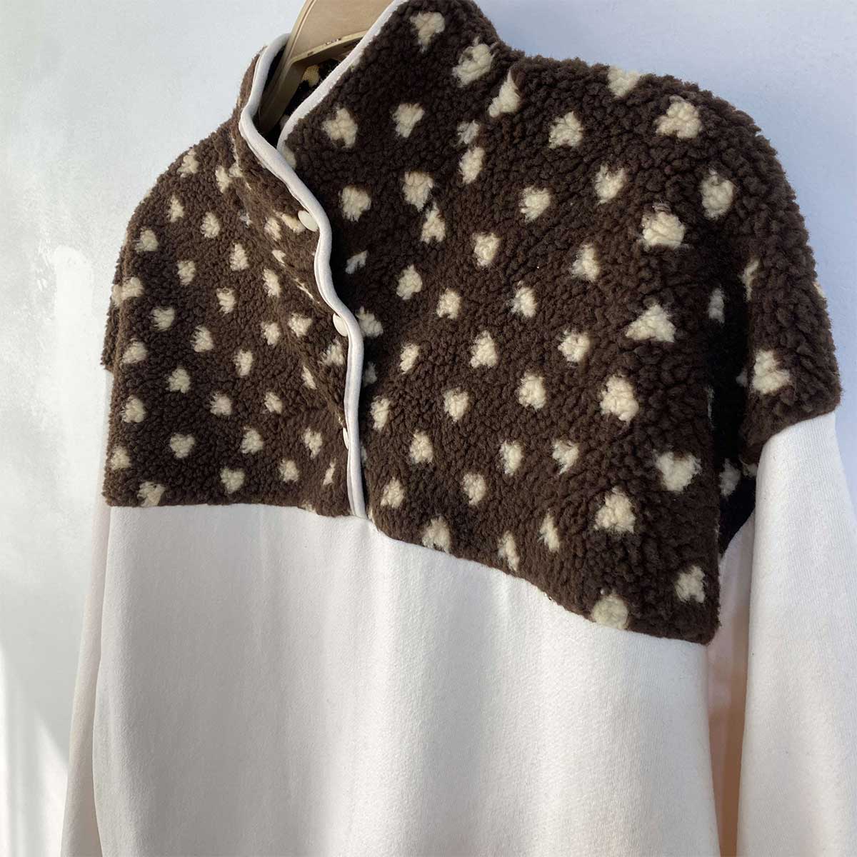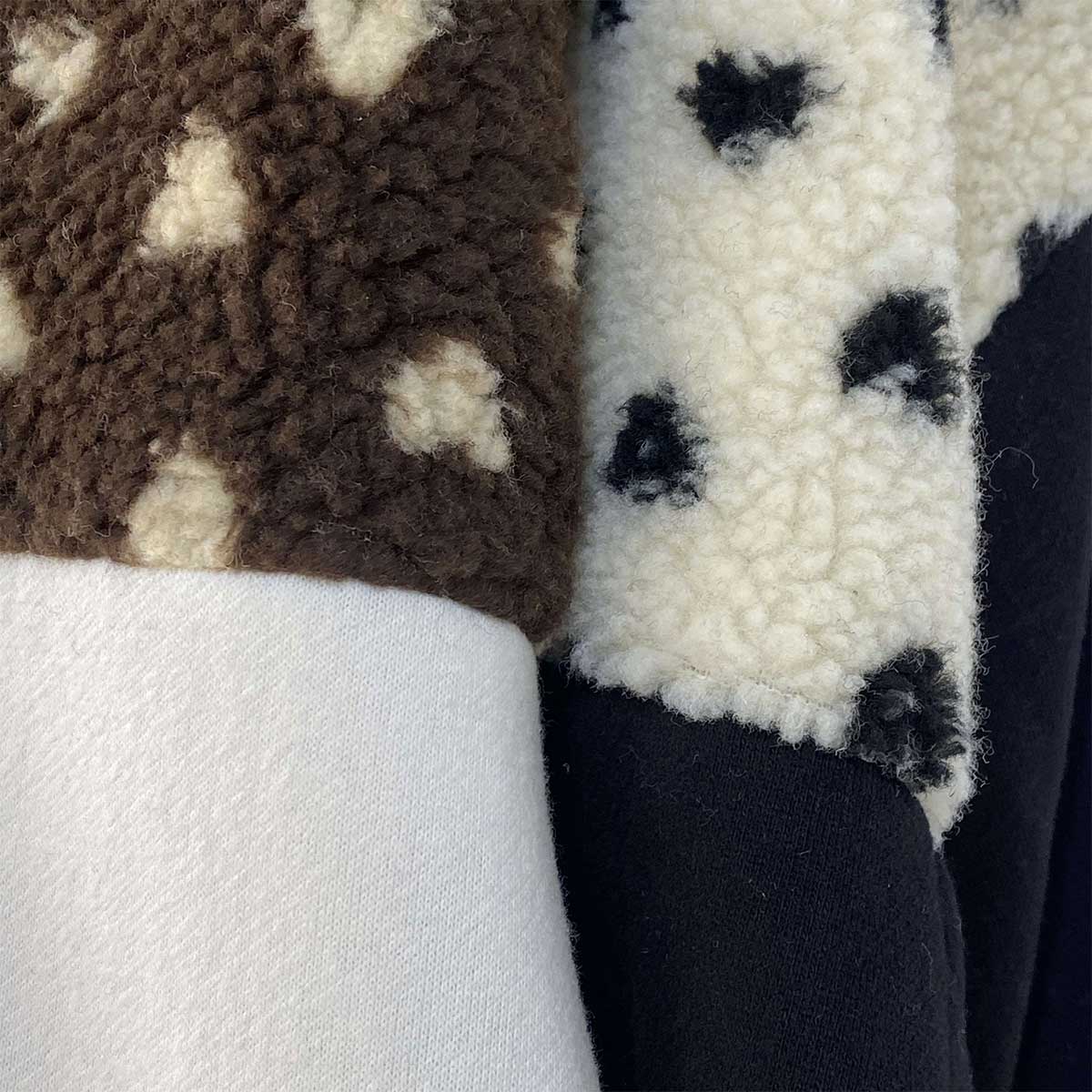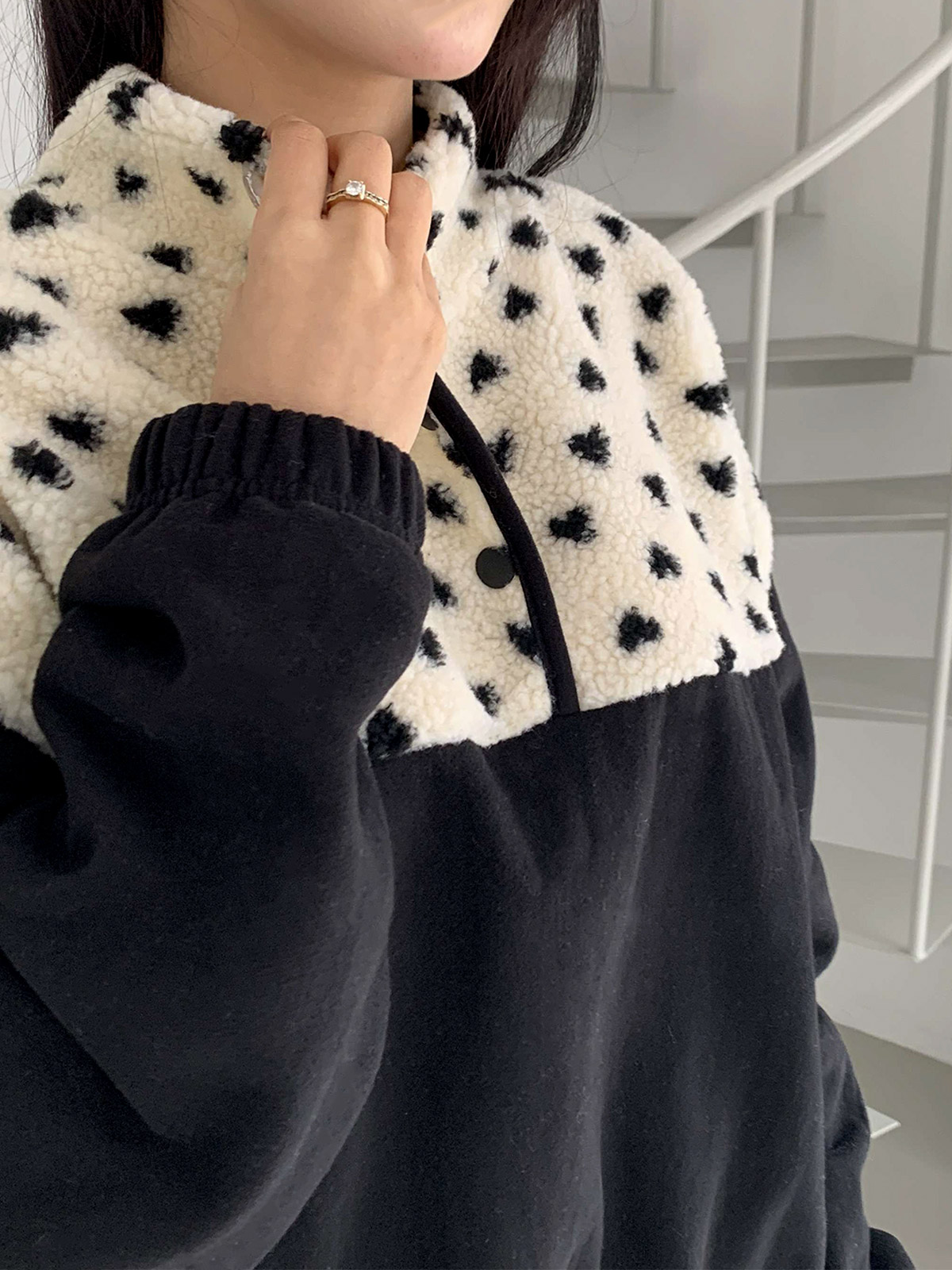 따뜻하고 부드러운 뽀글이 소재에 배색 도트 맨투맨