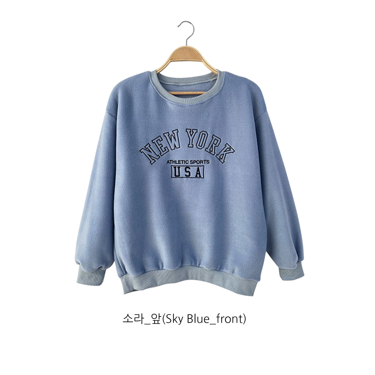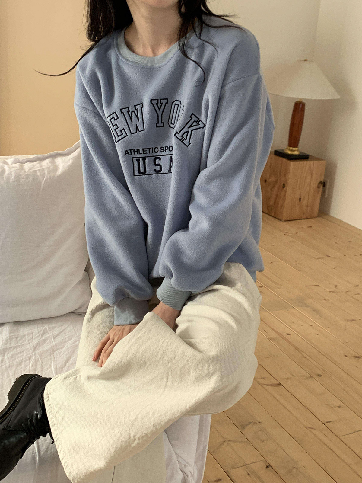 [ T17351K5B-리루니 오버핏 레터링 자수 기모 맨투맨 ]