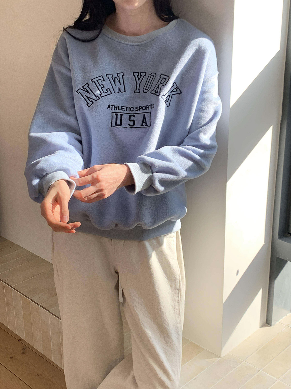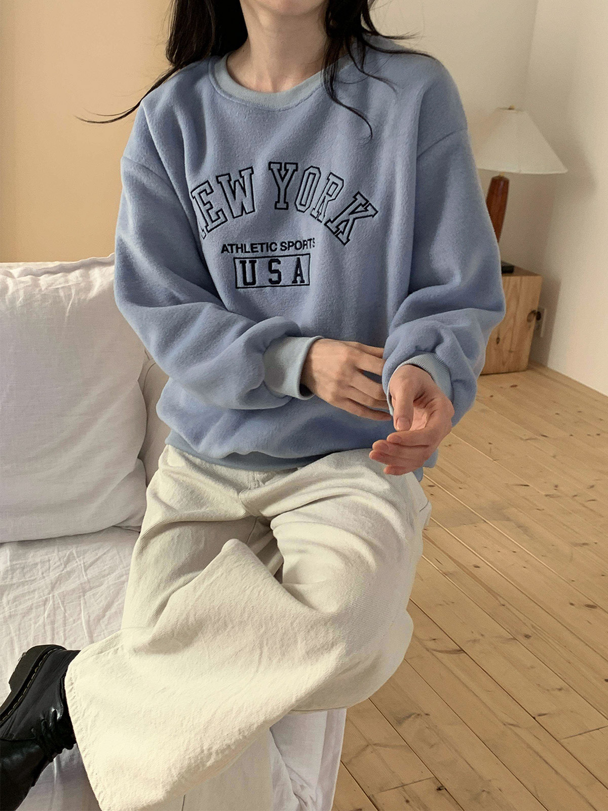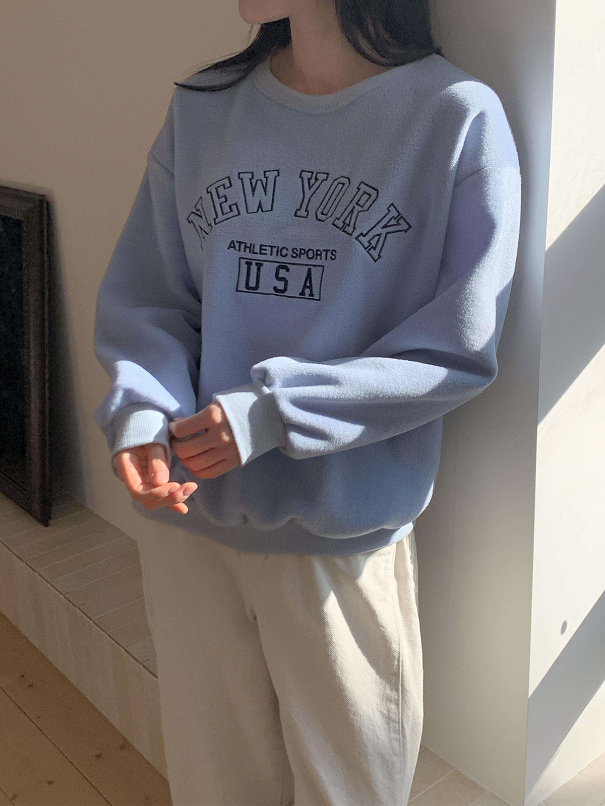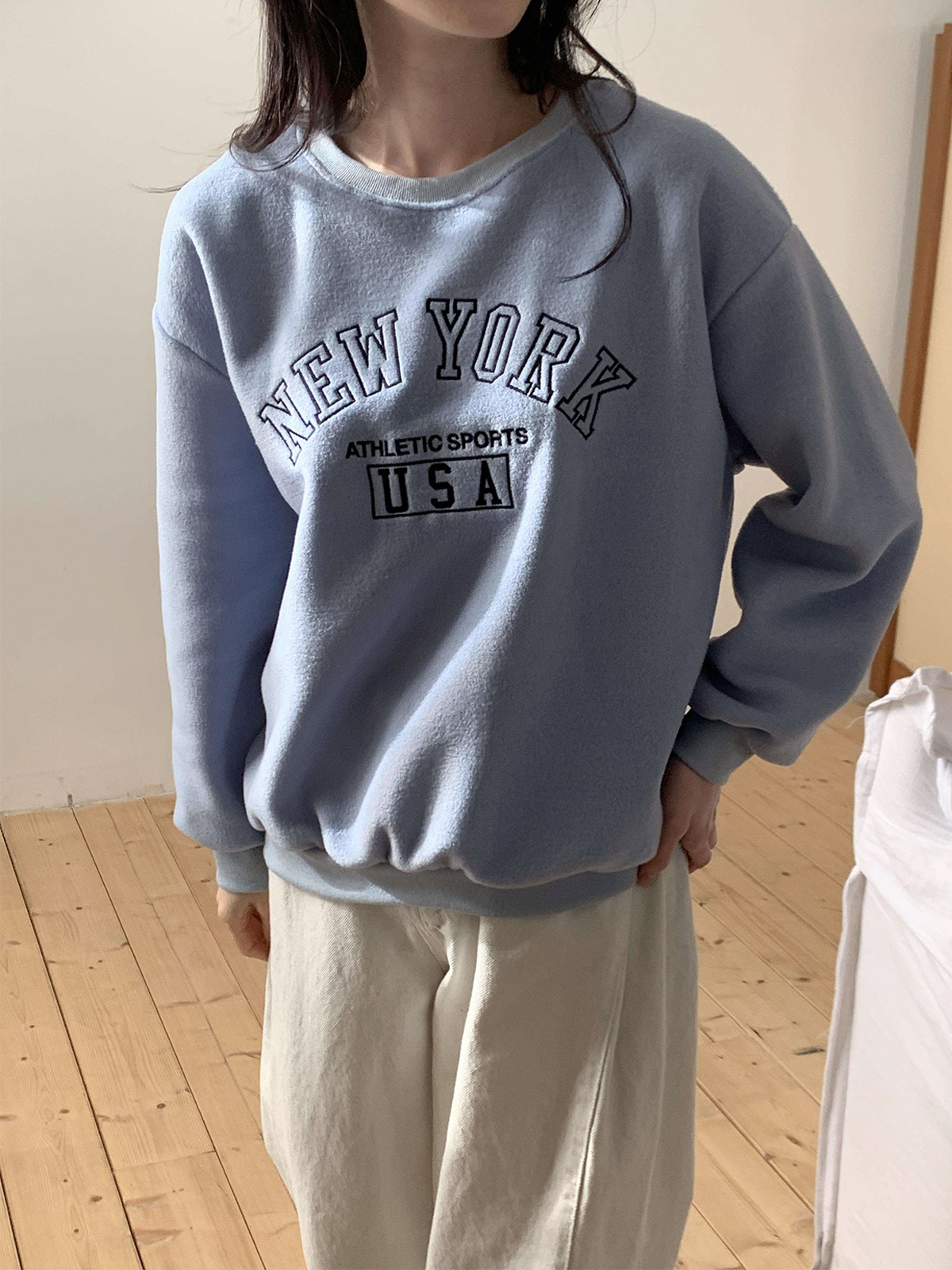 부드러운 기모 안감의 오바핏 자수 맨투맨