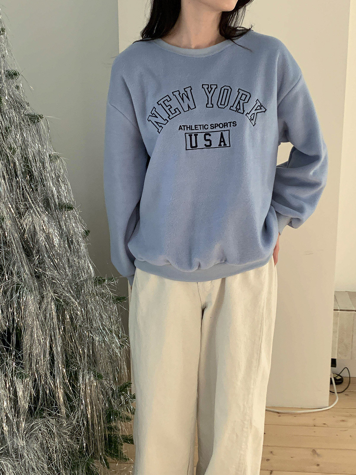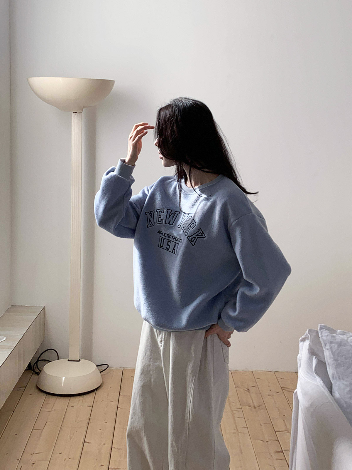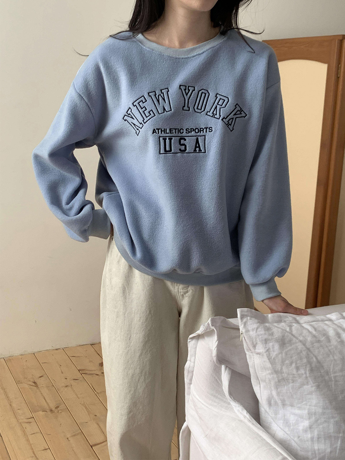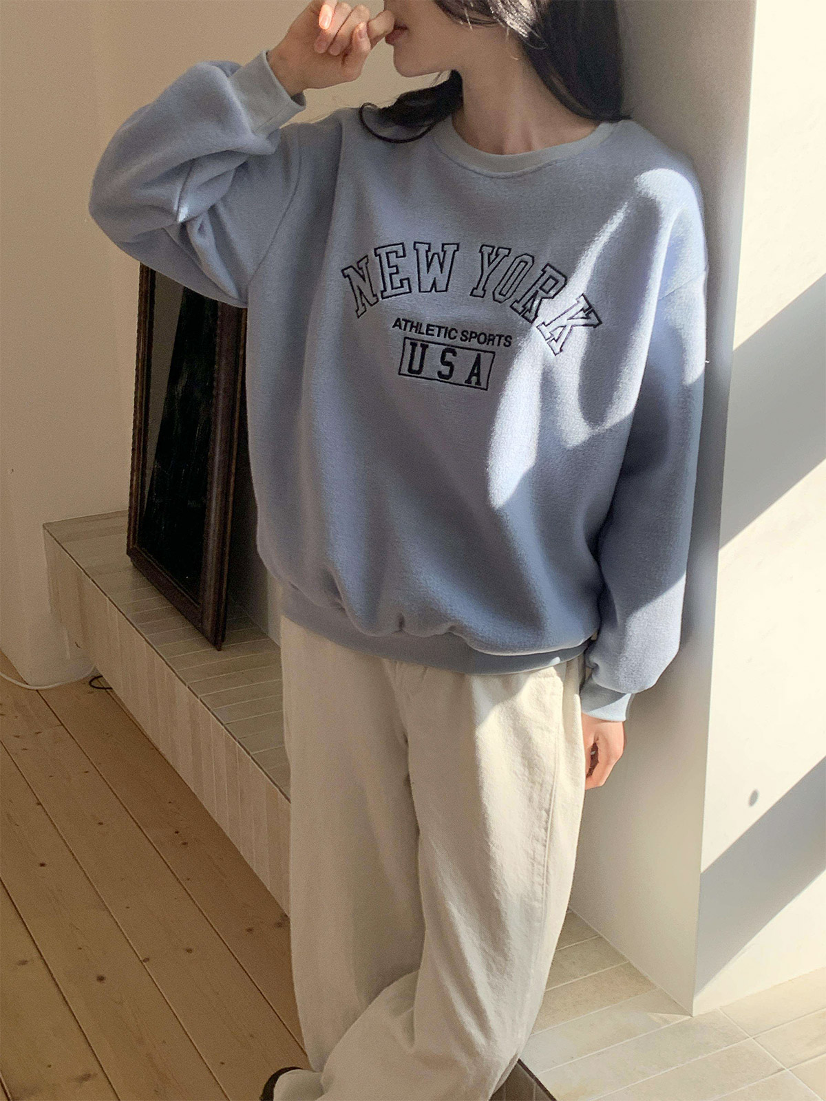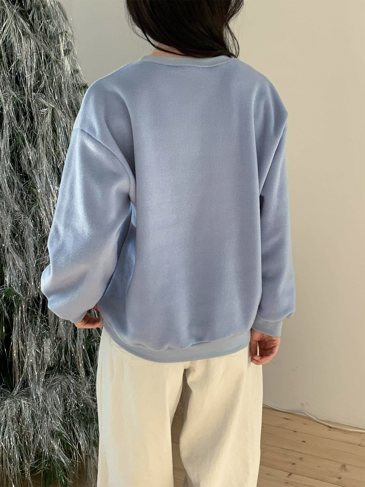 부드러운 기모 안감의 오바핏 자수 맨투맨
