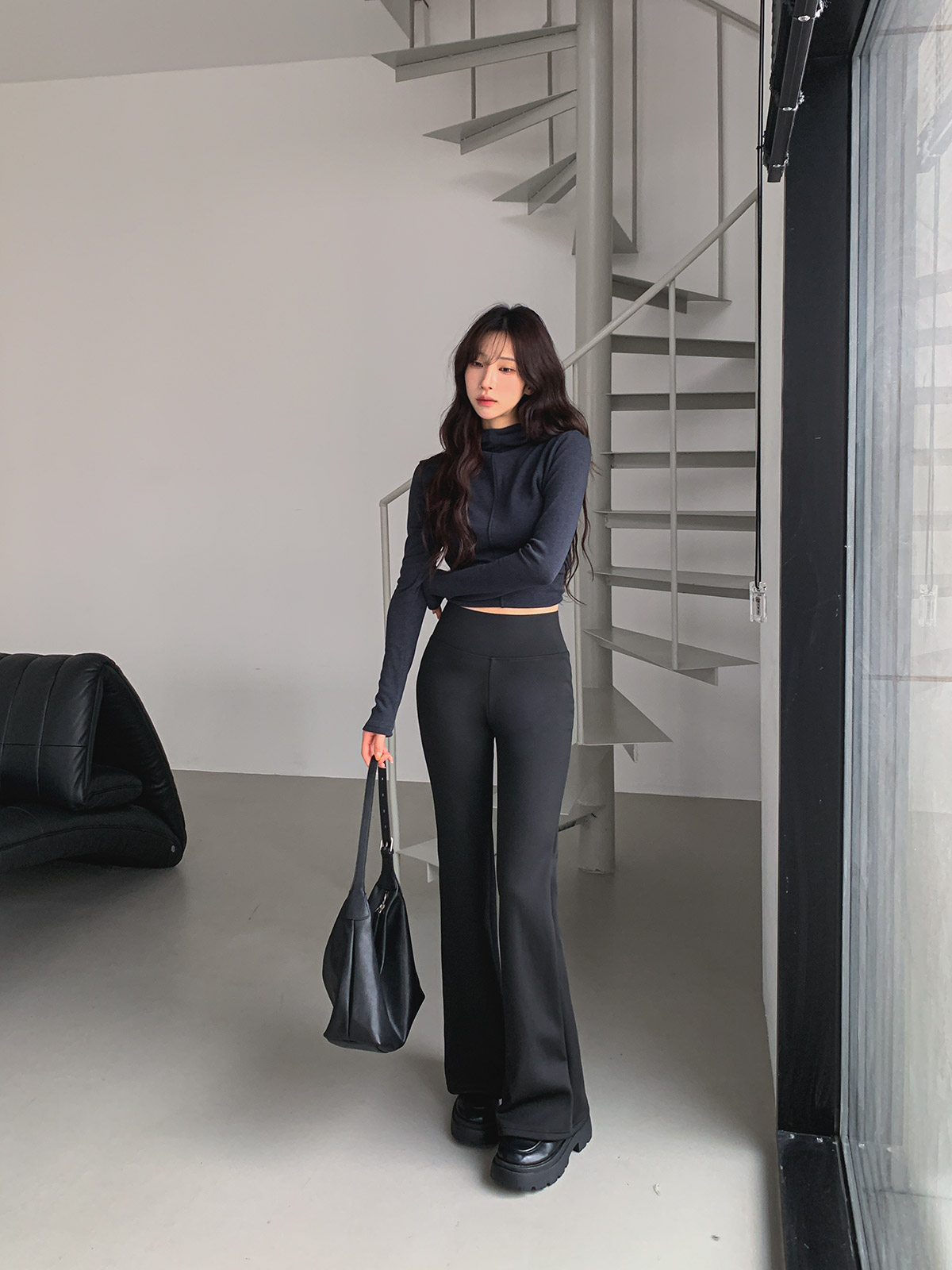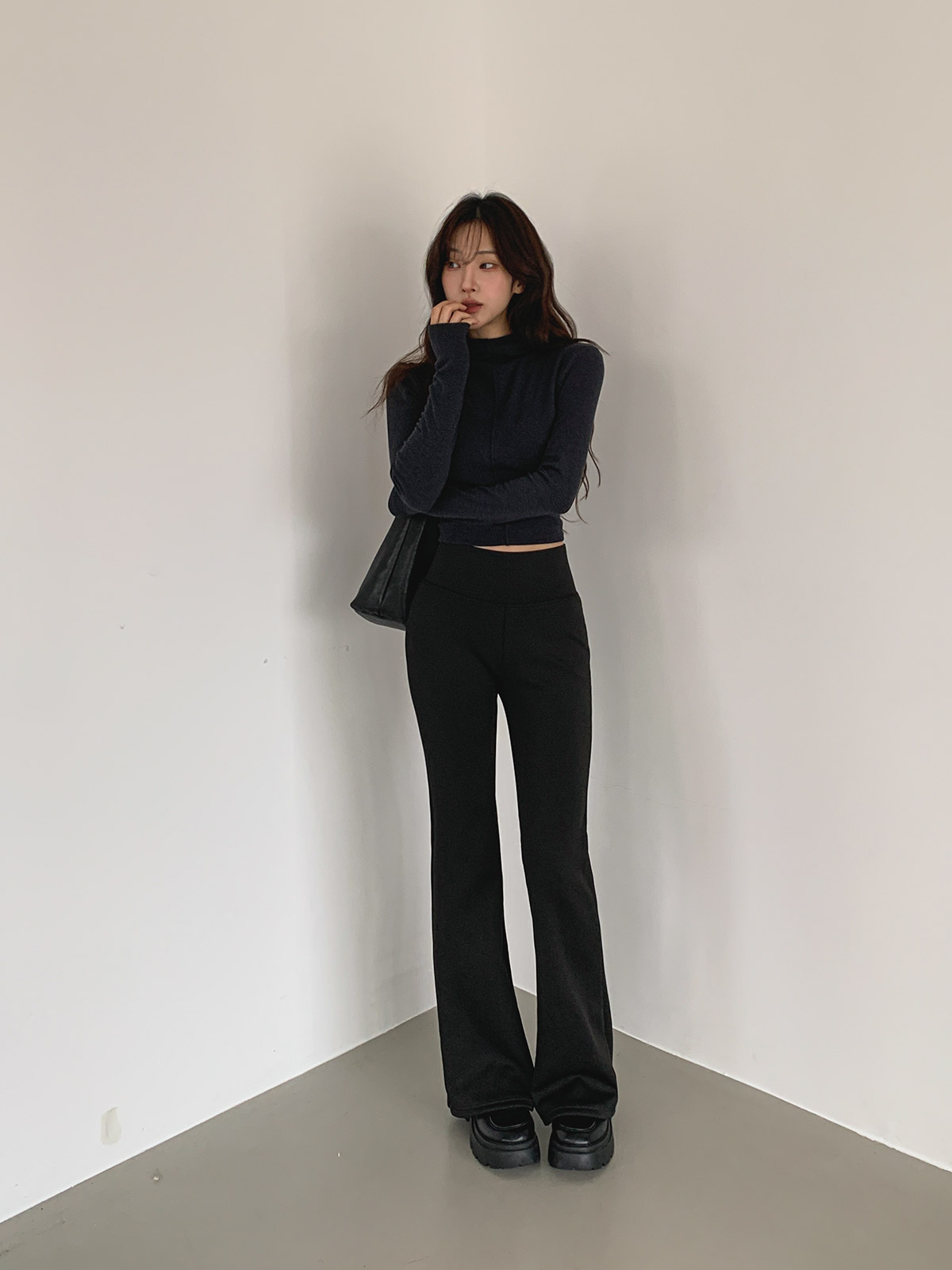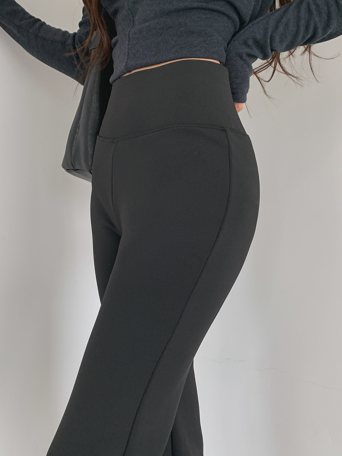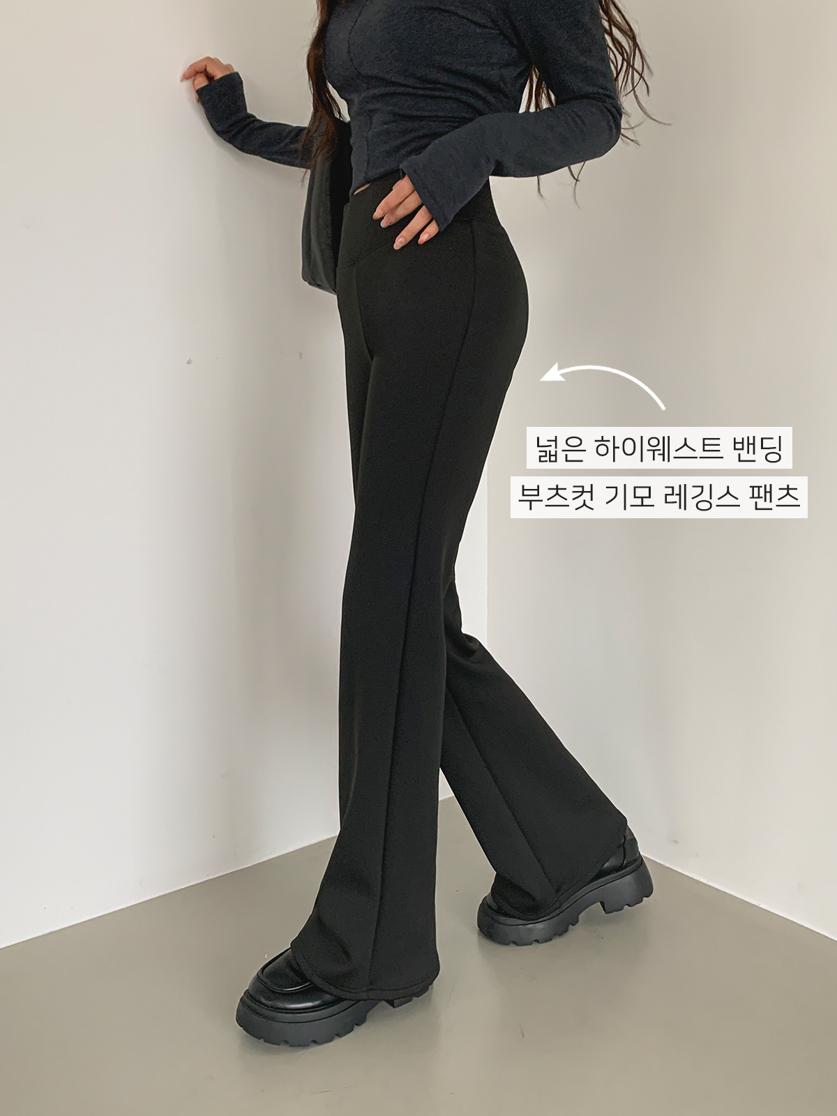 넓은 하이웨이스트 밴딩과 따뜻한 기모 안감의 부츠컷 레깅스