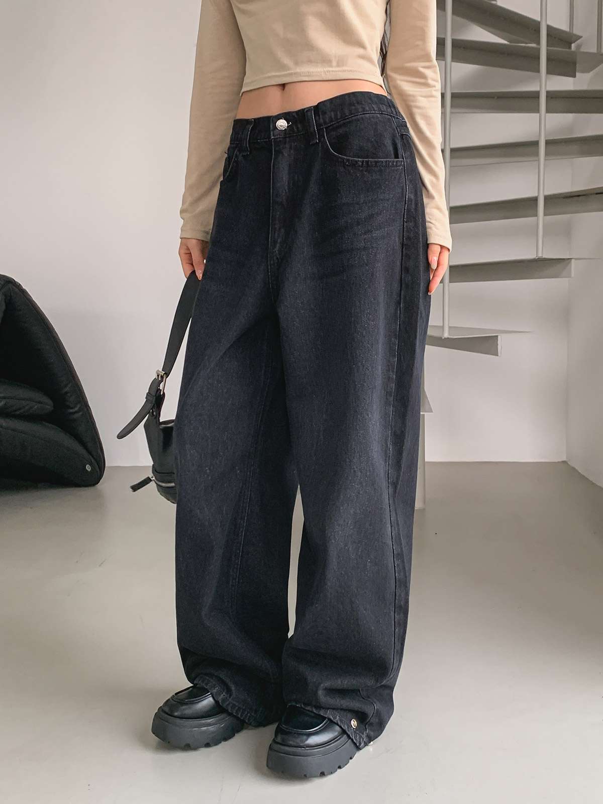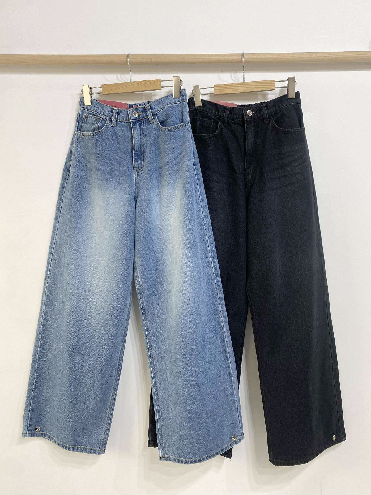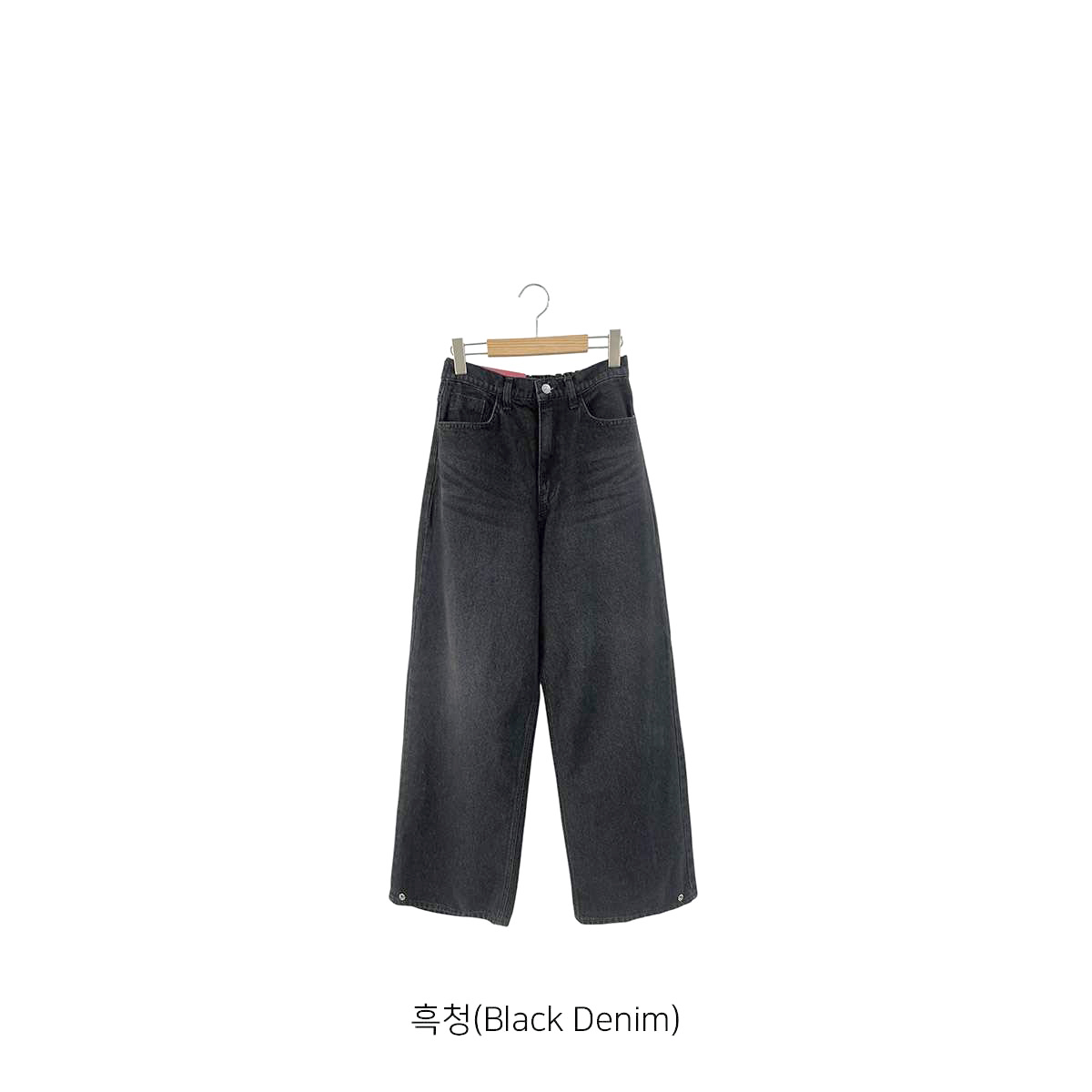 [ PT15665K5B-표으스 밑단 스냅 벌룬핏 와이드 워싱 데님 팬츠 ]