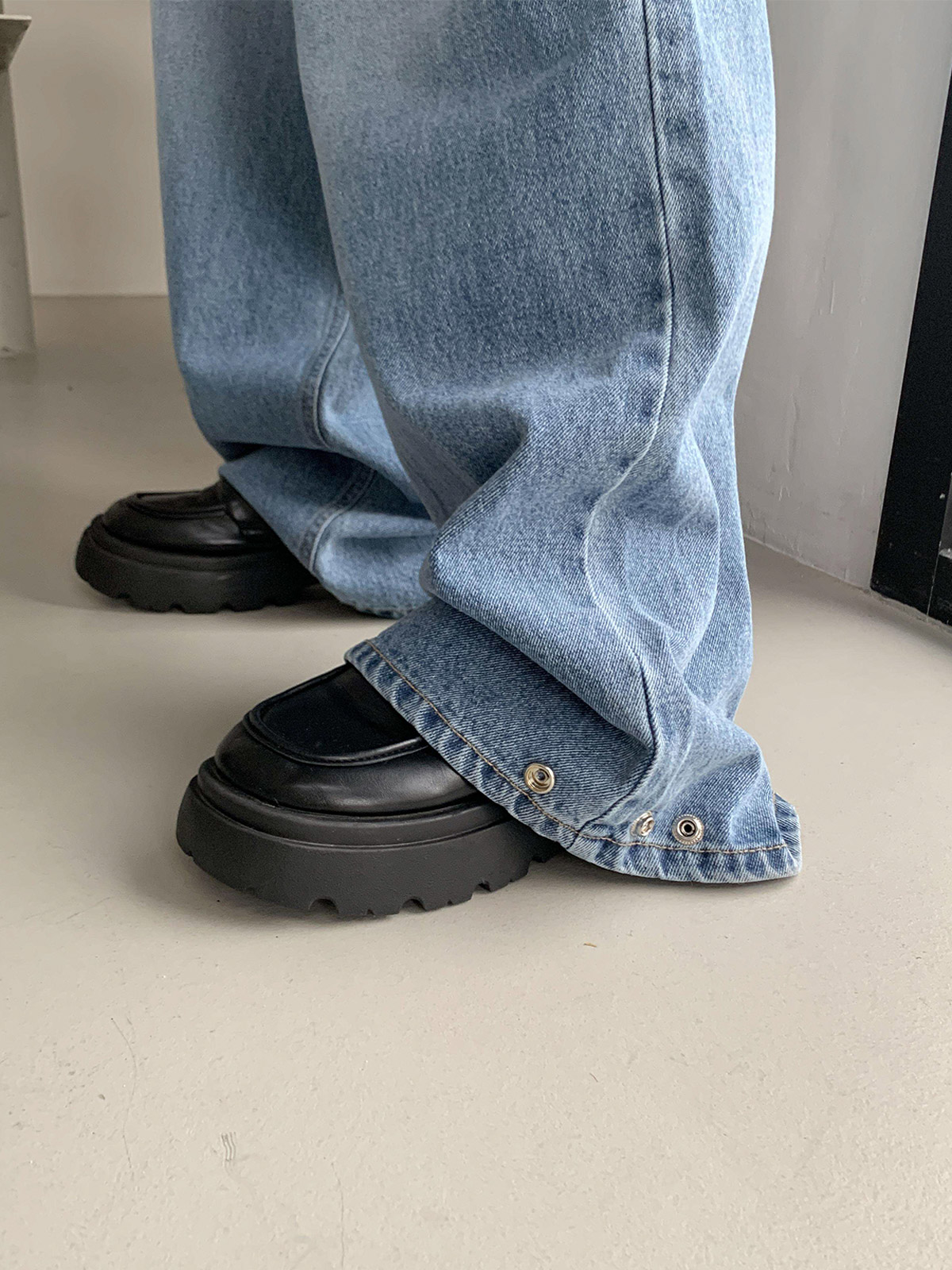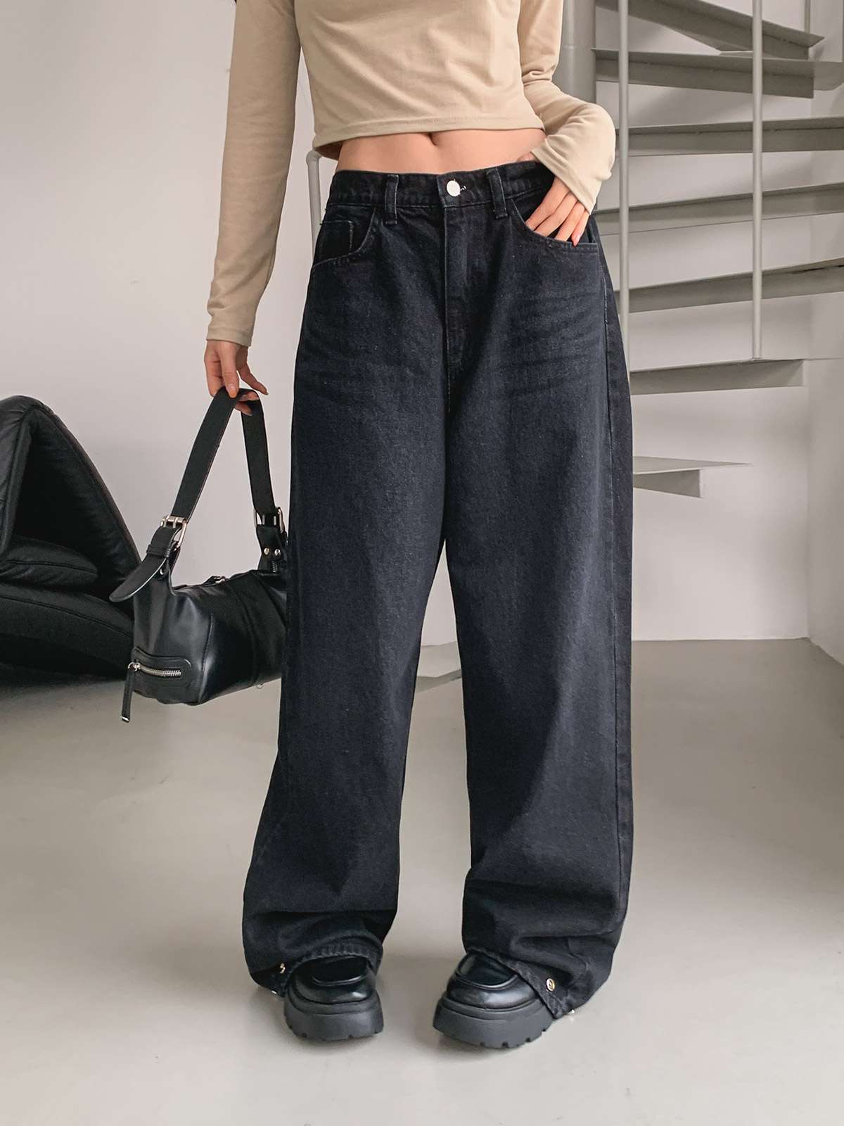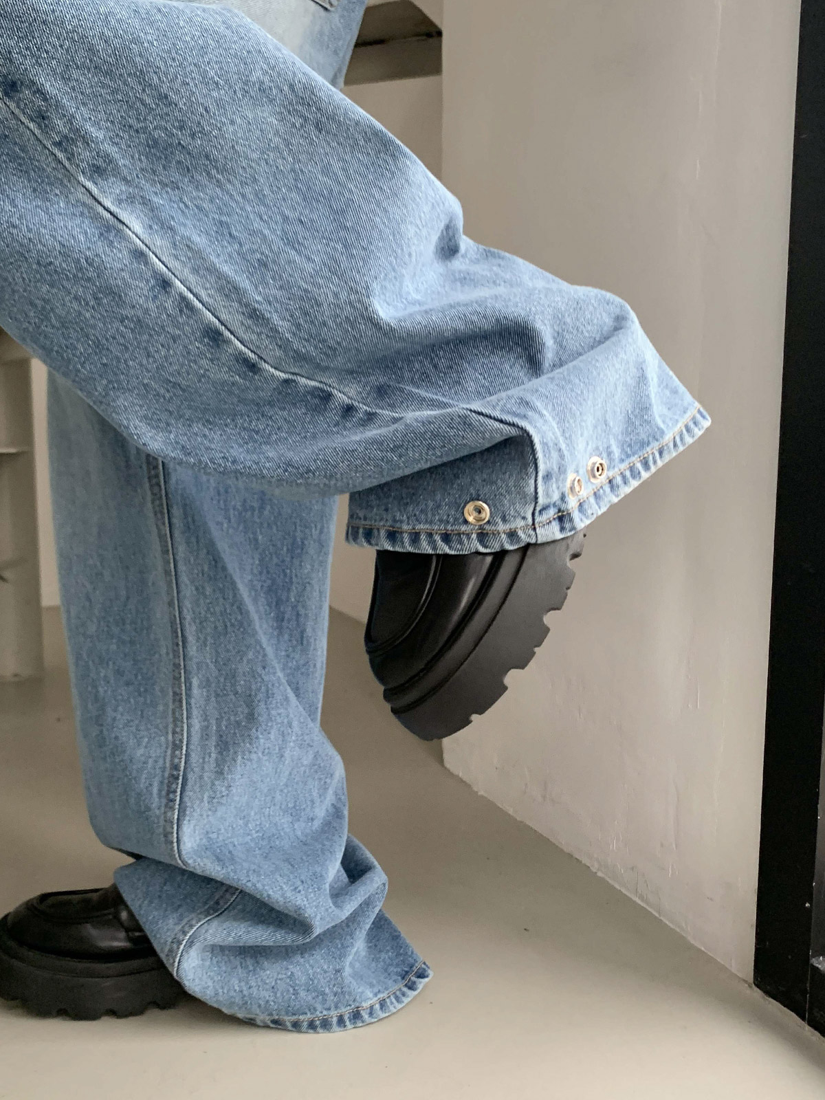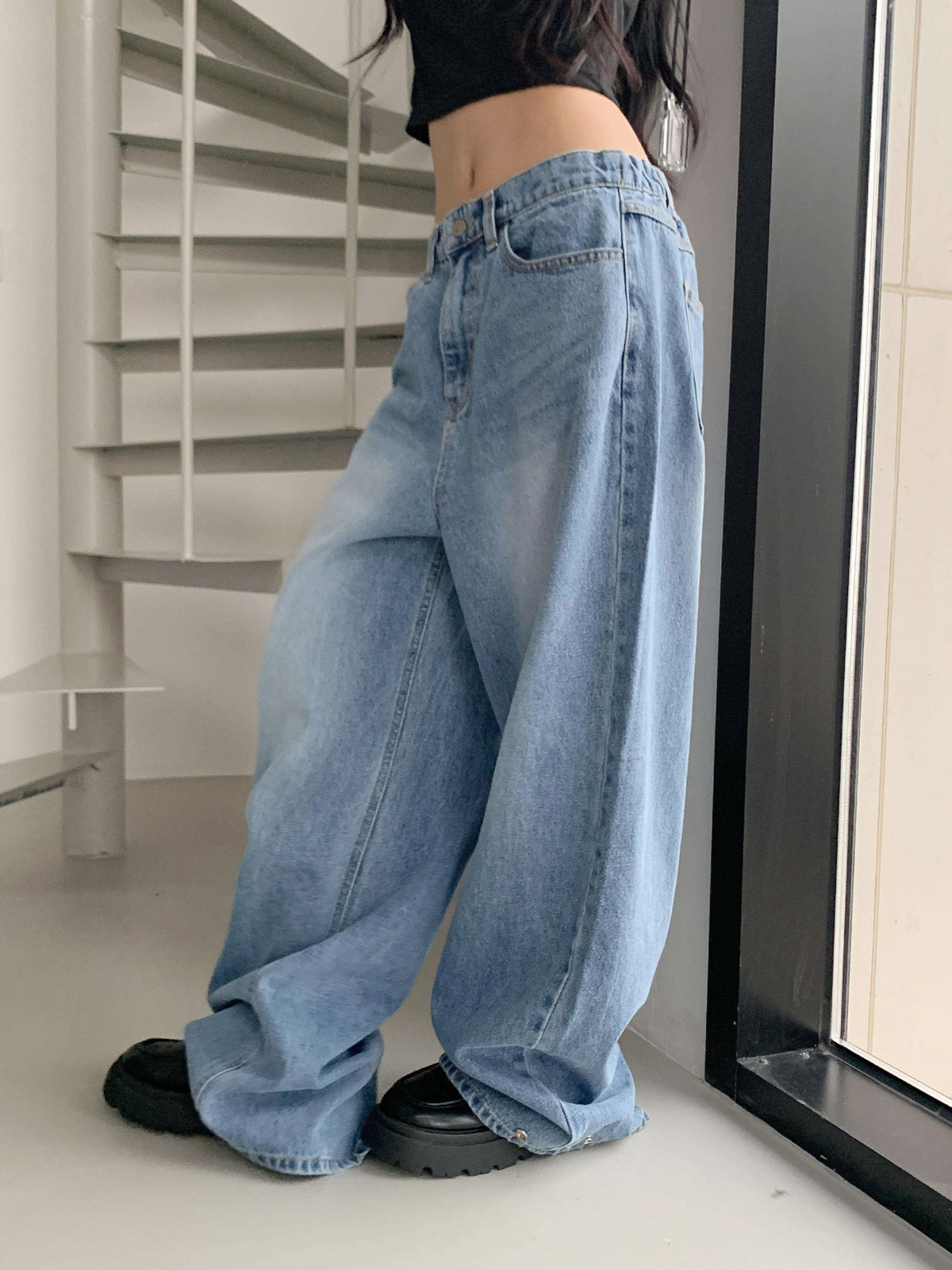 [ PT15665K5B-표으스 밑단 스냅 벌룬핏 와이드 워싱 데님 팬츠 ]