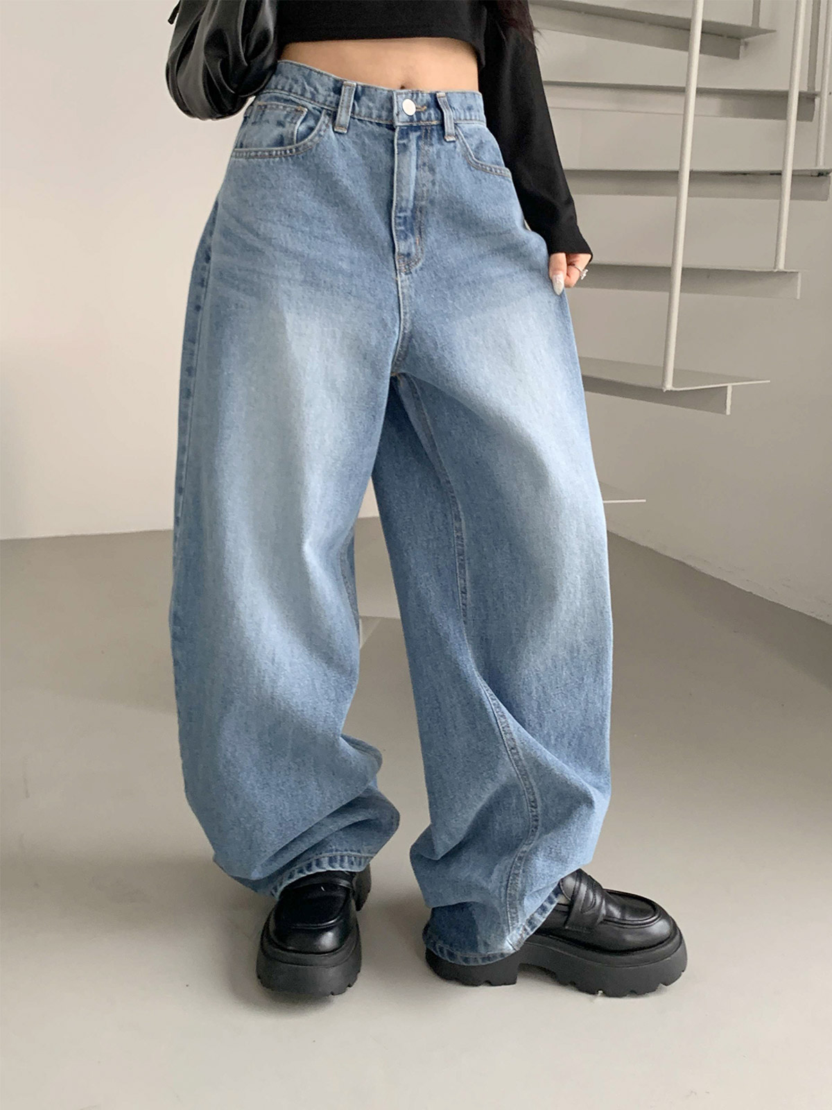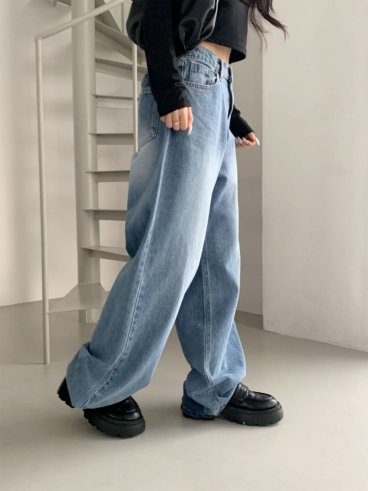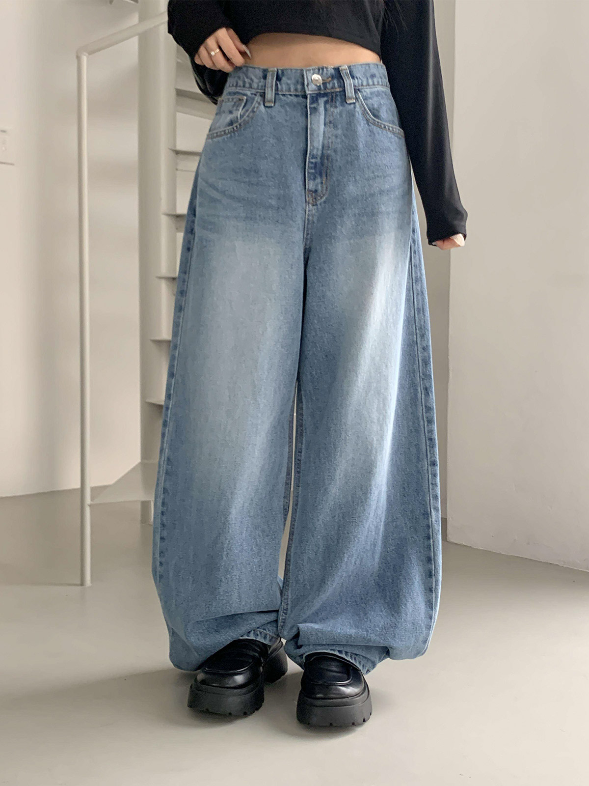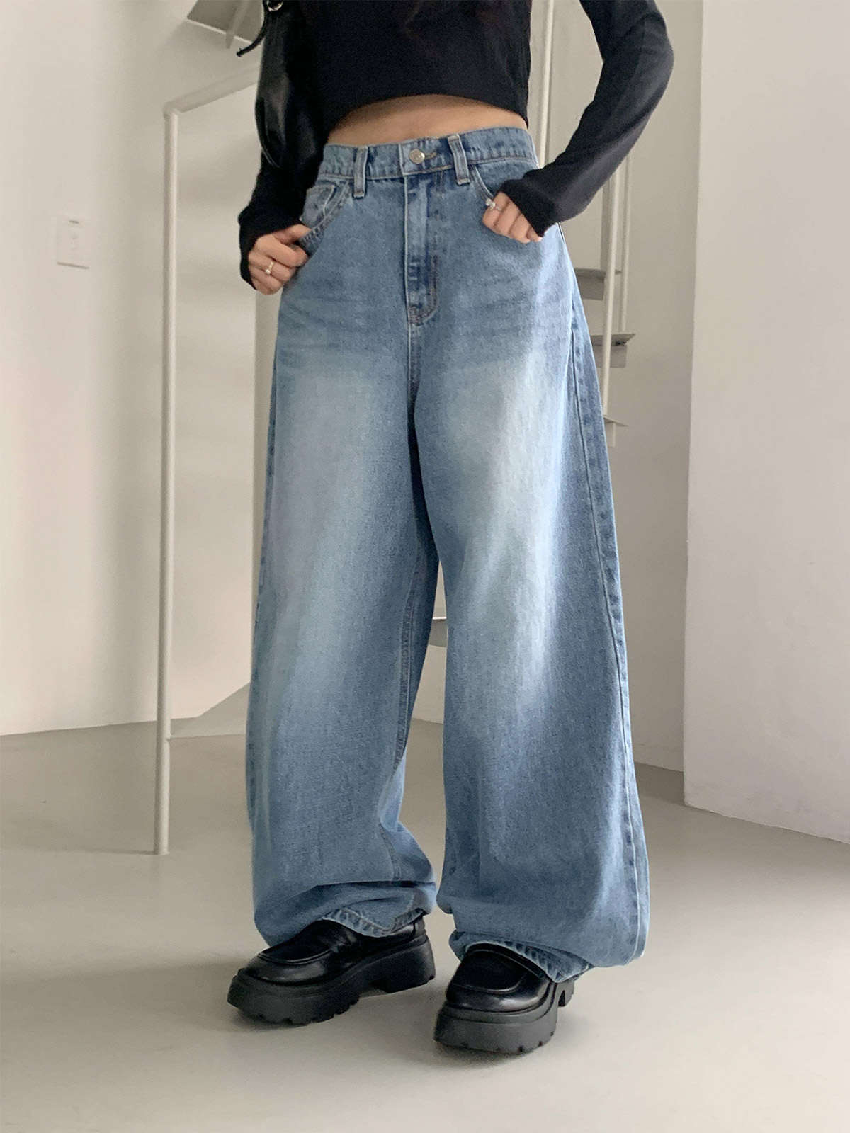트렌디한 와이드 핏의 빈티지한 워싱이 포인트인 데님 팬츠