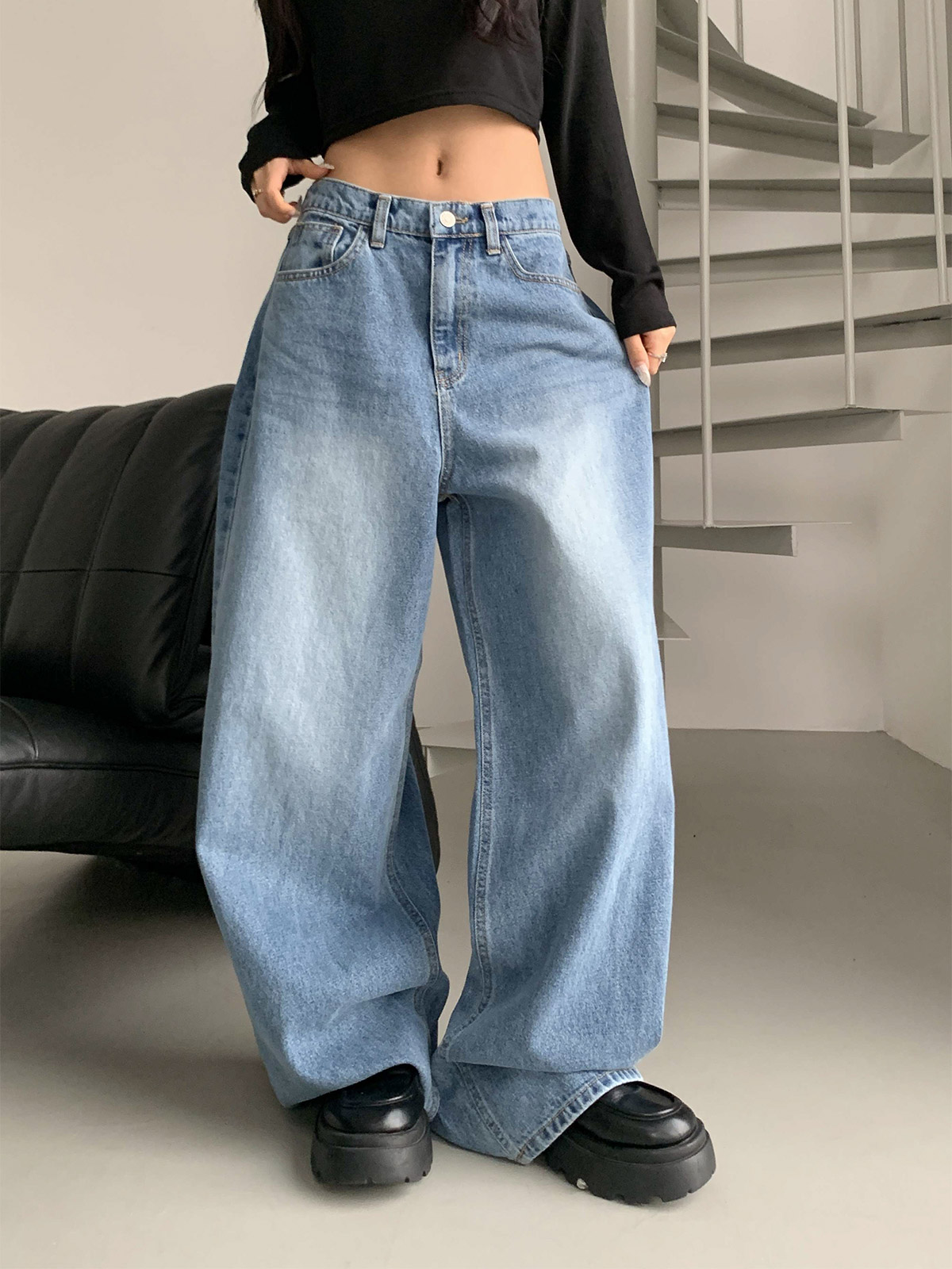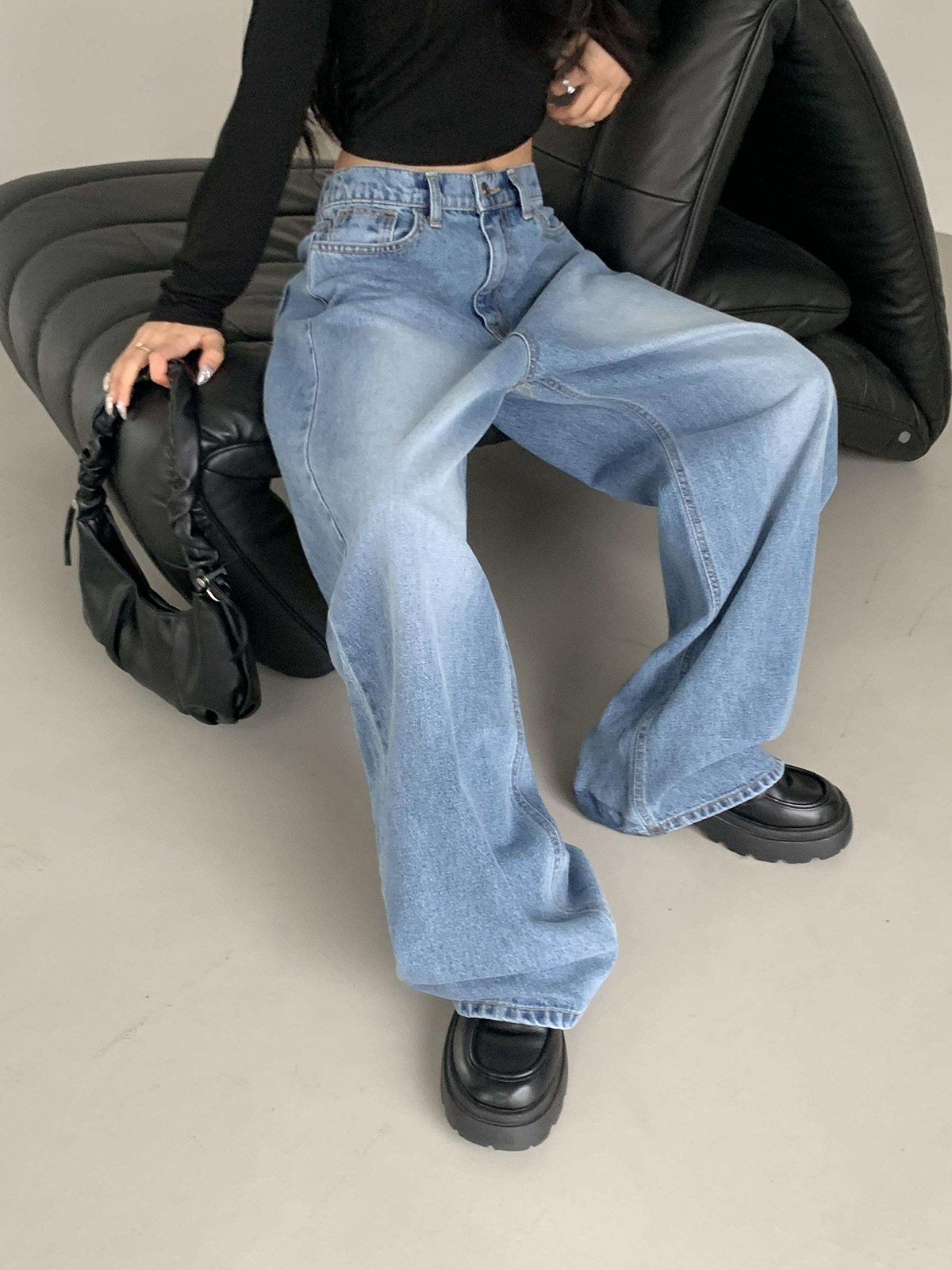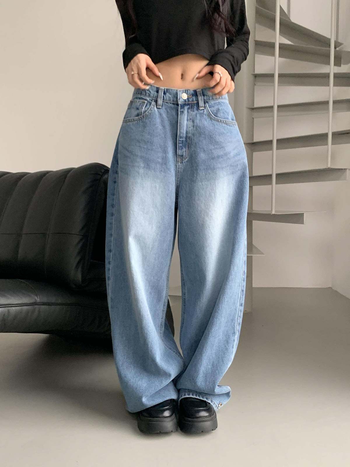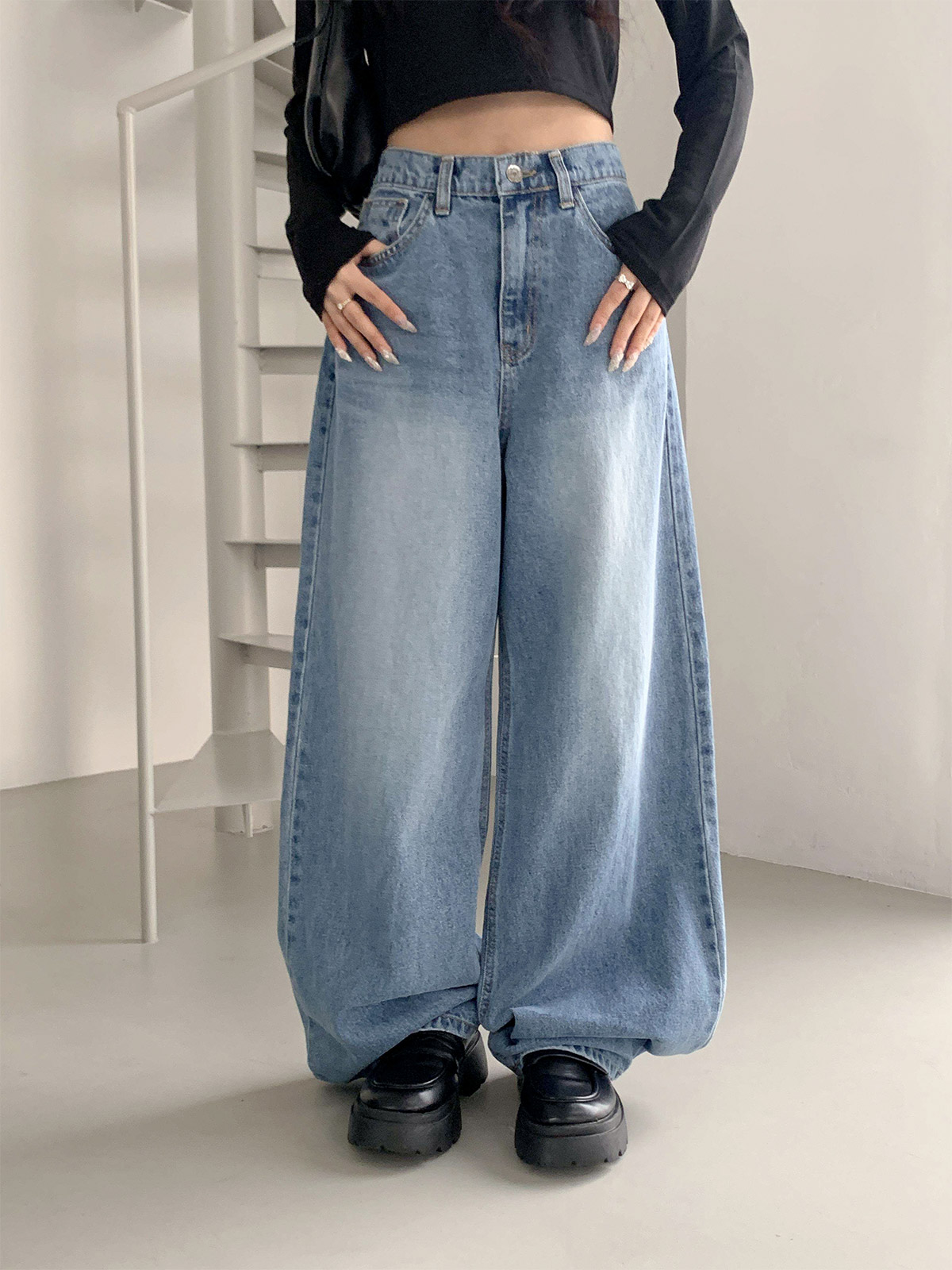 트렌디한 와이드 핏의 빈티지한 워싱이 포인트인 데님 팬츠